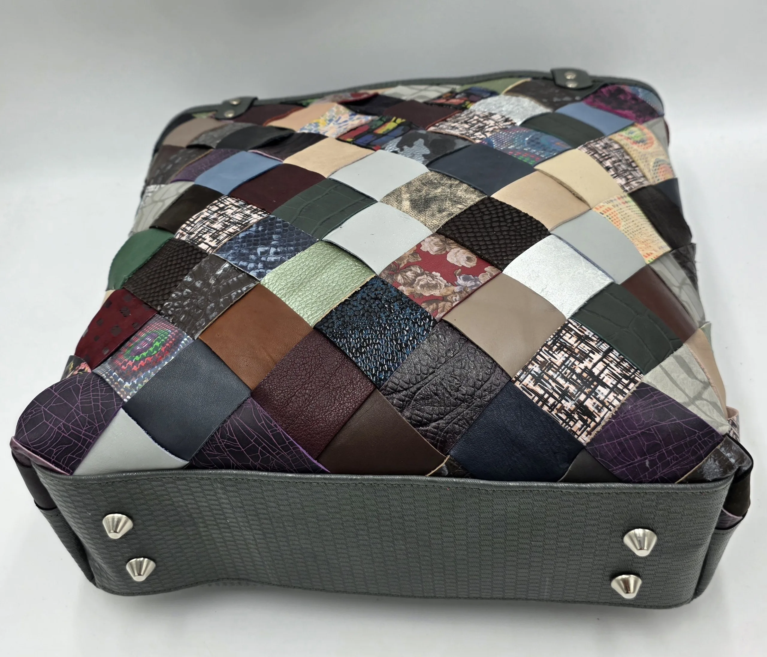 Ръчно изработена чанта от естествена кожа с две дръжки 66см,външен заден джоб с цип, закопчаване с цип, вътре със средна преграда с цип, джоб с цип и допълнителен джоб за телефон. Ширина 44см,височина 38см,твърдо дъно с крачета 34см/11см.