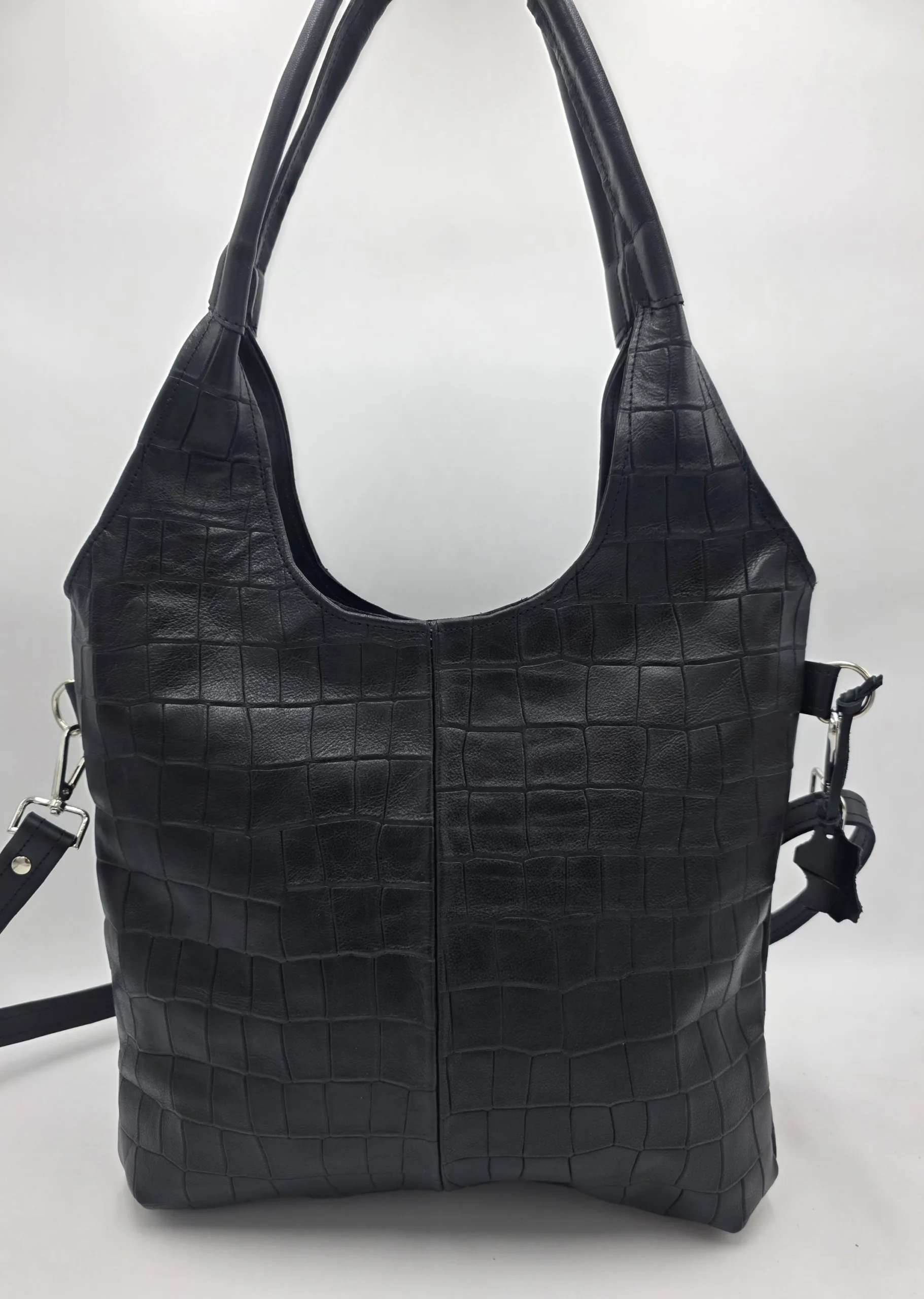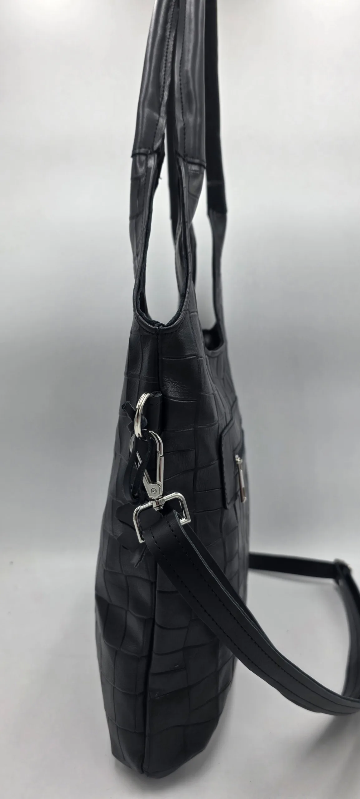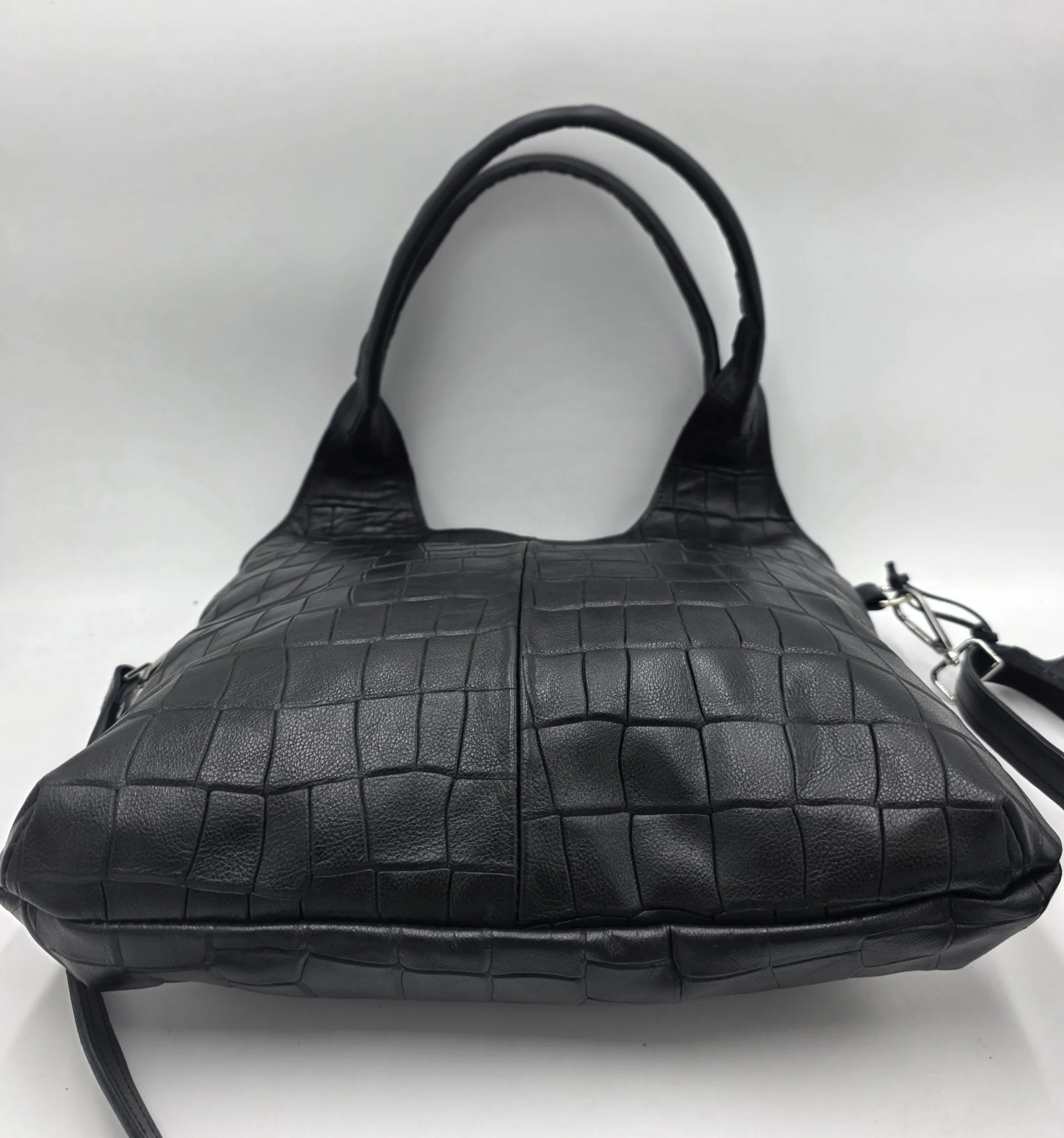 Ръчно изработена чанта с две дръжки 65см и допълнителна дълга регулираща се дръжка 150см, външен заден джоб с цип, закопчаване с цип, вътре със средна преграда с цип, джоб с цип и допълнителен джоб за телефон. Ширина 35см ,височина 30см ,няма оформено дъно.