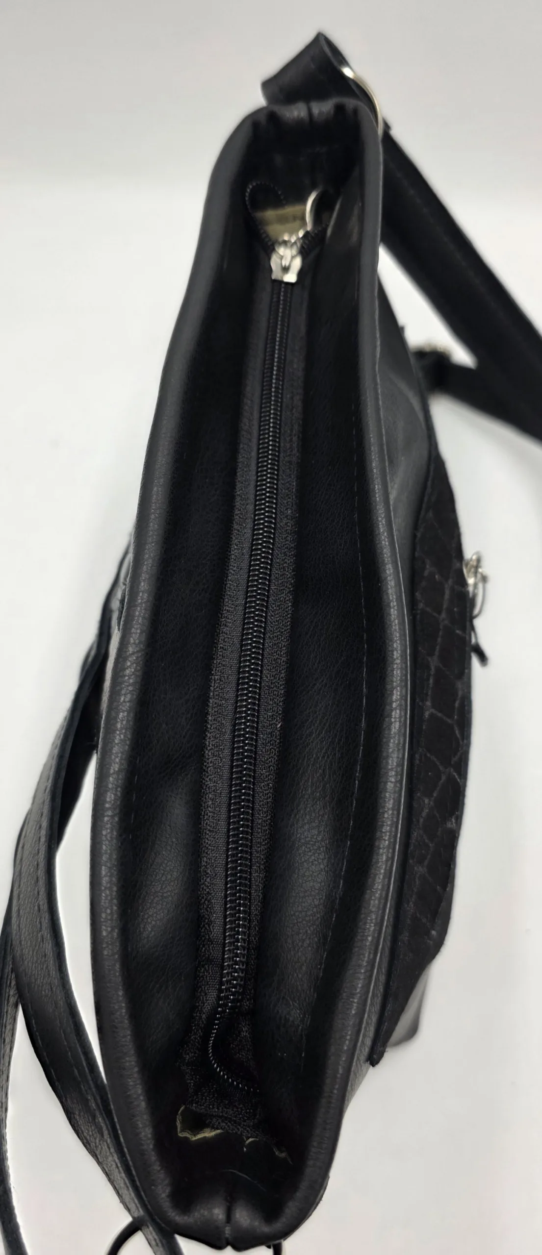 Чанта от еко кожа с три отделни прегради затварящи се с общ цип, две дръжки 32см,допълнителна дълга регулираща се дръжка