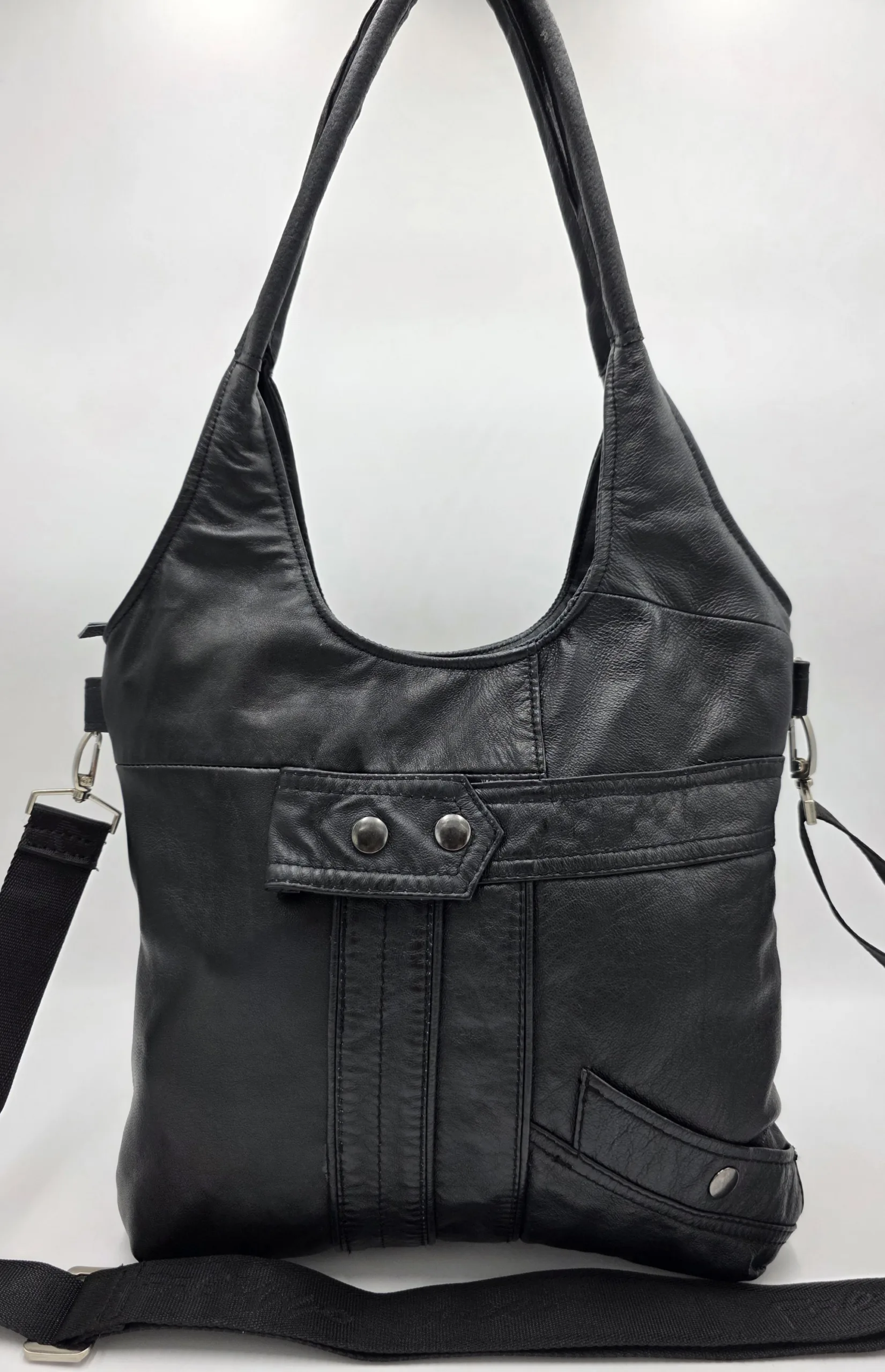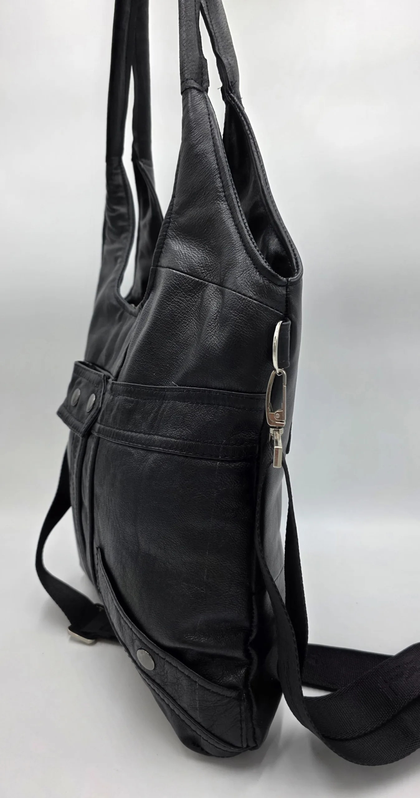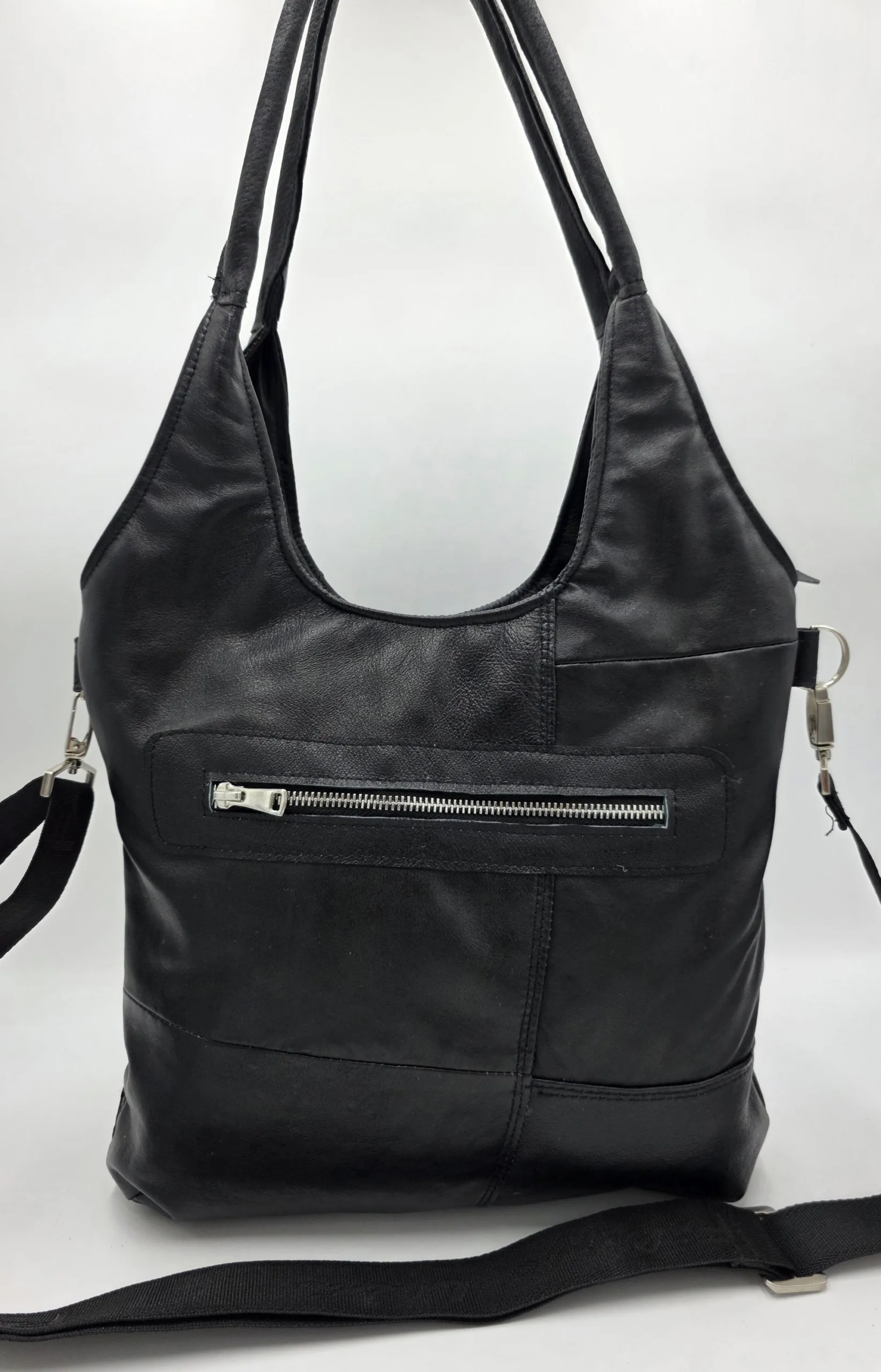 Чанта ръчна изработка от естествена кожа с две дръжки 65см и допълнителна дълга регулираща се дръжка 150см, с външен заден