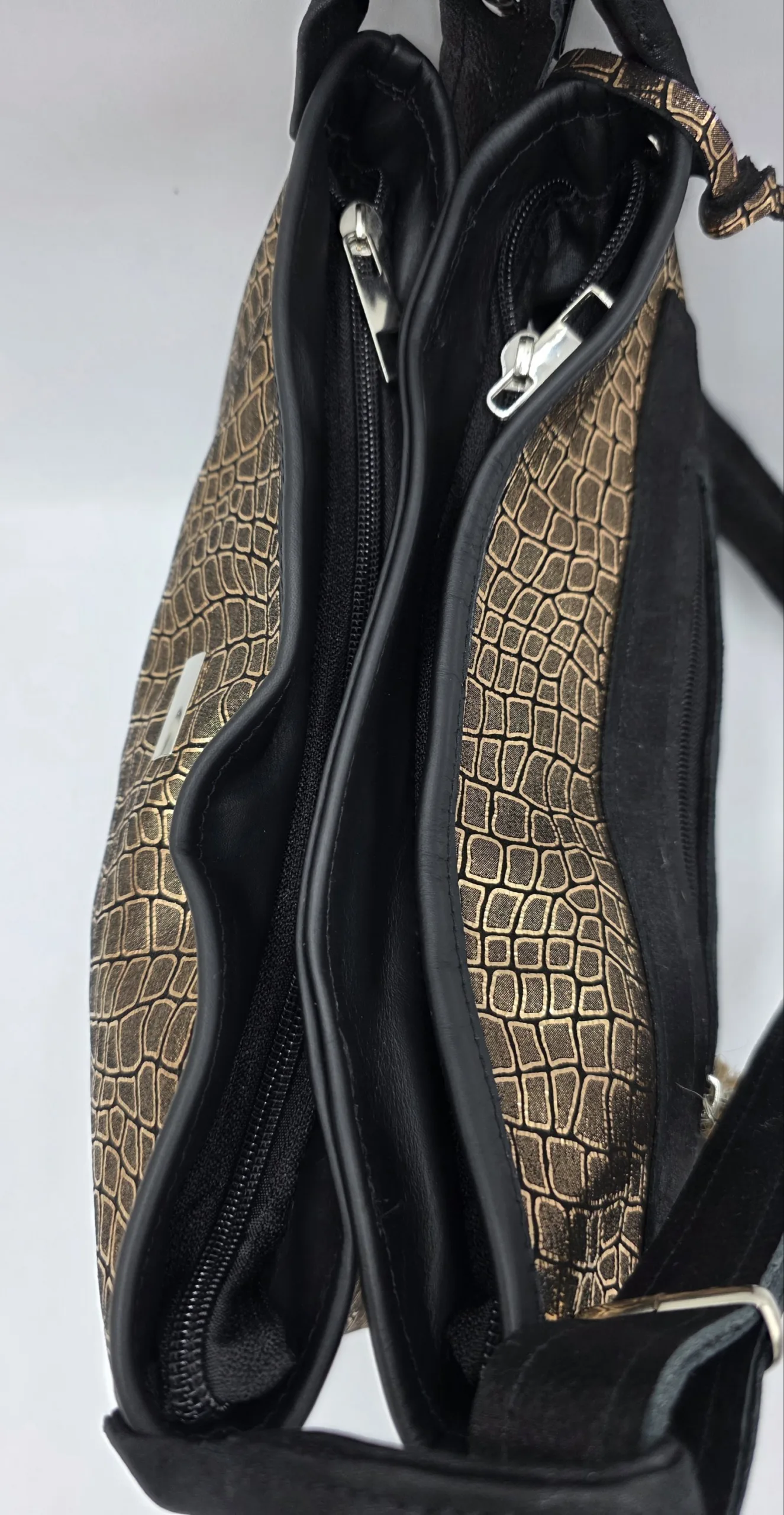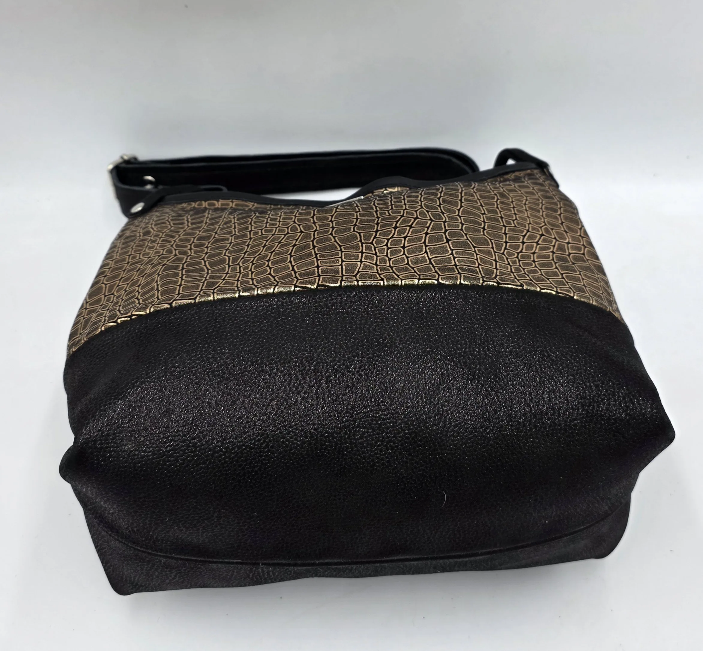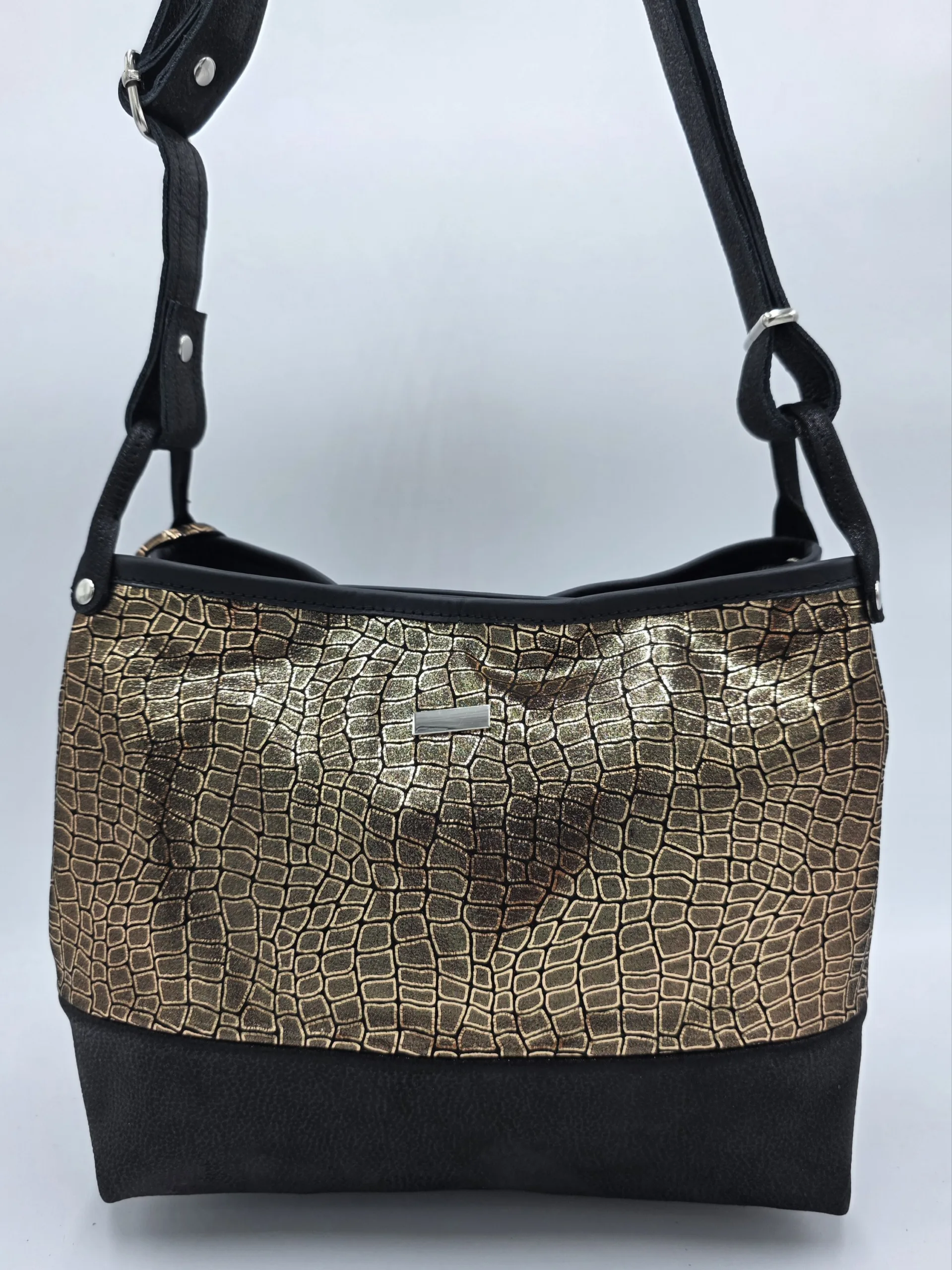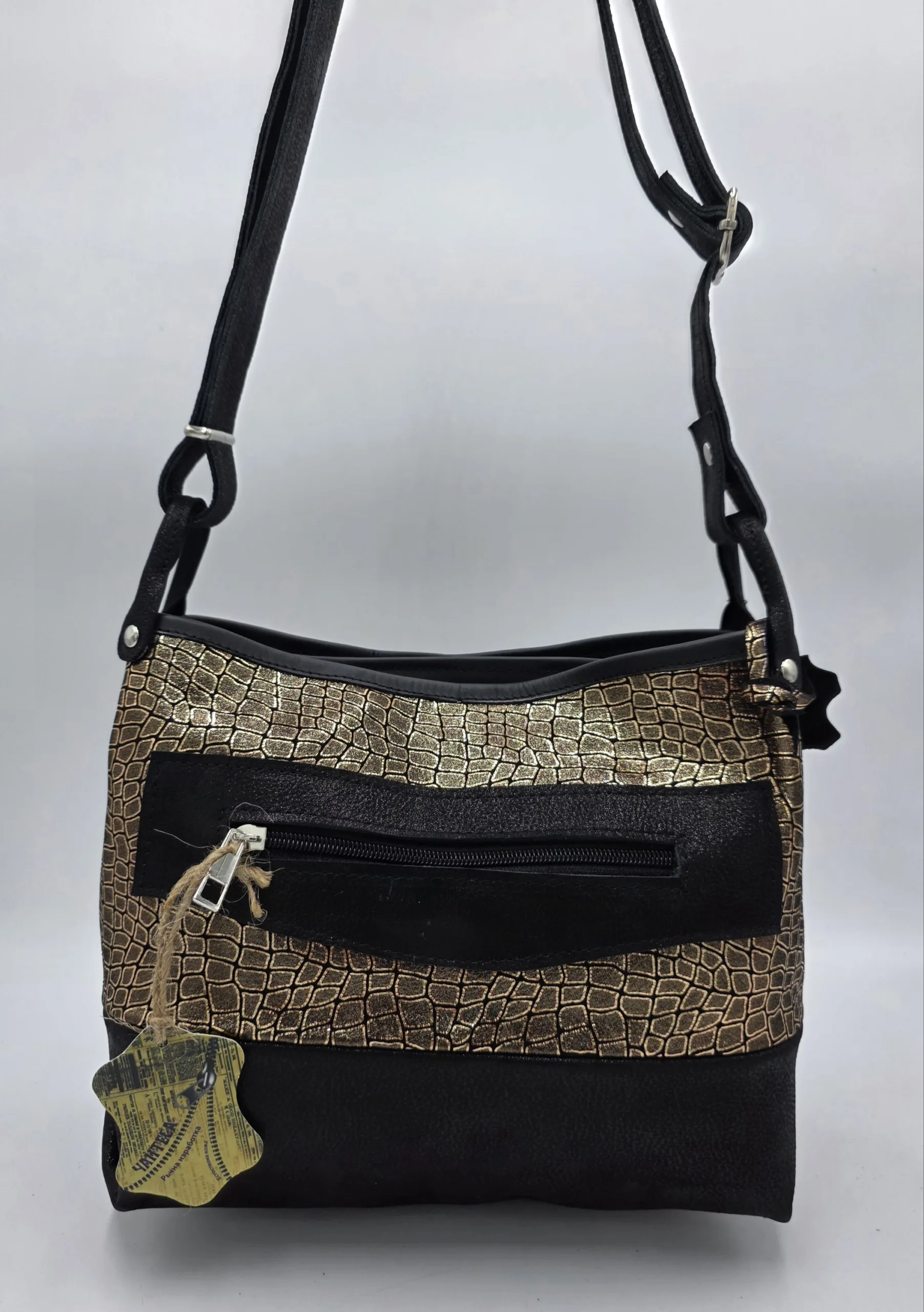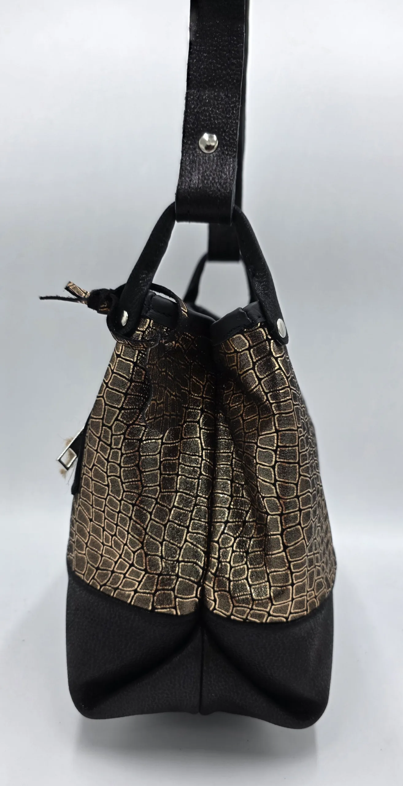 Начало Чанти от Естествена Кожа Средни Чанти Чанта от естествена кожа в черно и старо злато