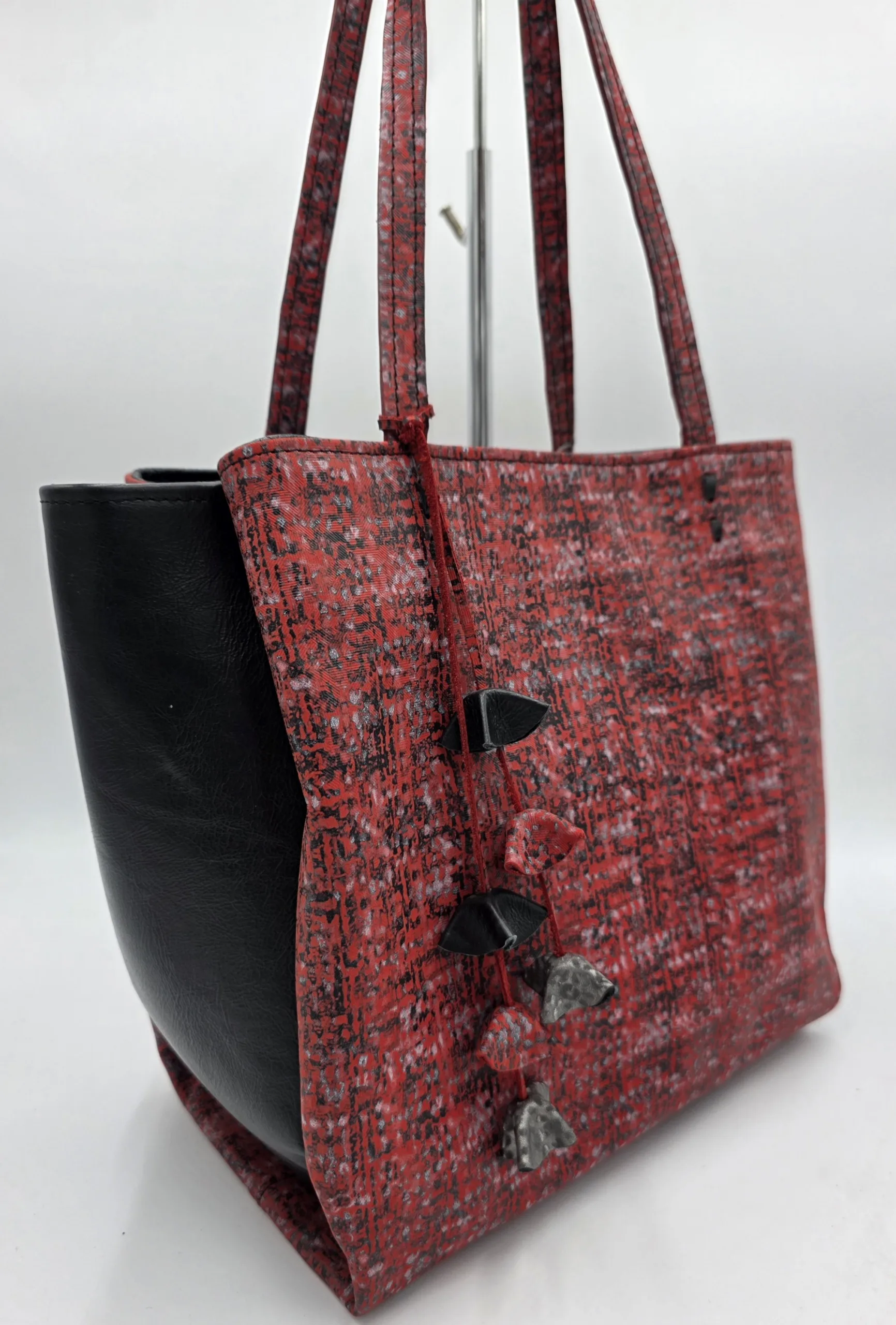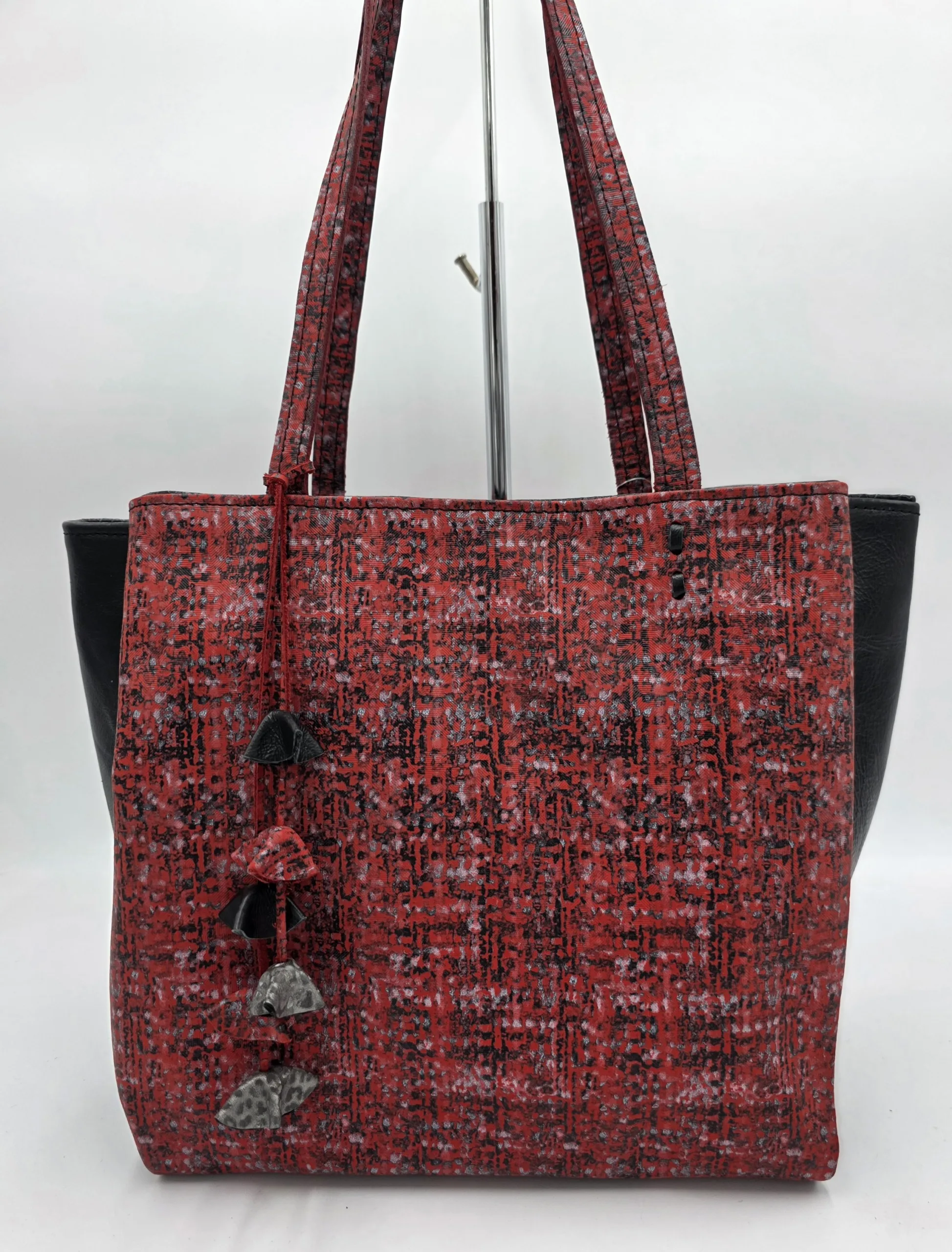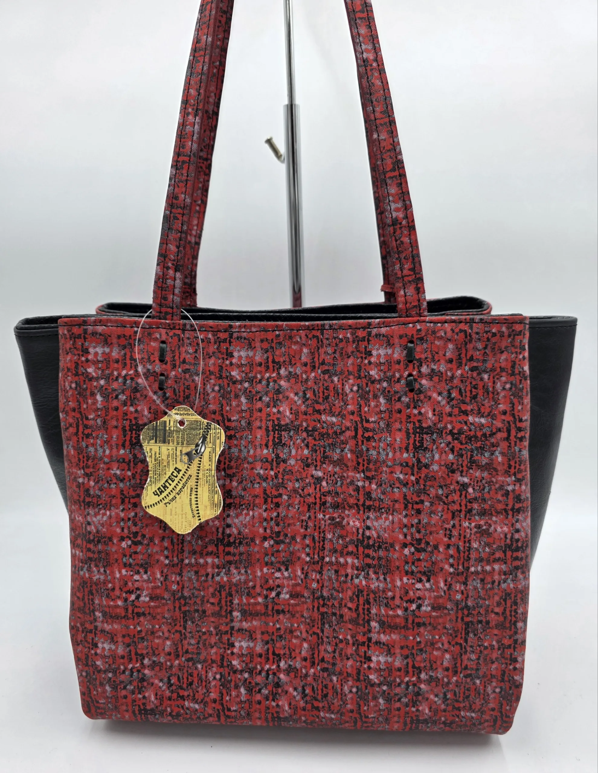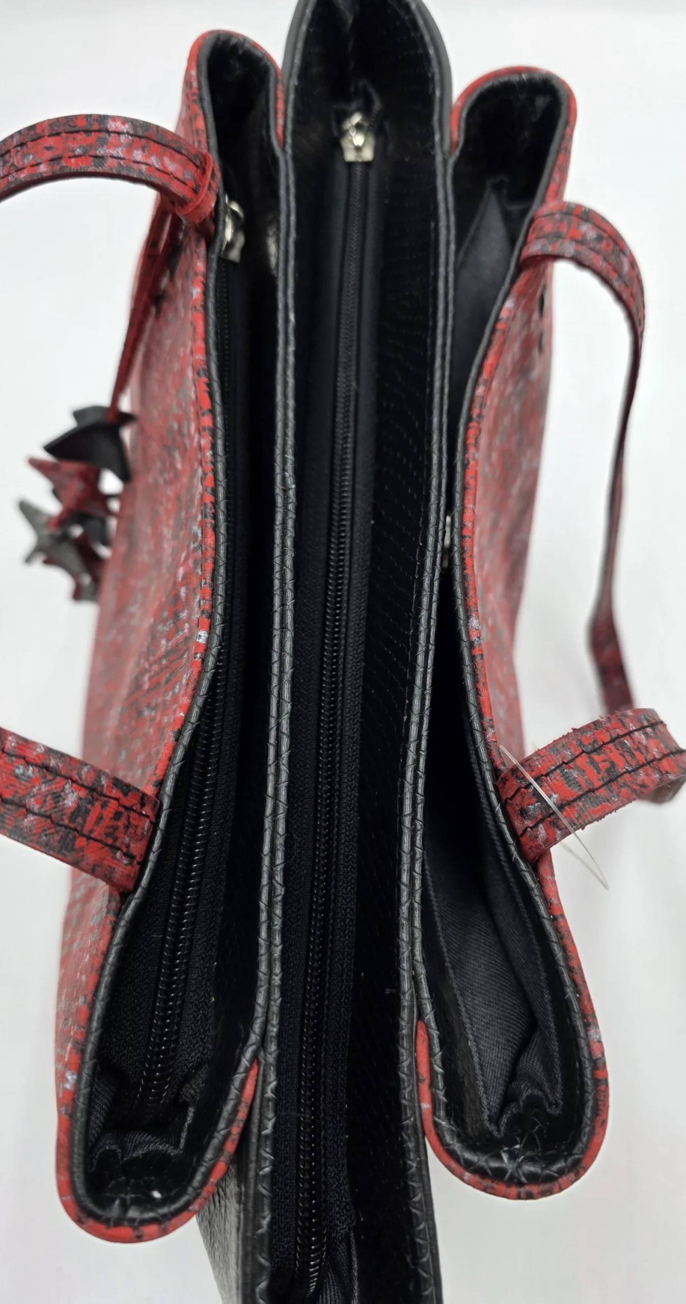 Начало Чанти от Естествена Кожа Средни Чанти Чанта от естествена кожа в червено черни пръски