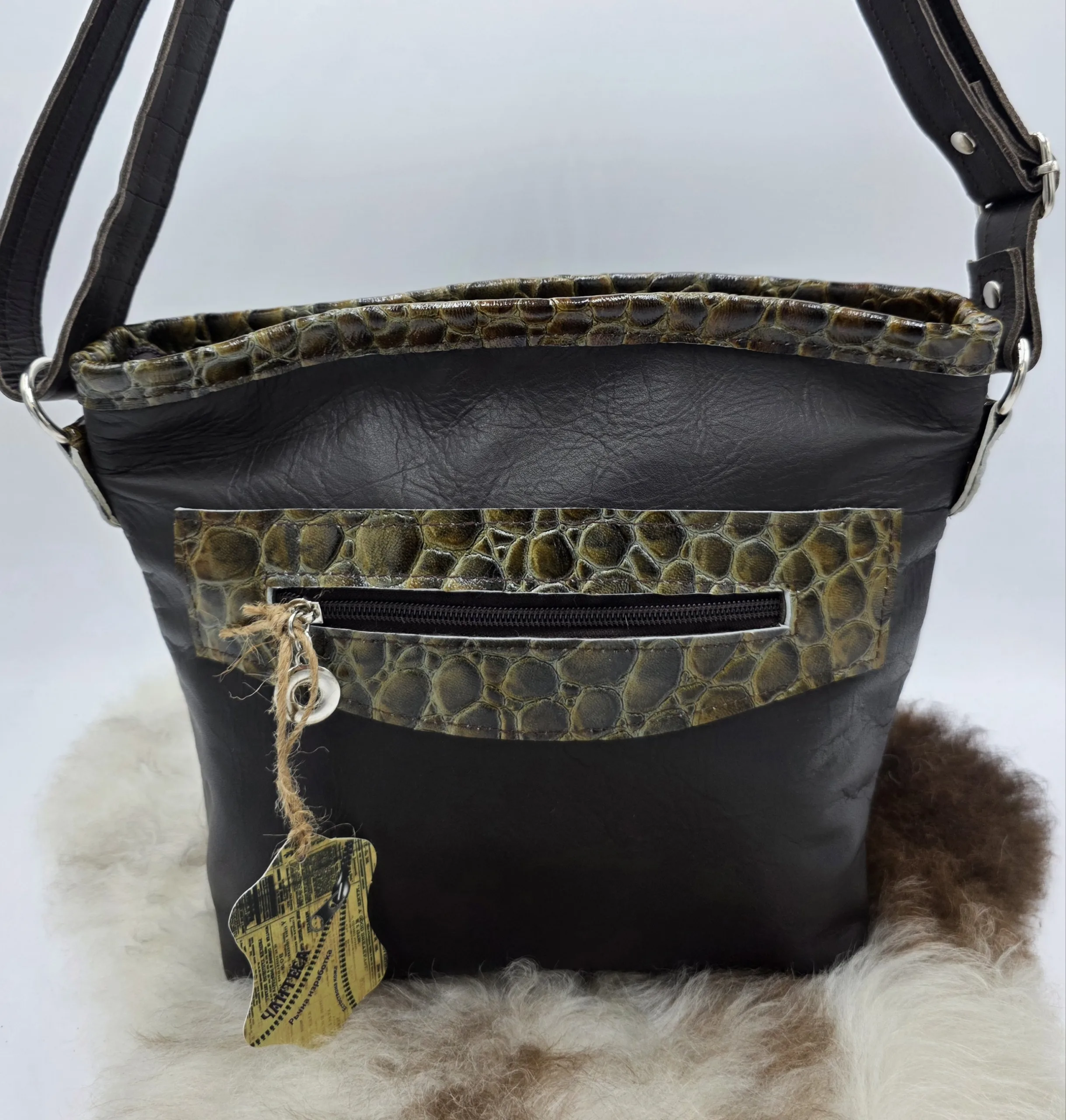 Ръчно изработена чанта от естествена кожа с две отделни прегради, заден джоб+вътрешен с цип и отделение за телефон. Вис 23см,ширина