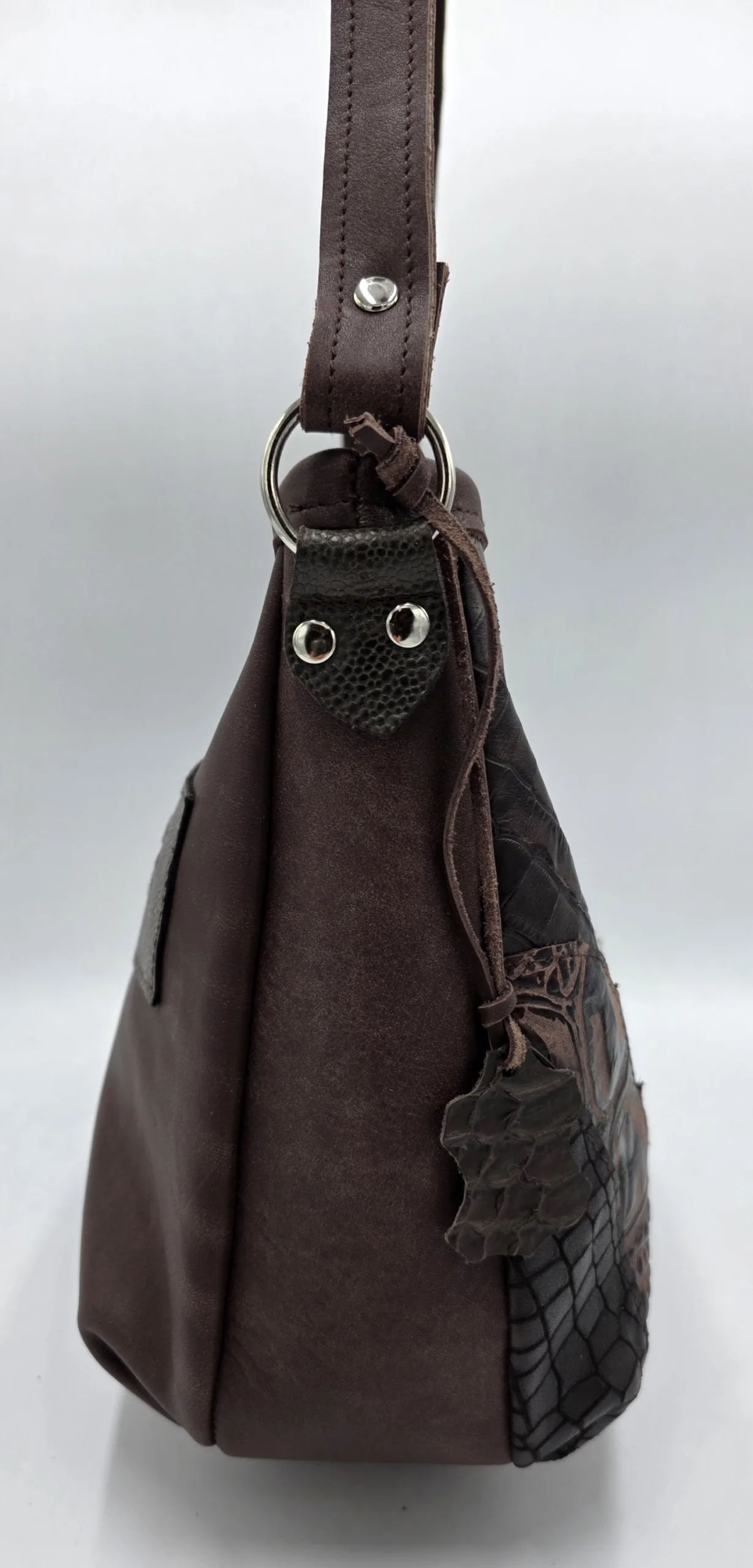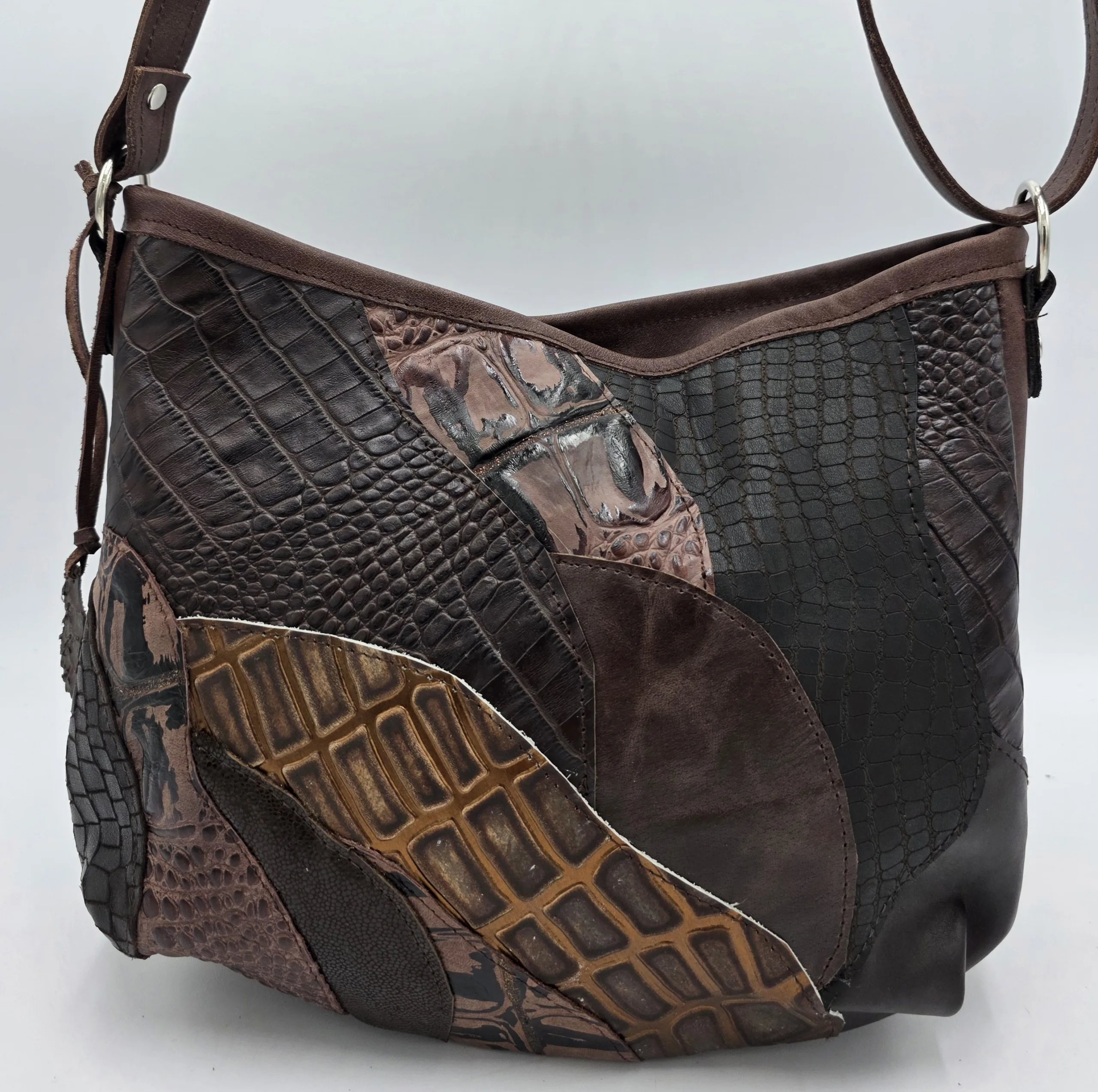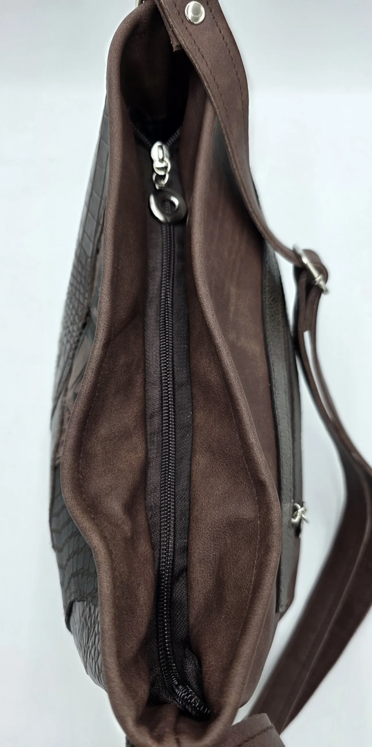 Ръчно изработена чанта от естествена кожа с дълга регулираща се дръжка 150см, външен заден джоб с, закопчаване с цип, средна преграда с цип, вътрешен джоб с цип и допълнителен джоб за телефон, ширина 30см, височина 25см, дъно 29см/9см.