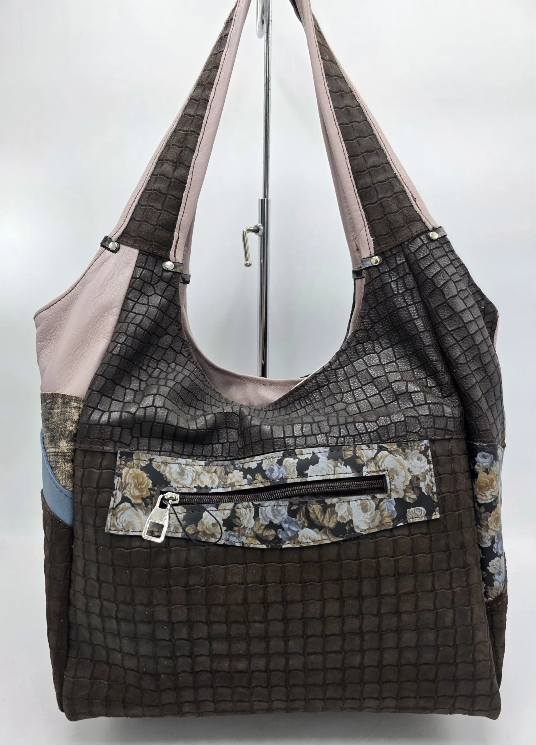 Уникална чанта от естествена кожа тип торба,външен заден джоб с цип, супер удобни две дръжки 65см,вътрешен джоб с цип и допълнителен джоб за телефон. Ширина 45см,височина 29см,дъно 30см/20см