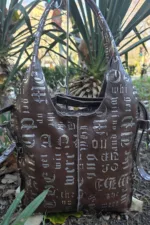 Уникална чанта раница от естествена кожа ръчна изработка с две дръжки 90см, с два големи външни джоба отпред и отзад,