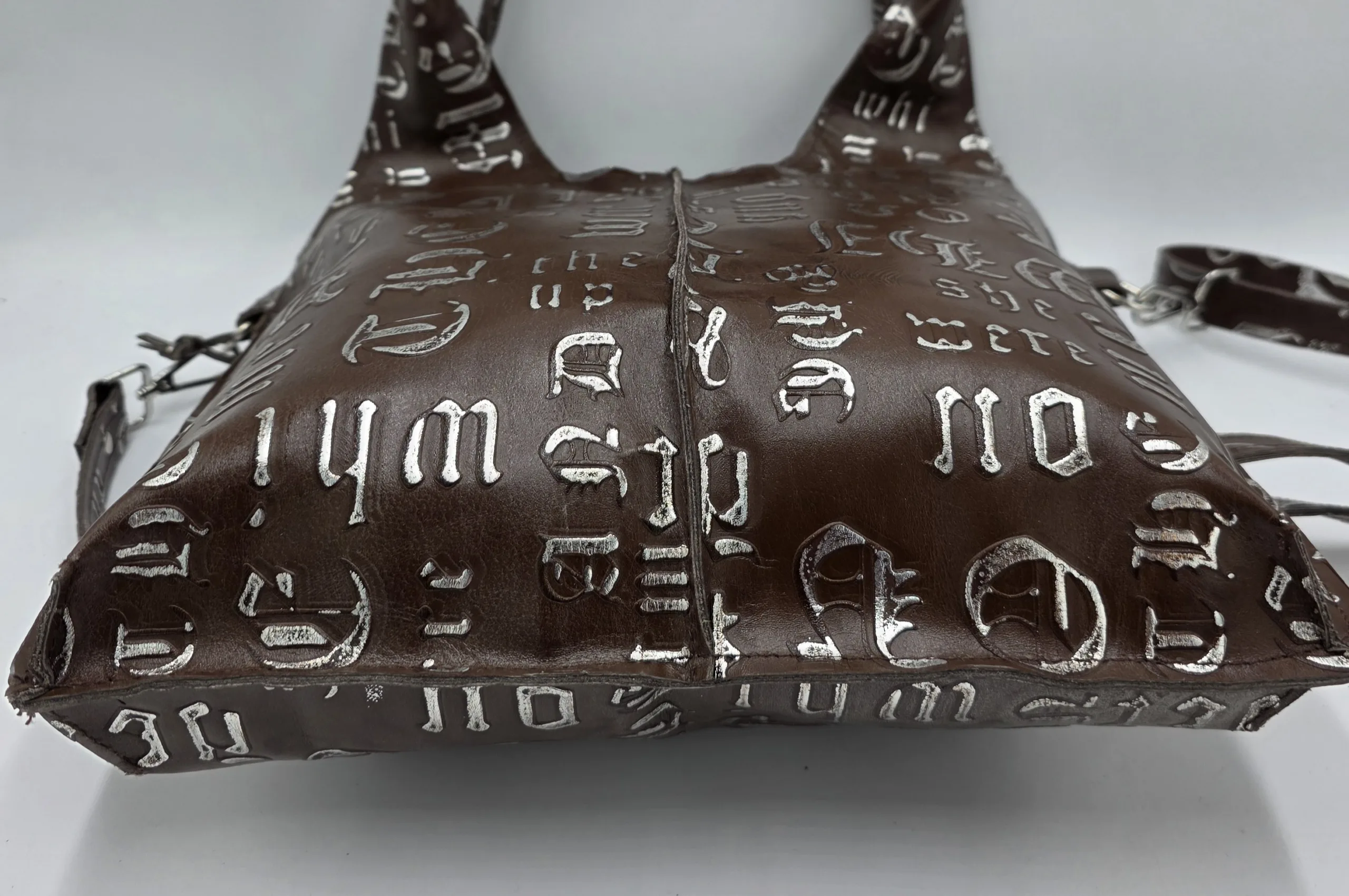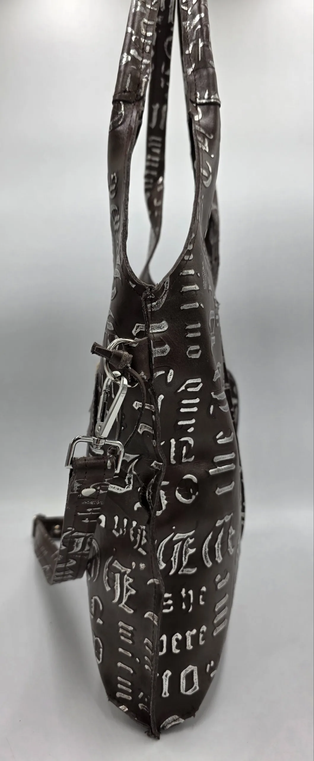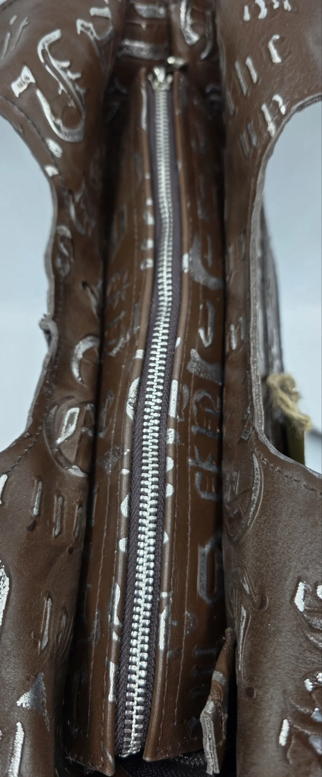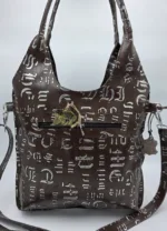 Чанта от естествена кожа в кафяво и сребро