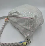 Чанта от естествена кожа в лилаво сребриста зебра