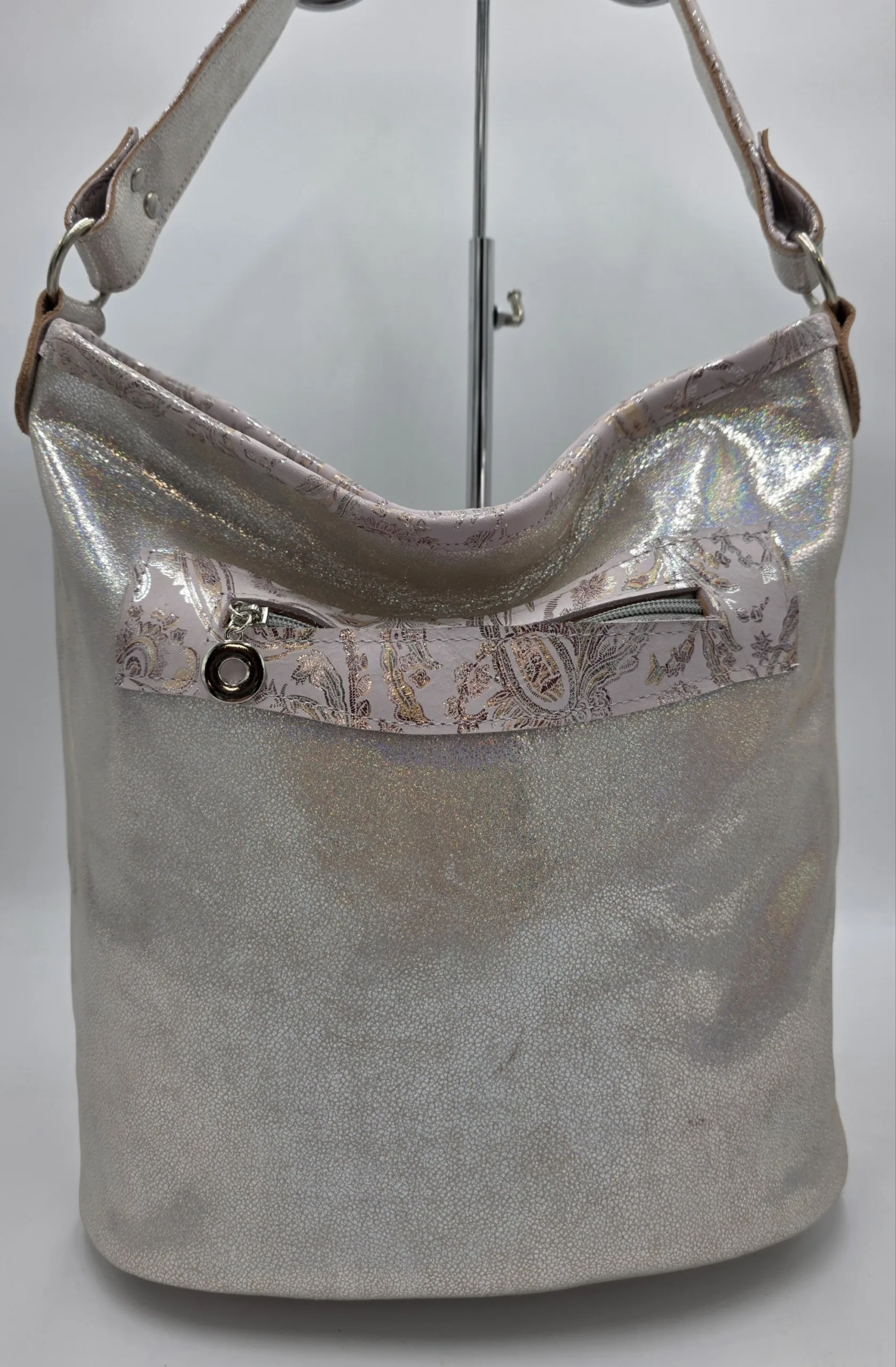 Чанта естествена кожа в сребисто 140.00лв. (71.58€)