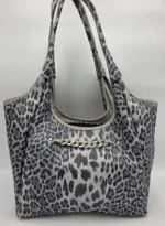 Начало Чанти от Естествена Кожа Големи Чанти Чанта от естествена кожа в сив леопардов принт