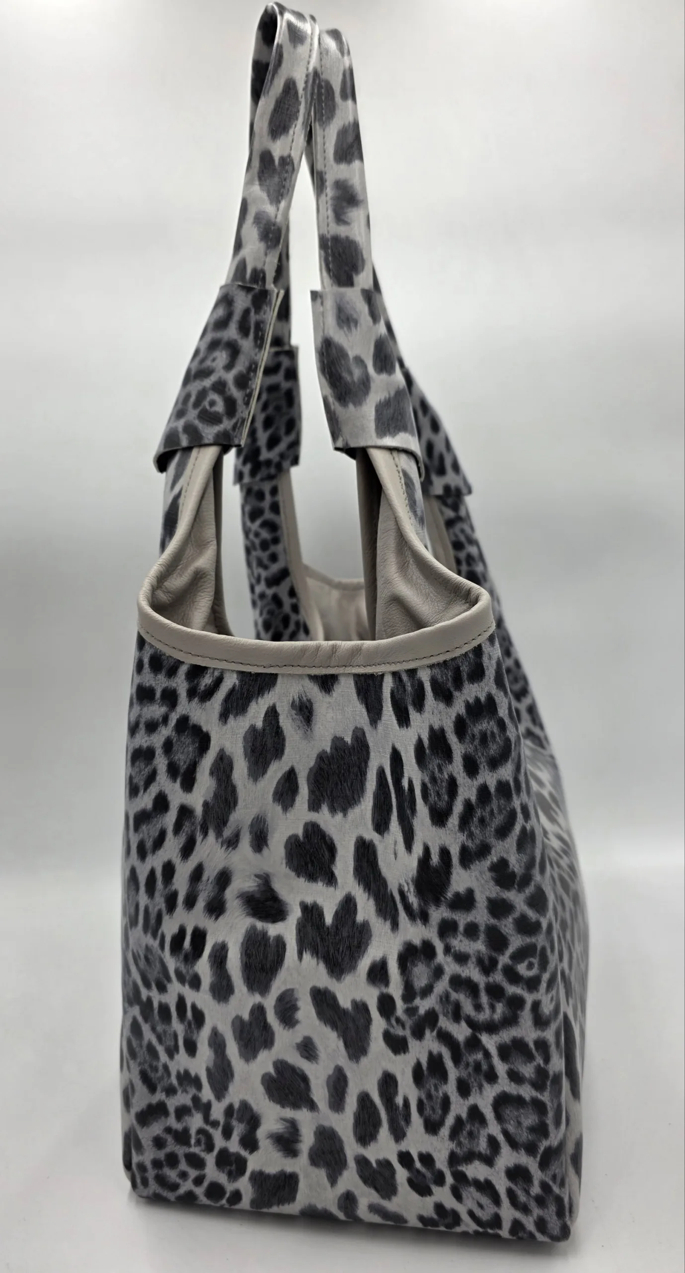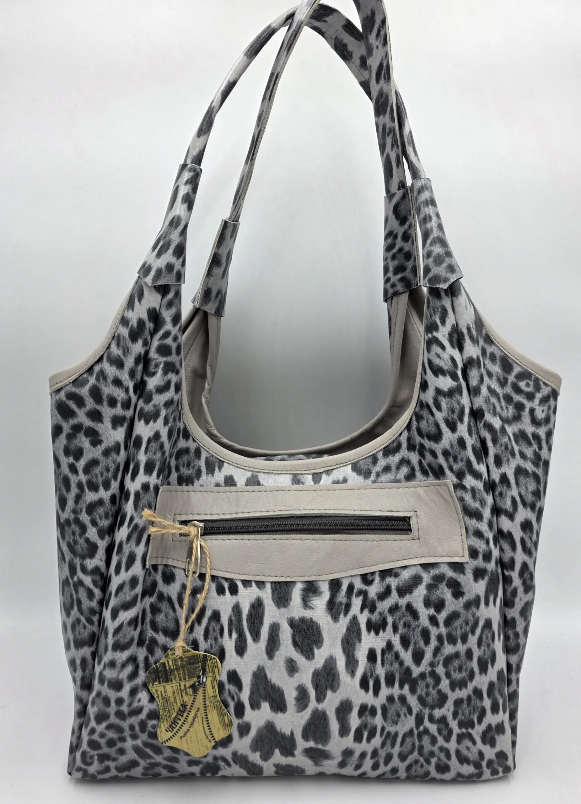 Начало Чанти от Естествена Кожа Големи Чанти Чанта от естествена кожа в сив леопардов принт