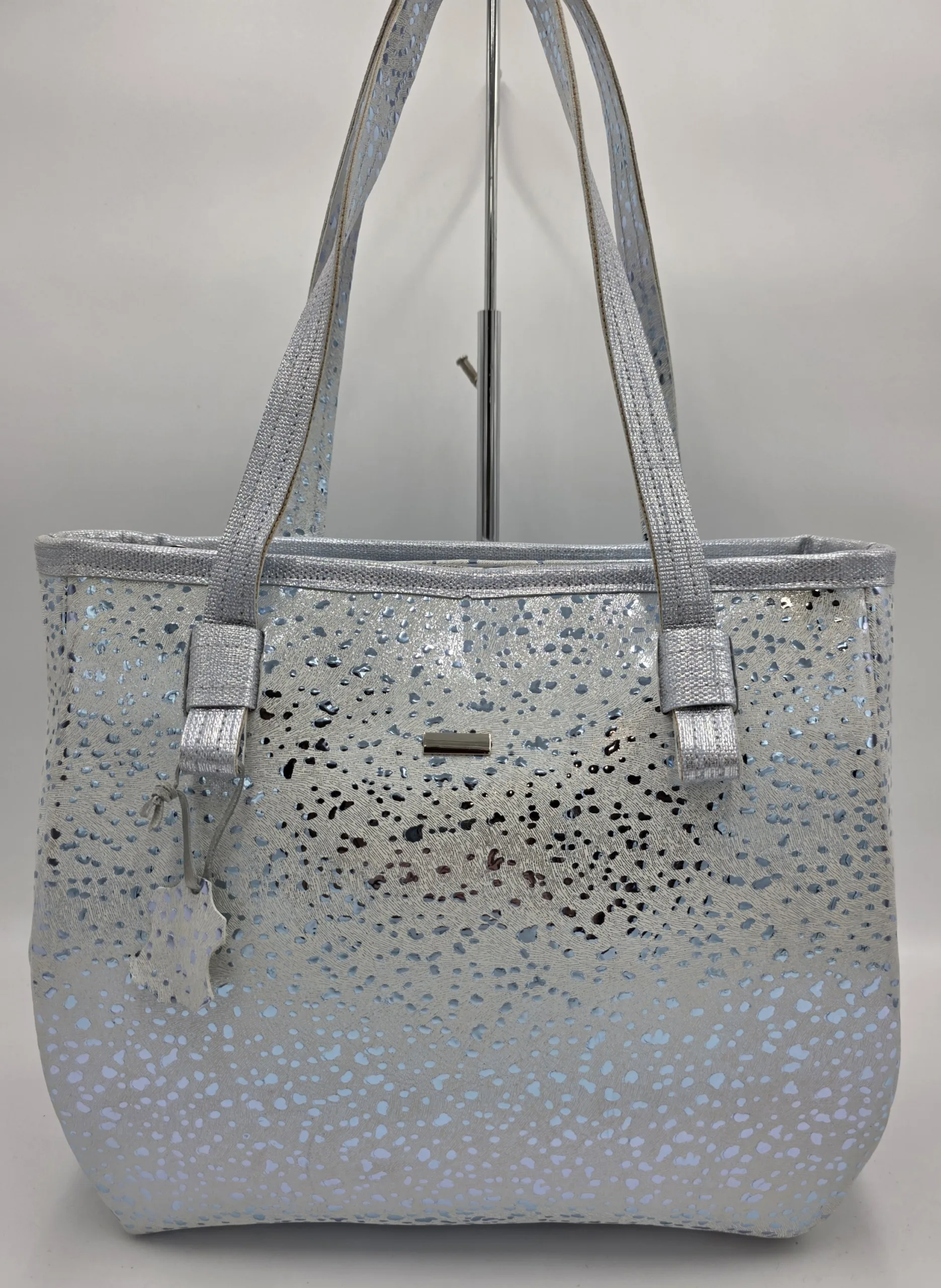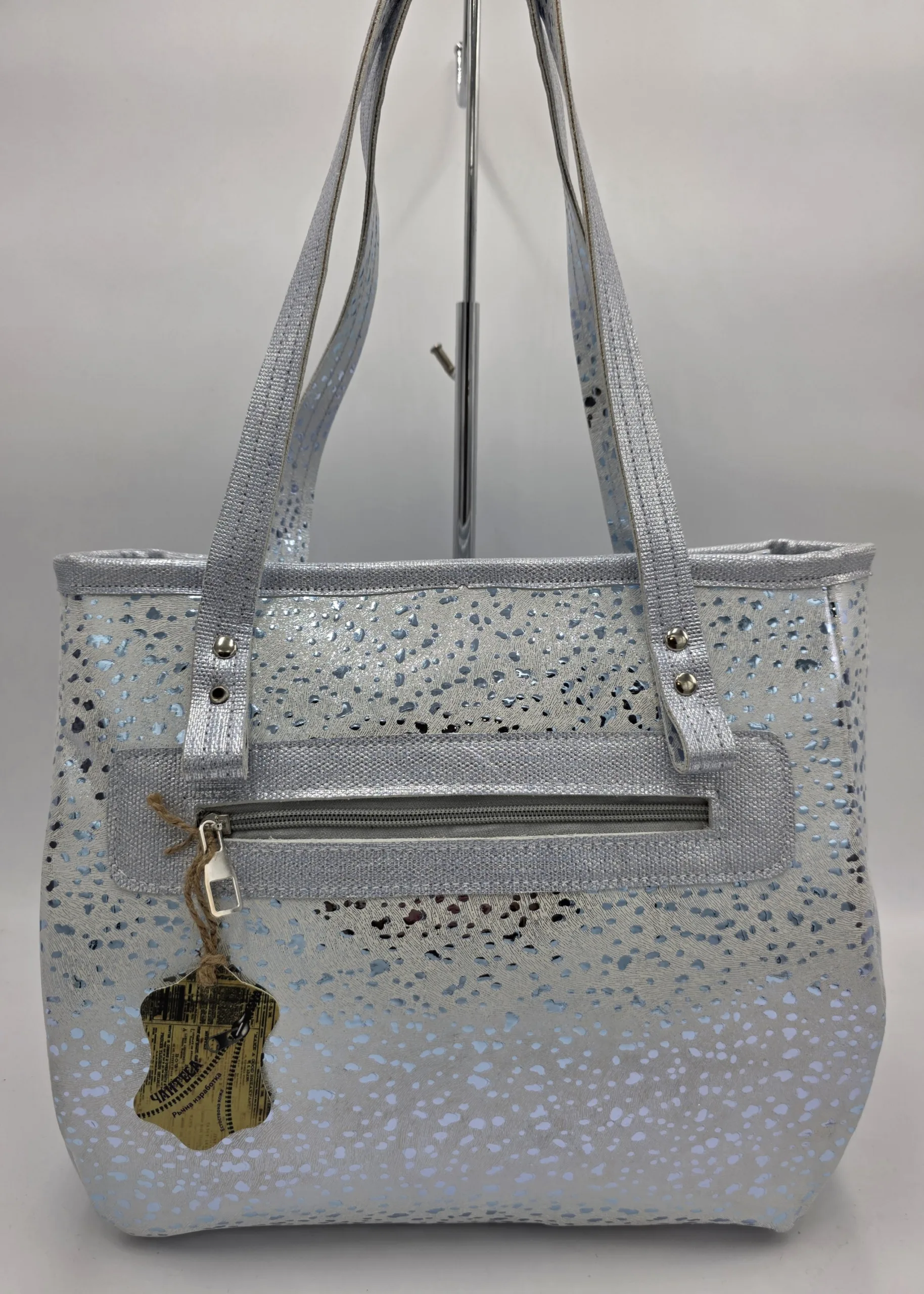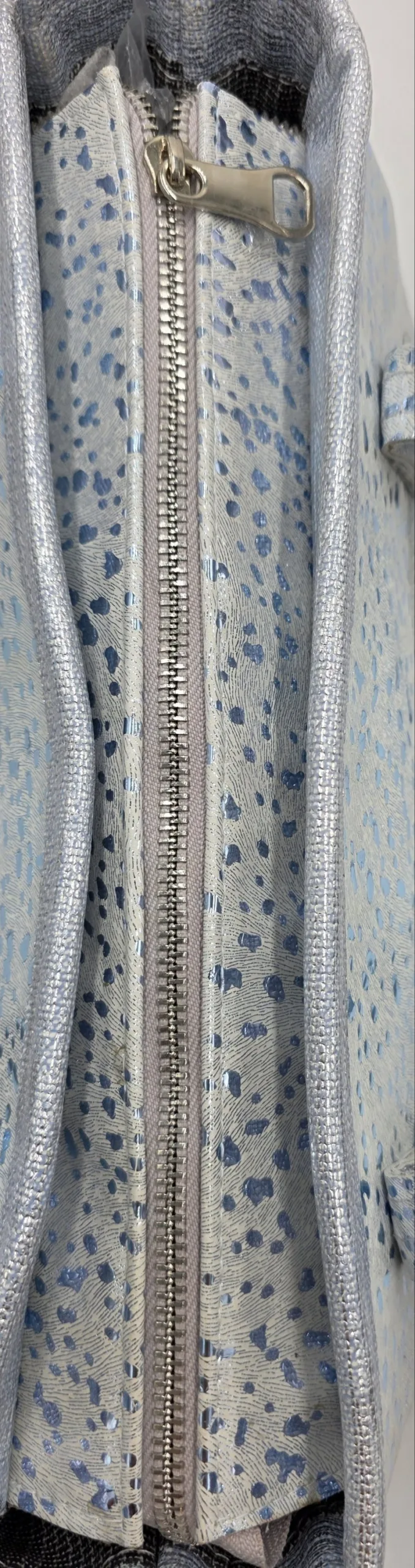 Начало Чанти от Естествена Кожа Средни Чанти Чанта от естествена кожа в сребисто със светло син оттенък