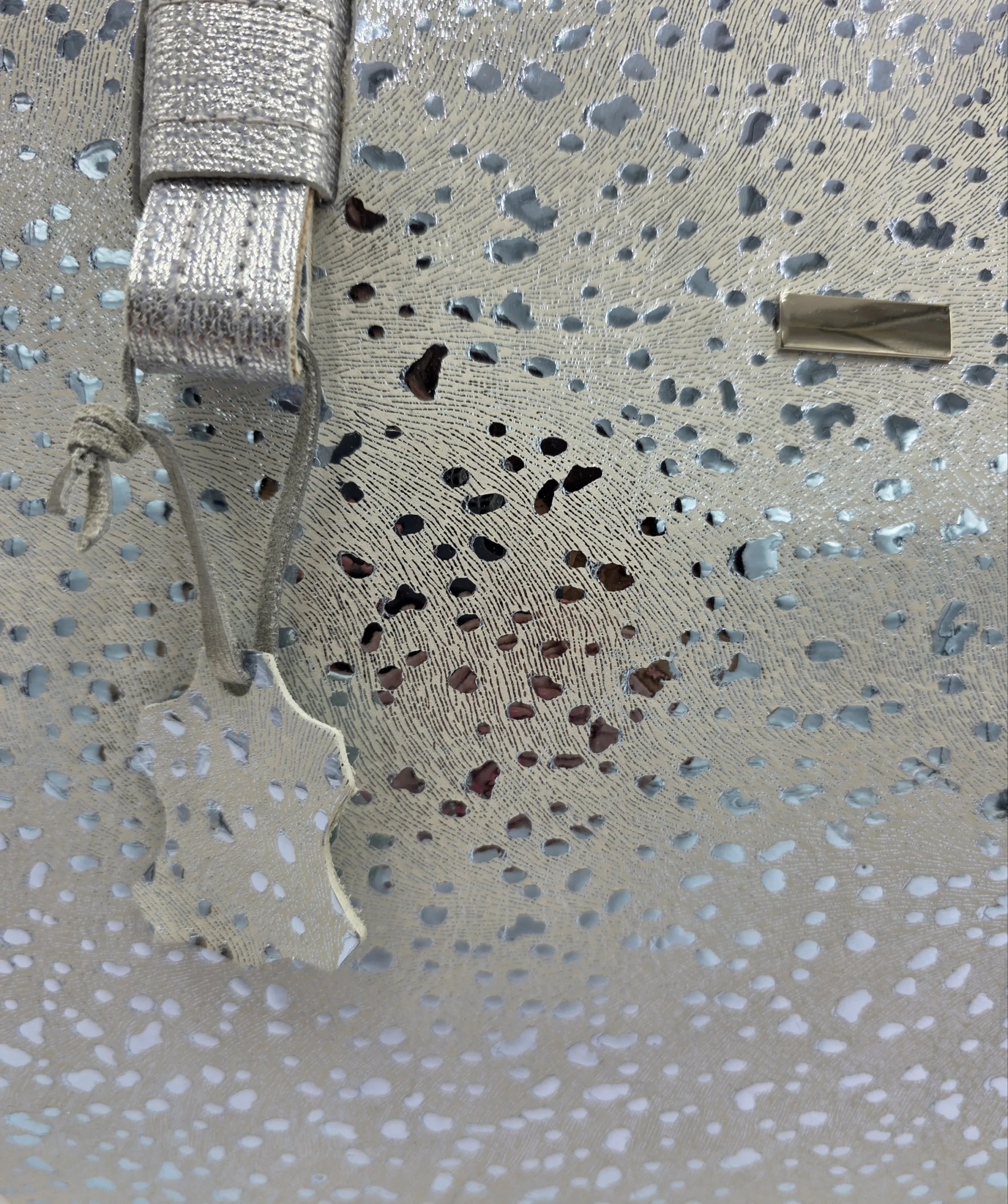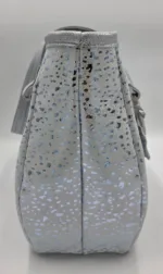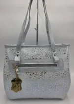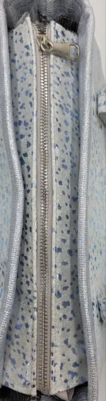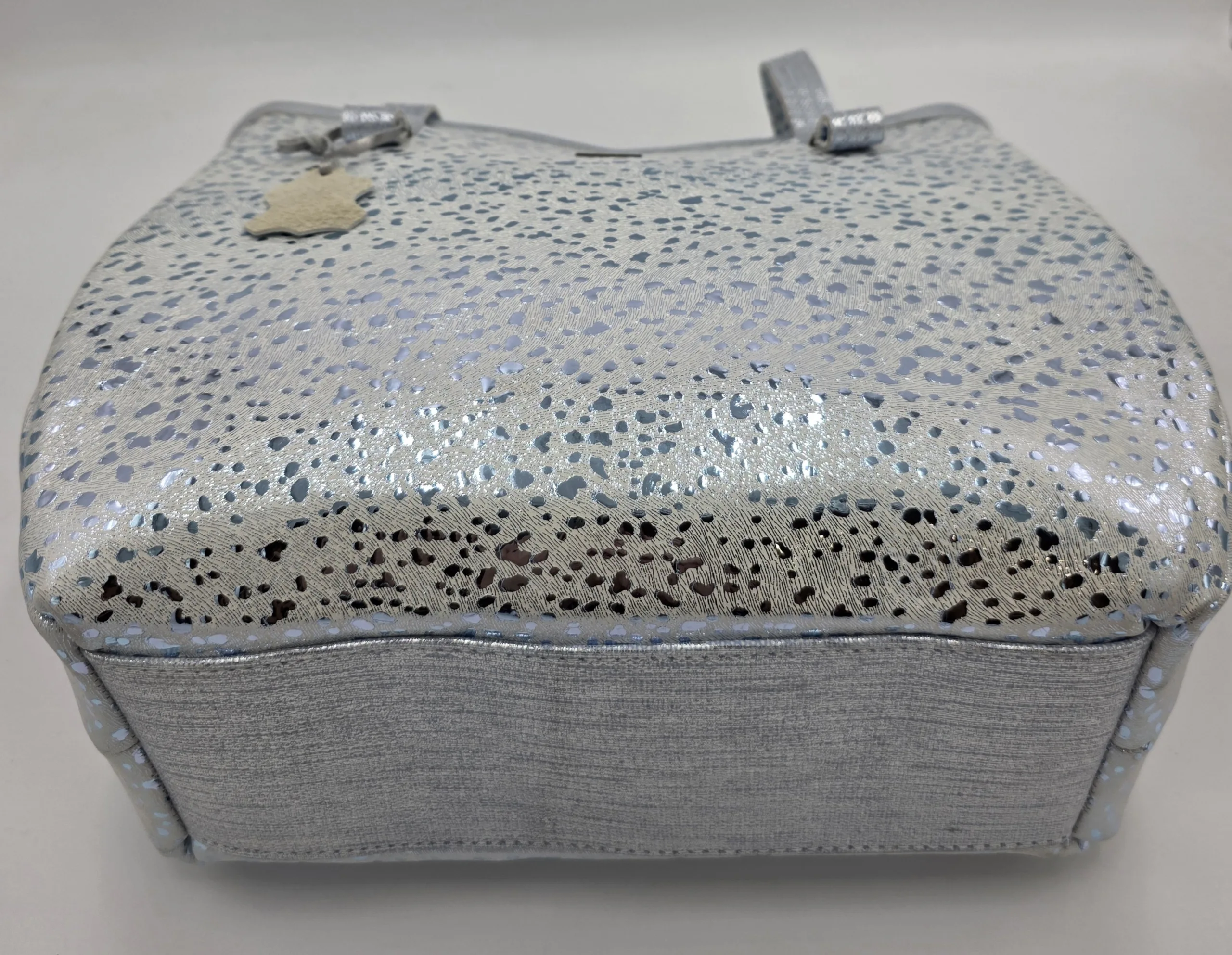 Чанта от естествена кожа в сребисто със светло син оттенък