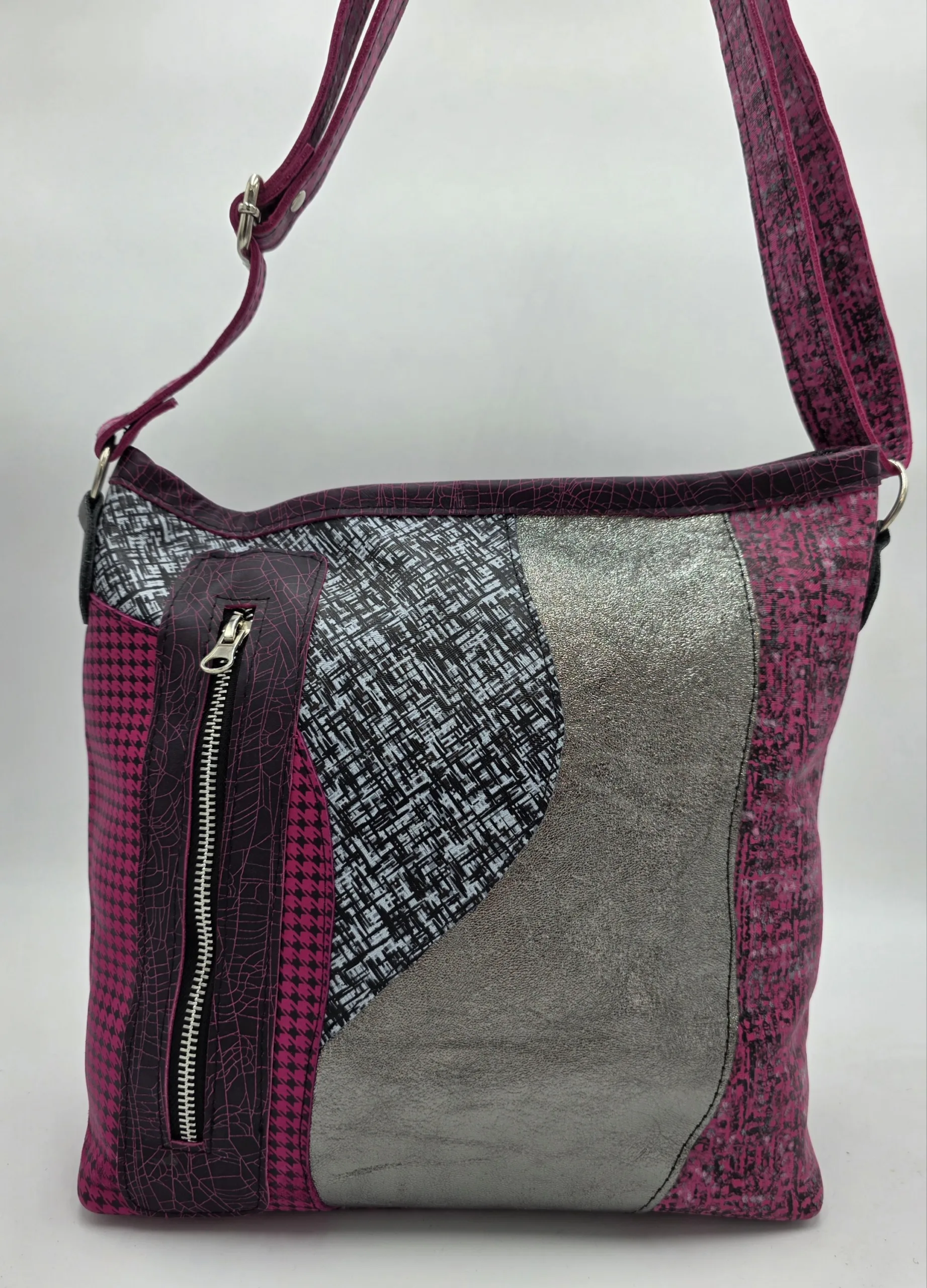 Чанта от естествена кожа с дълга регулираща се дръжка 150см, два външни джоба с цип, закопчаване с цип, вътре със средна преграда с цип, джоб с цип и допълнителен джоб за телефон. Ширина 33см,височина 28см,дъно 26см/9см