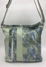 Чанта от естествена кожа в зелено и зелен змийски принт