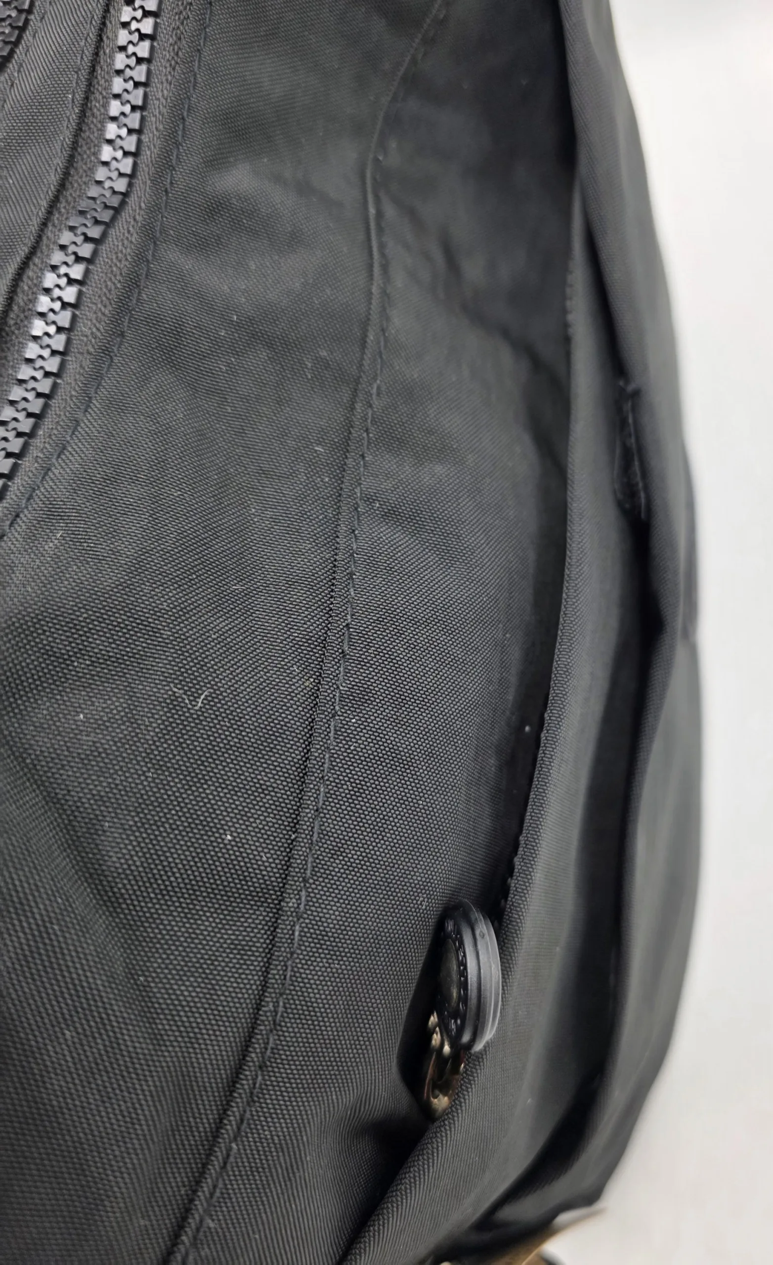 Раница от гумиран непромокаем текстил с непромокаеми ципове,с капак, два външни джоба с цип, вътрешен джоб с цип и подсилена