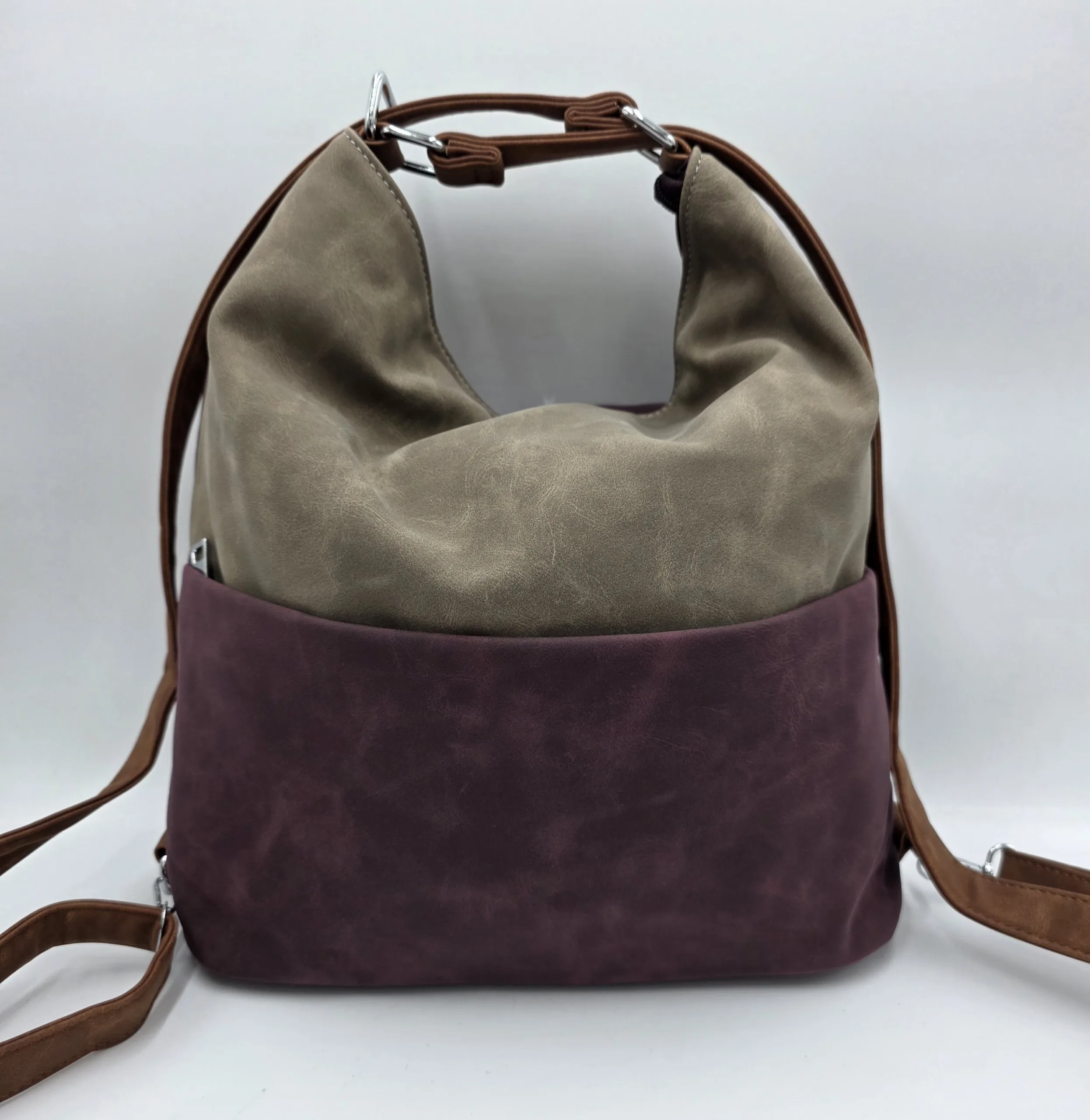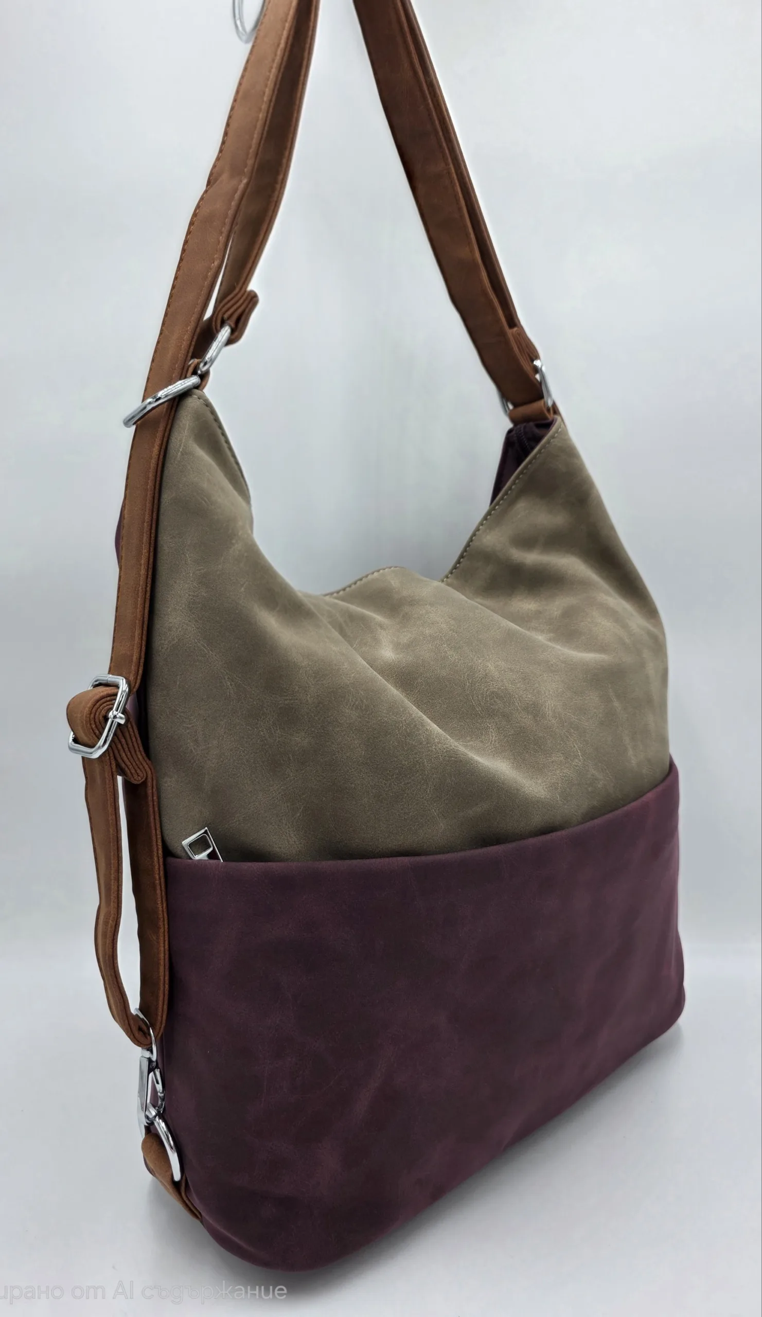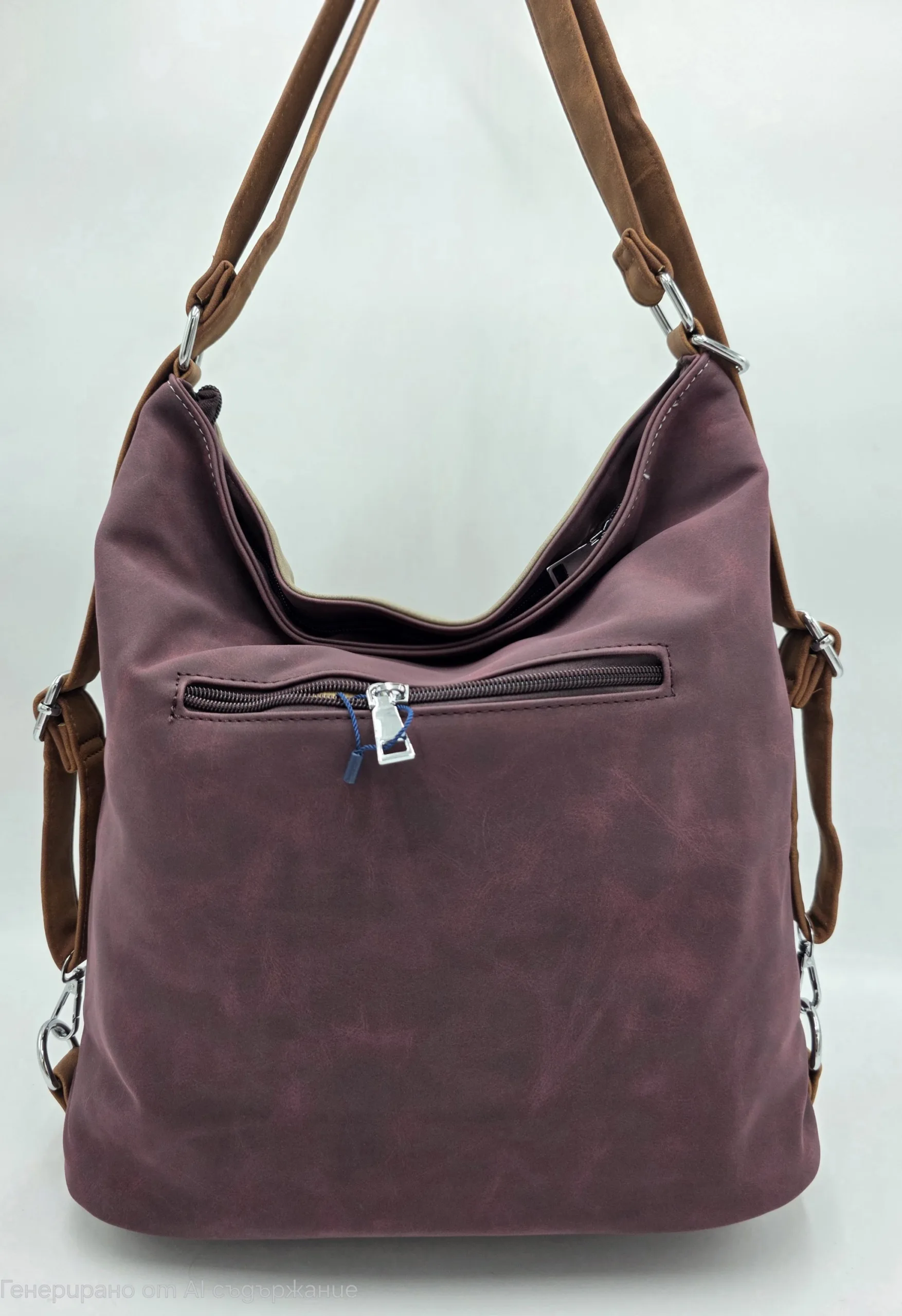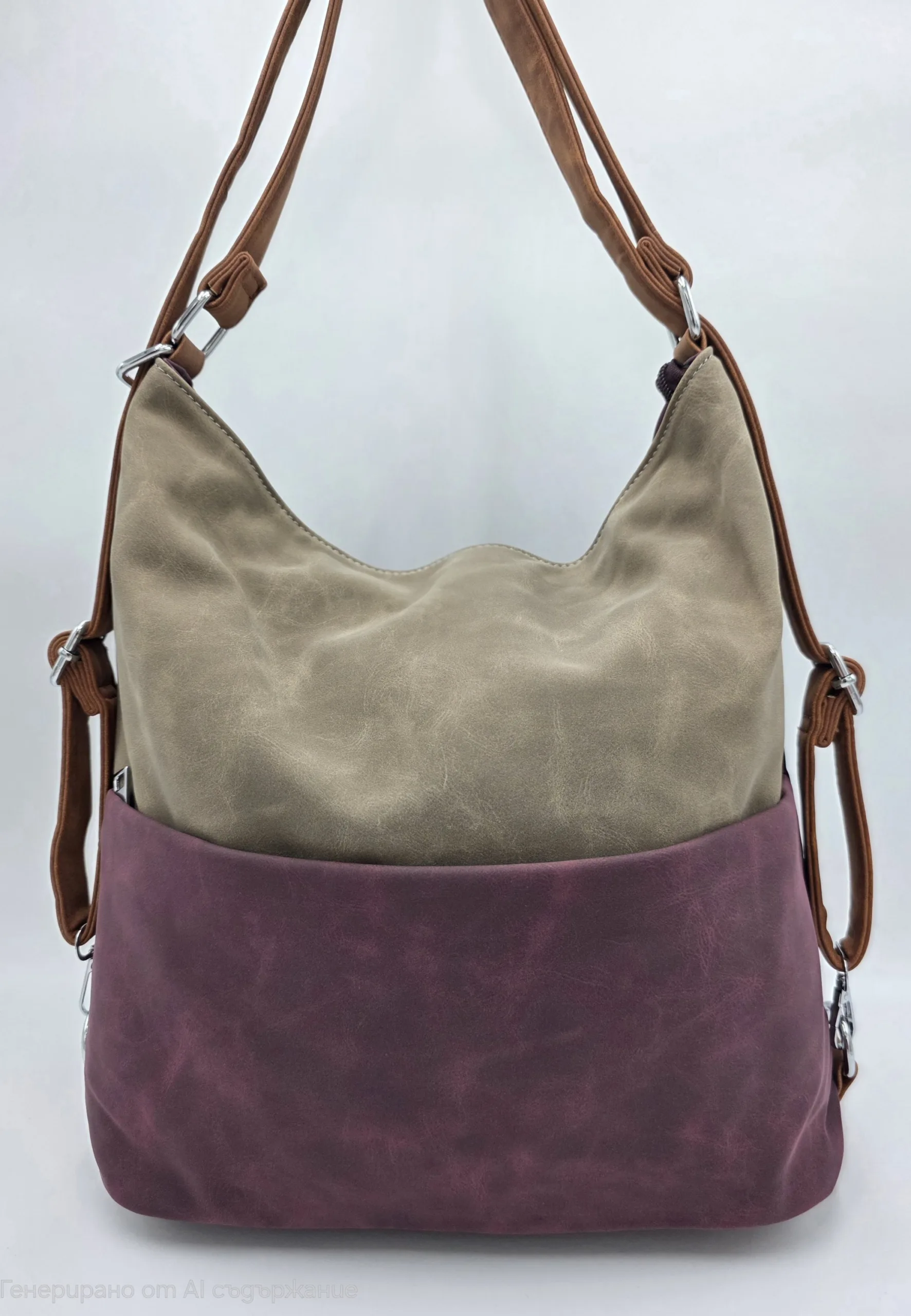 Начало Чанти от Еко Кожа Големи Чанти Чанта раница от еко набук в бордо и бежово