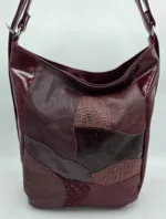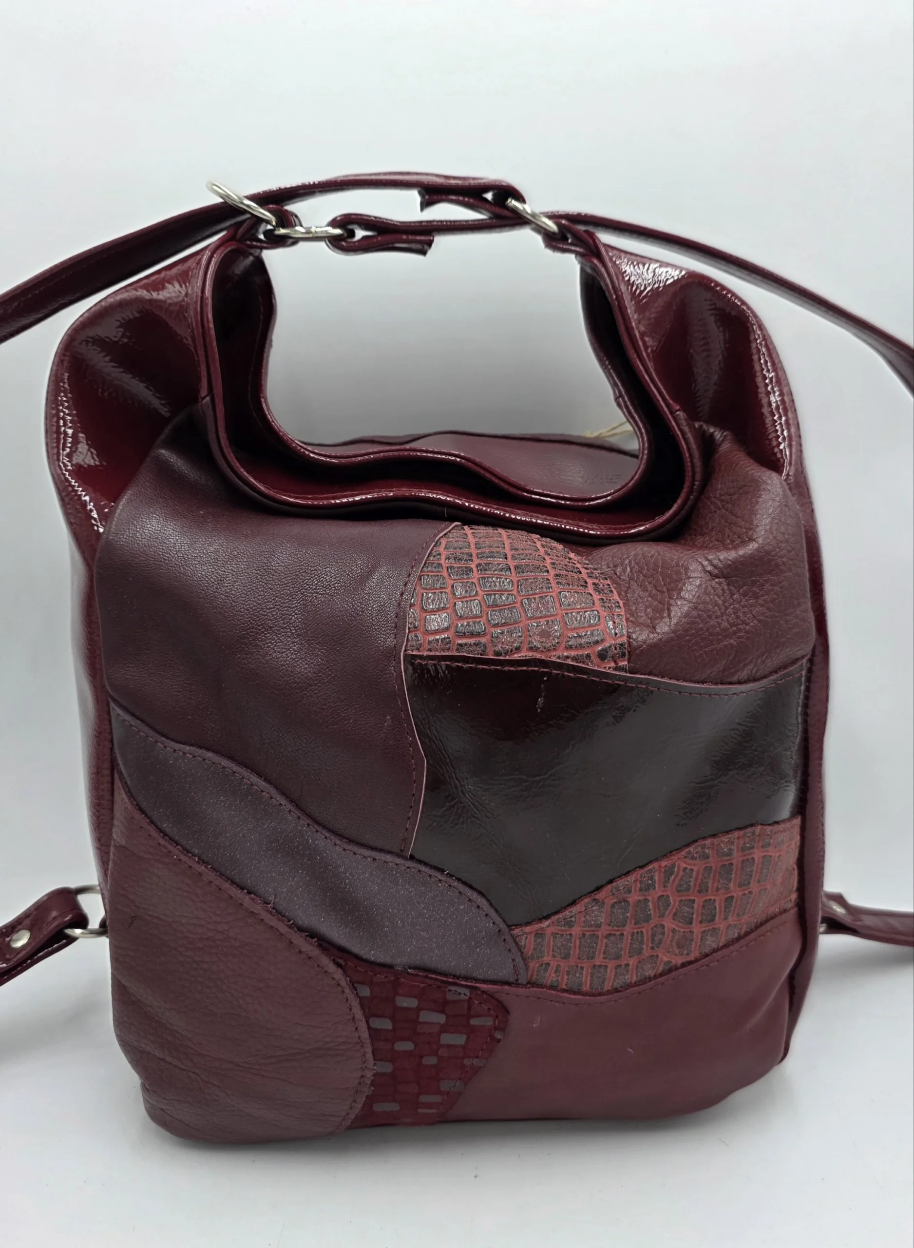 Чанта раница от еко кожа с елементи от естествена кожа в бордо/лак/