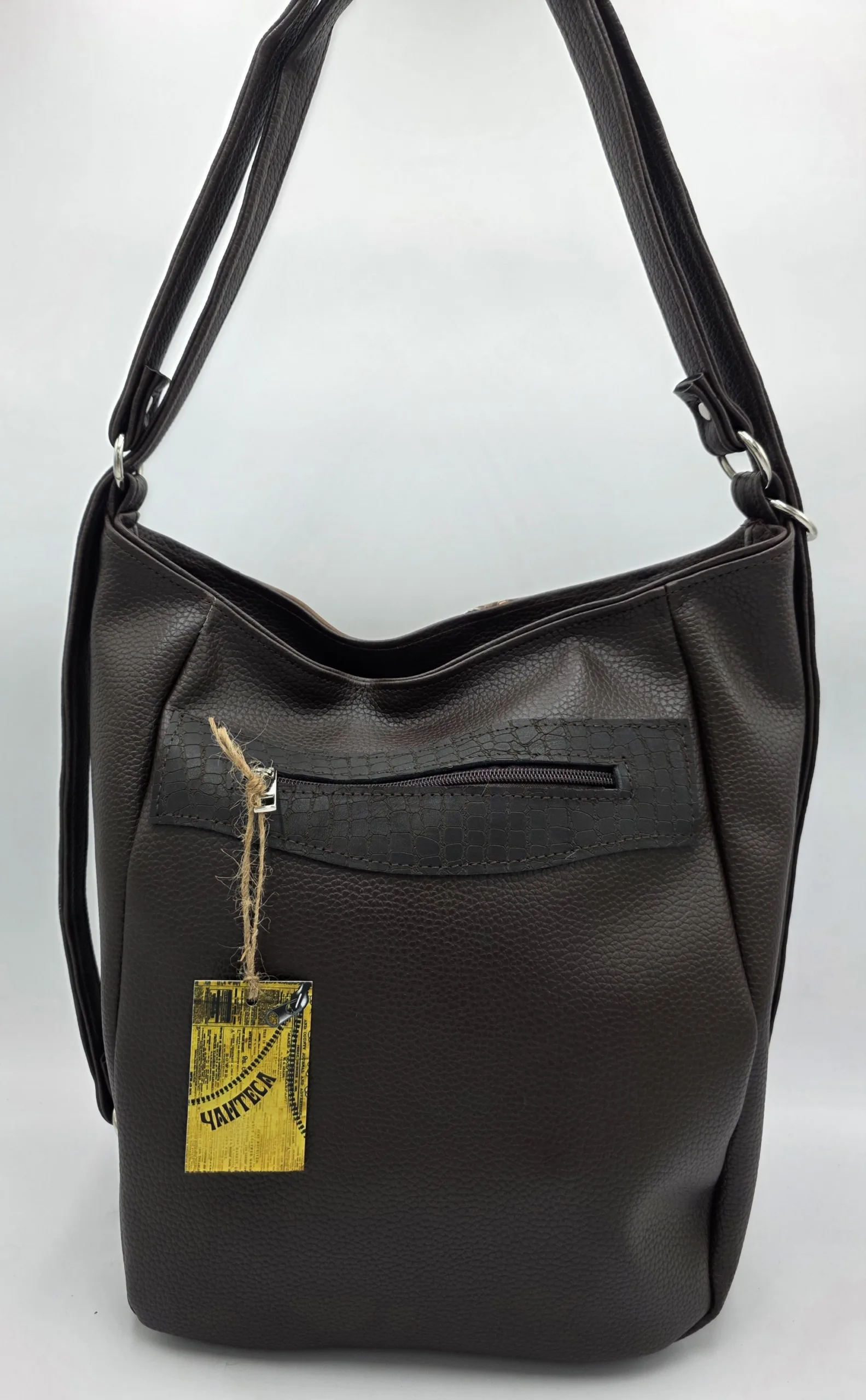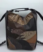 Уникална чанта раница от еко кожа с лице от естествена кожа, две дръжки дължина 90см,външен заден джоб с цип, вътре