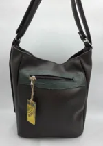 Уникална чанта раница от еко кожа с лице от естествена кожа, две дръжки дължина 90см,външен заден джоб с цип, вътре със средна преграда с цип, вътрешен джоб с цип и допълнителен джоб за телефон. Ширина 26см височина 31см,странично 15см,дъно 24см/15см.