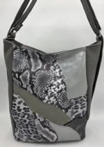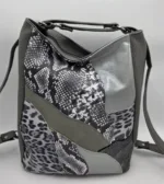 Уникална чанта раница от еко кожа с лице от естествена кожа, две дръжки дължина 90см,външен заден джоб с цип, вътре със средна преграда с цип, вътрешен джоб с цип и допълнителен джоб за телефон. Ширина 26см височина 31см,странично 15см,дъно 24см/15см.