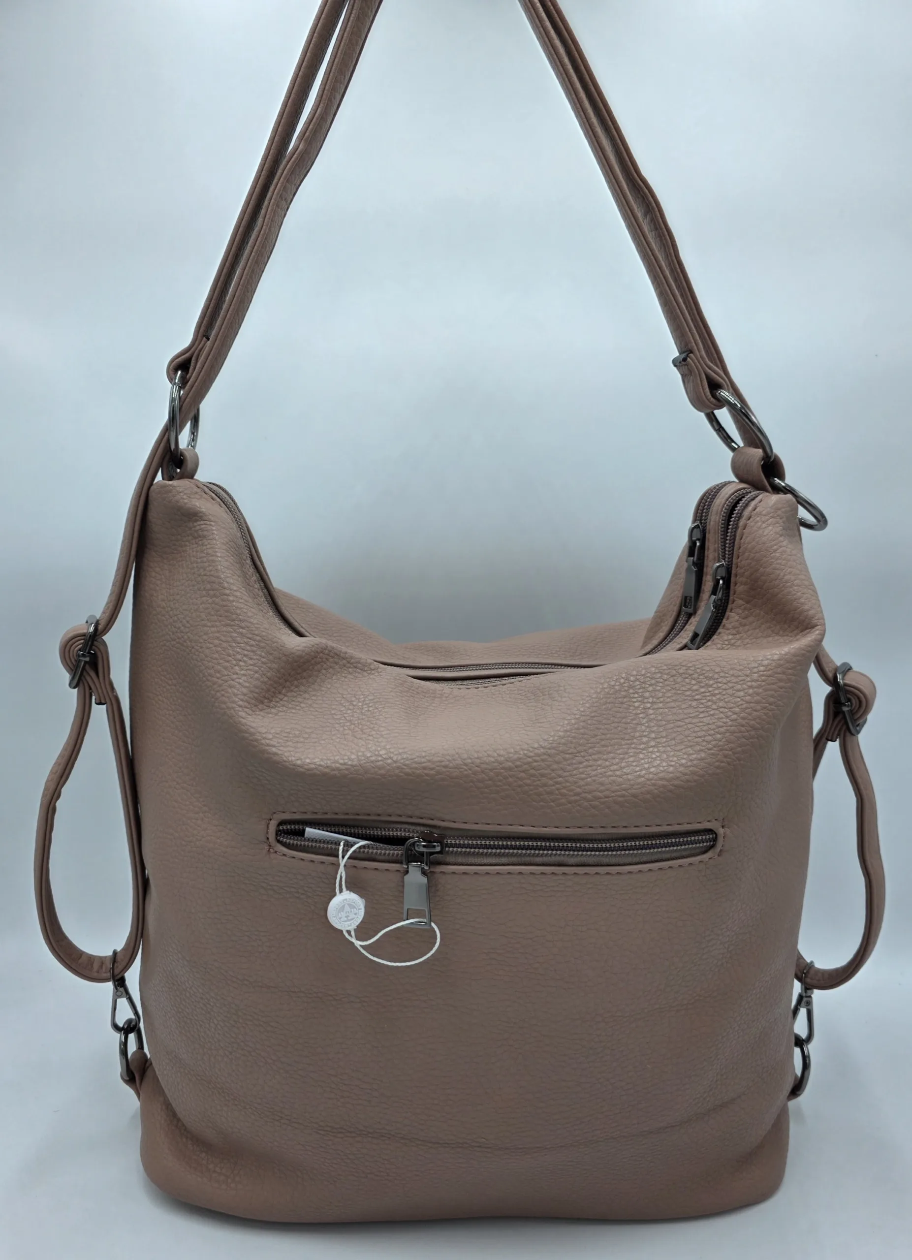 Уникална чанта раница от еко кожа с лице от естествена кожа, две дръжки дължина 90см,външен заден джоб с цип, вътре