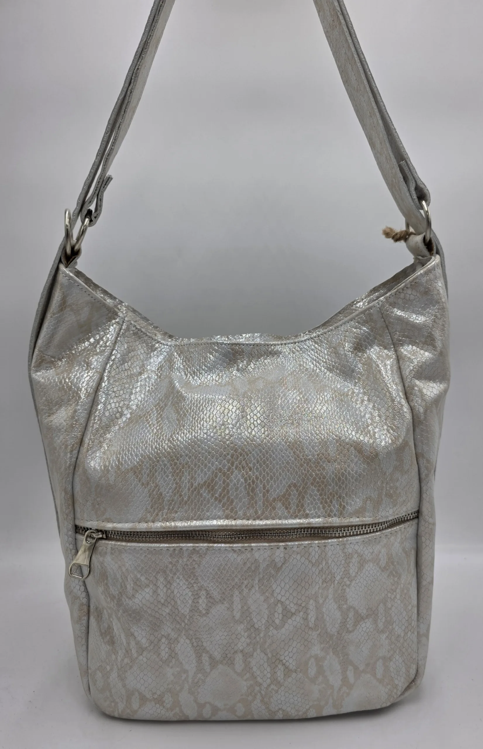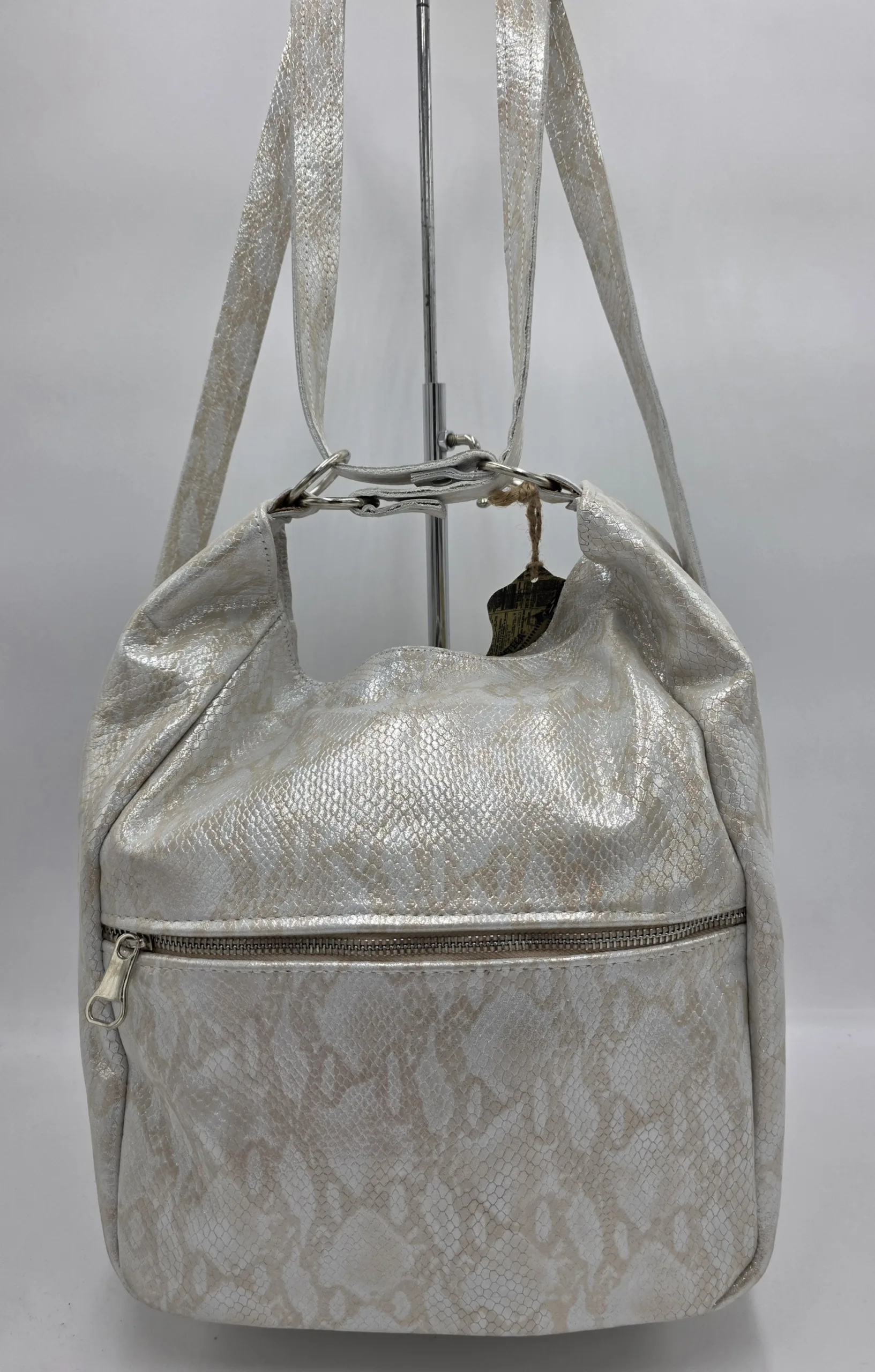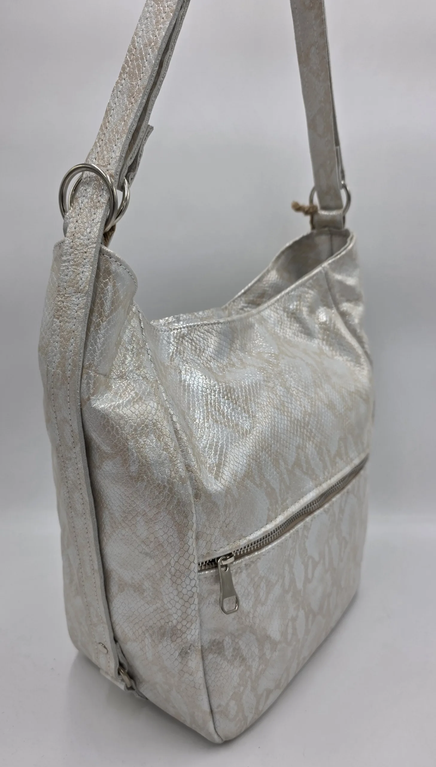Чанта раница от естествена кожа в сребро 140.00лв. (71.58€)