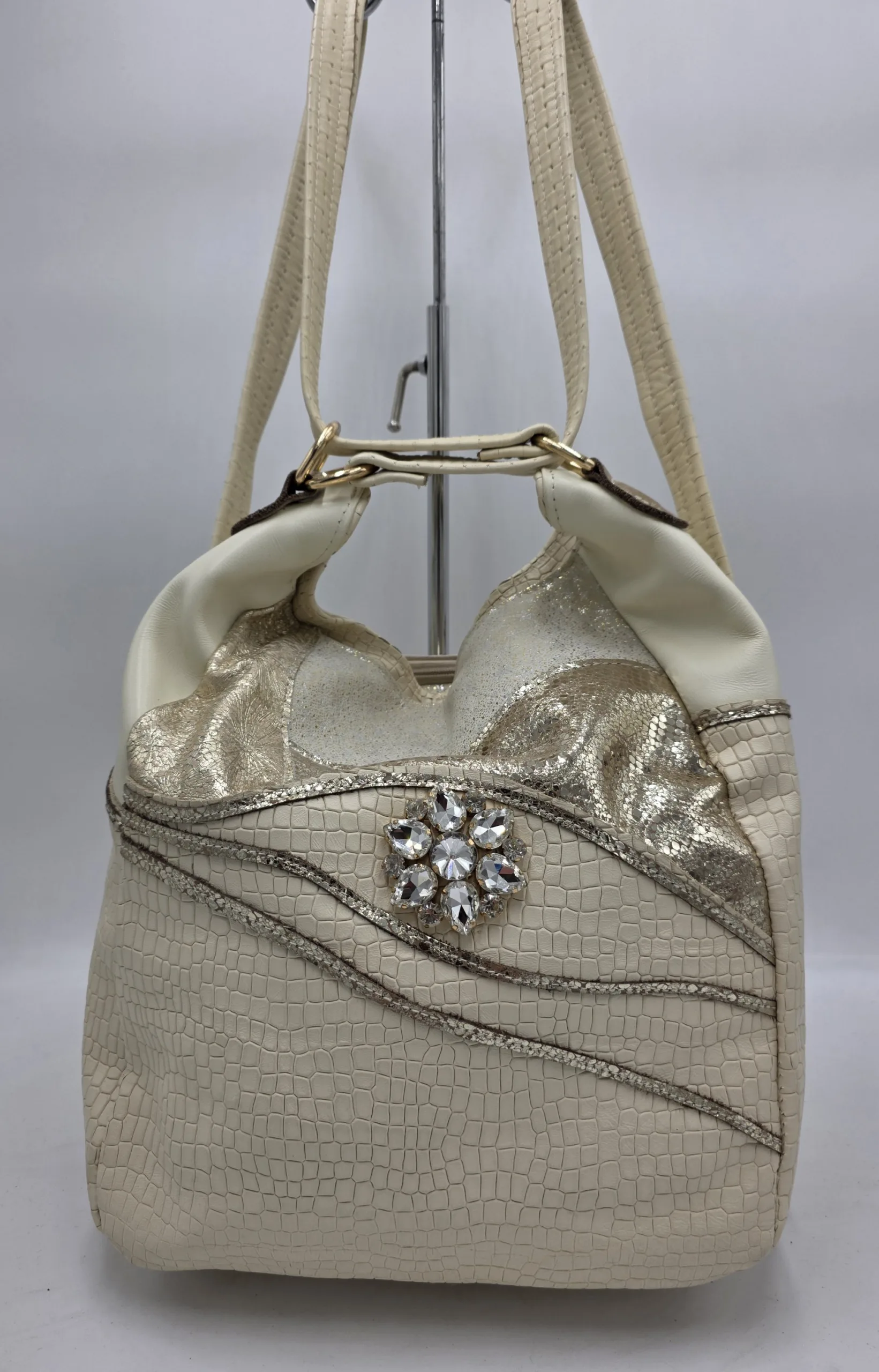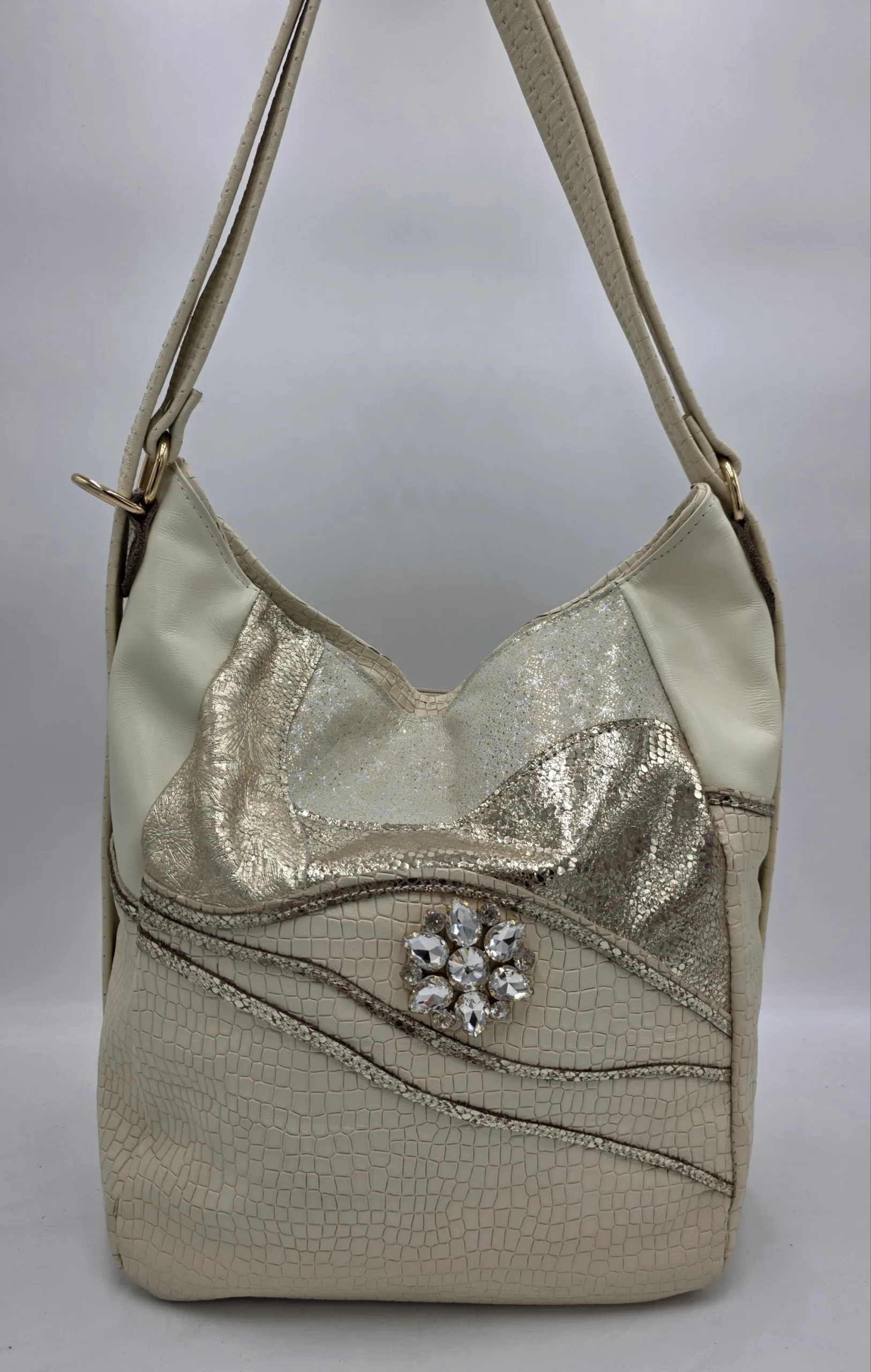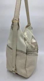 Чанта раница от естествена кожа беж +злато