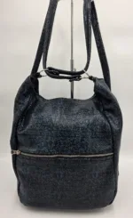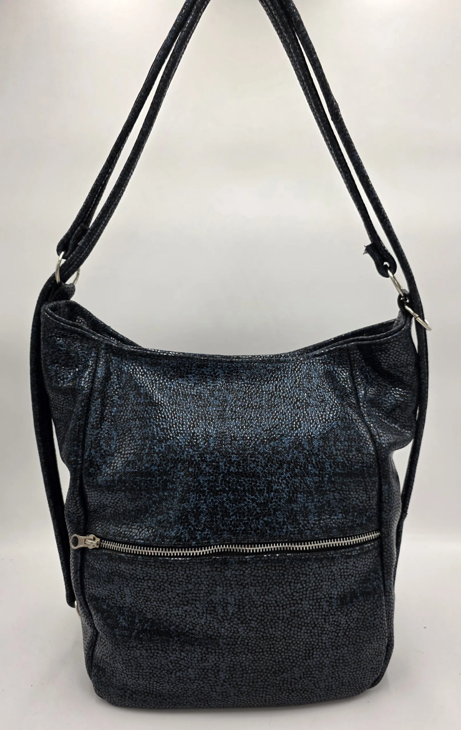 Чанта раница от естествена кожа черносин меланж
