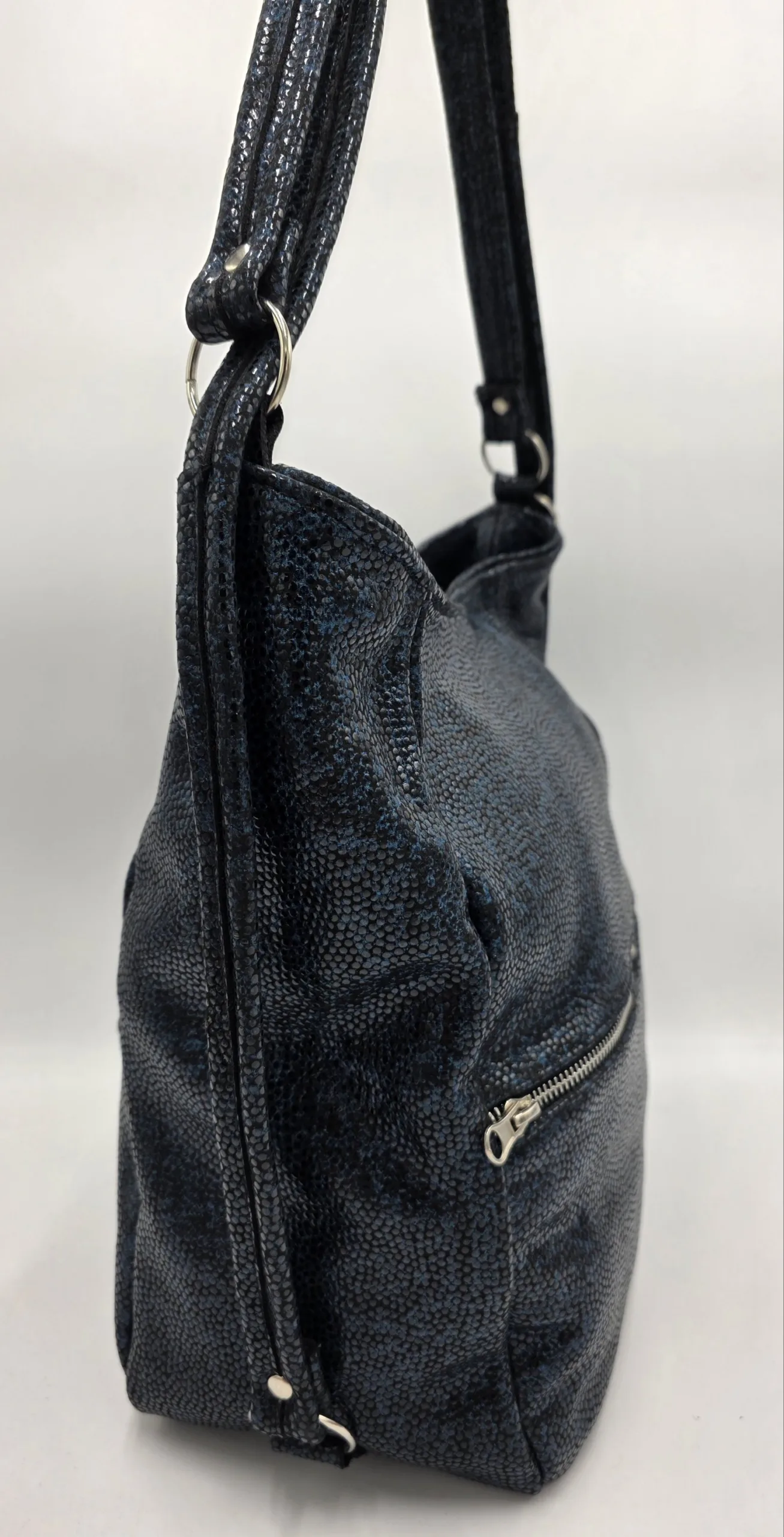 Уникална чанта раница от естествена кожа ръчна изработка с две дръжки 90см, с два големи външни джоба отпред и отзад, закопчаване с цип ,вътре със средна преграда с цип, вътрешен джоб с цип и допълнителен джоб за телефон. Ширина 30см,височина 30см,дъно 26см/15см
