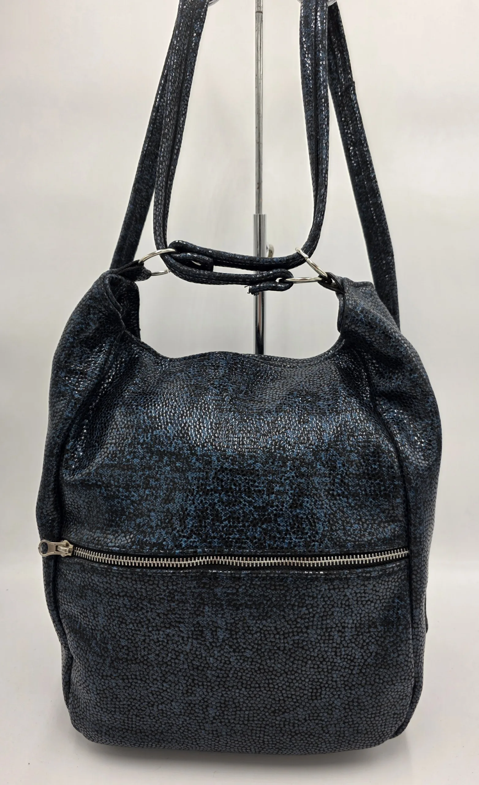 Начало Чанти от Естествена Кожа Средни Чанти Чанта раница от естествена кожа черносин меланж