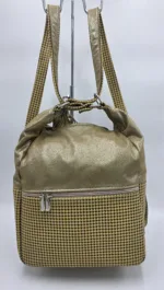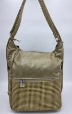 Чанта раница от естествена кожа горчица с металик ефект +пипит