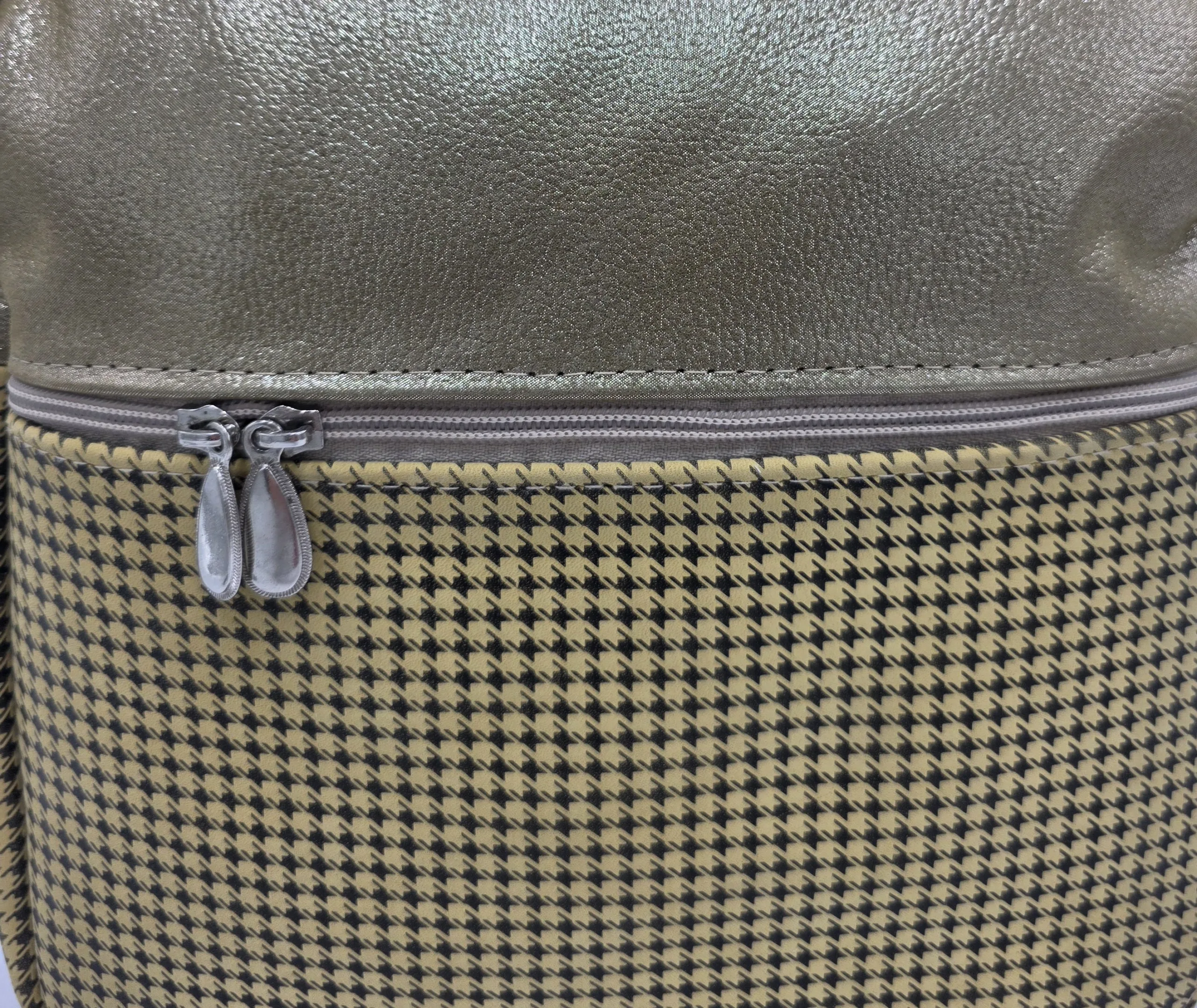 Раничка от еко кожа с три отделни прегради затварящи се с цип.Височина 24см,ширина 18см,дъно 18см/10см.