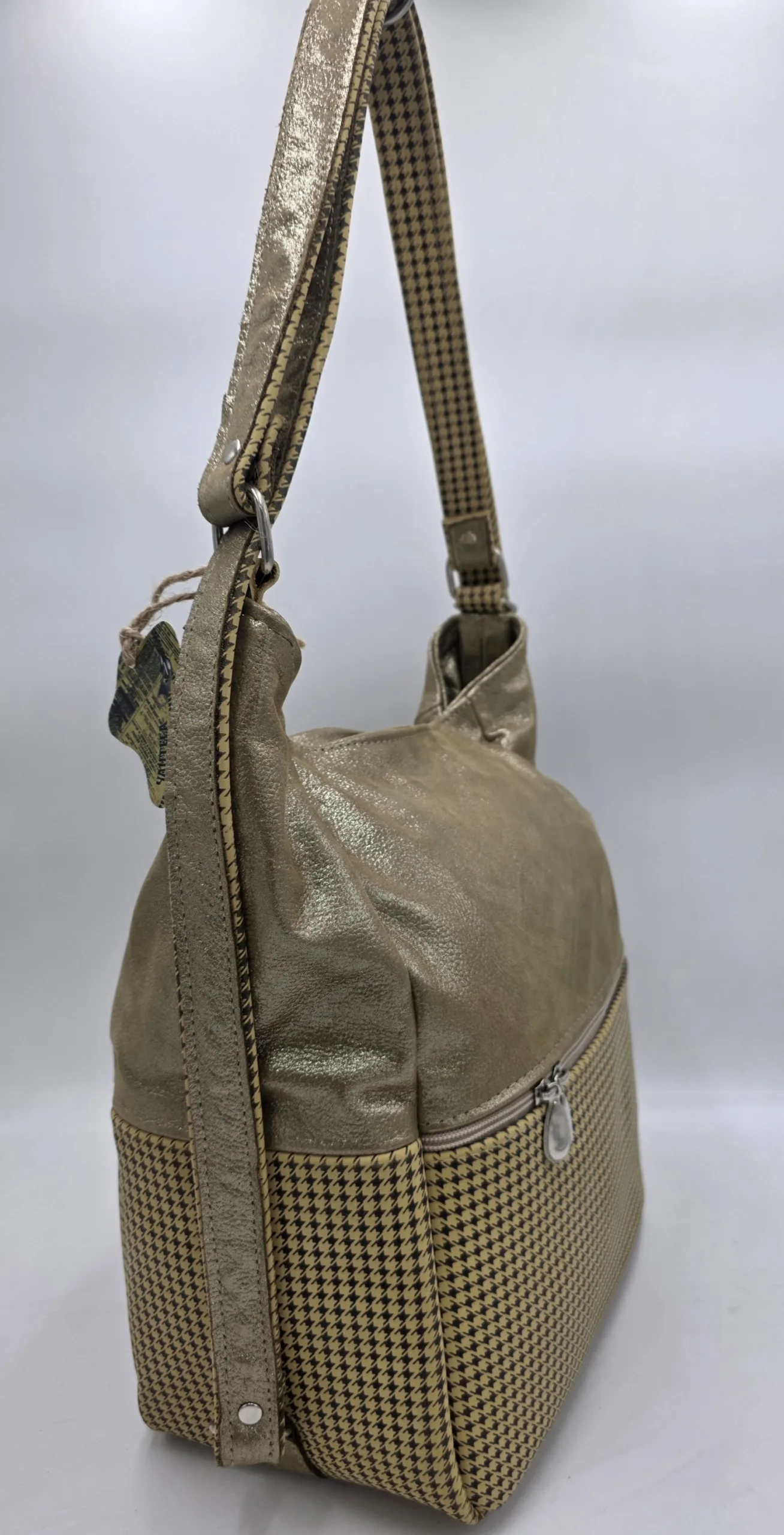 Чанта раница от естествена кожа горчица с металик ефект +пипит