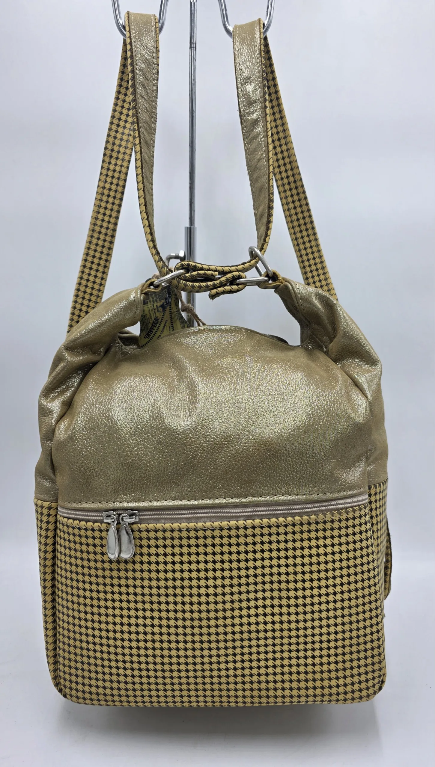 Начало Чанти от Естествена Кожа Средни Чанти Чанта раница от естествена кожа горчица с металик ефект +пипит