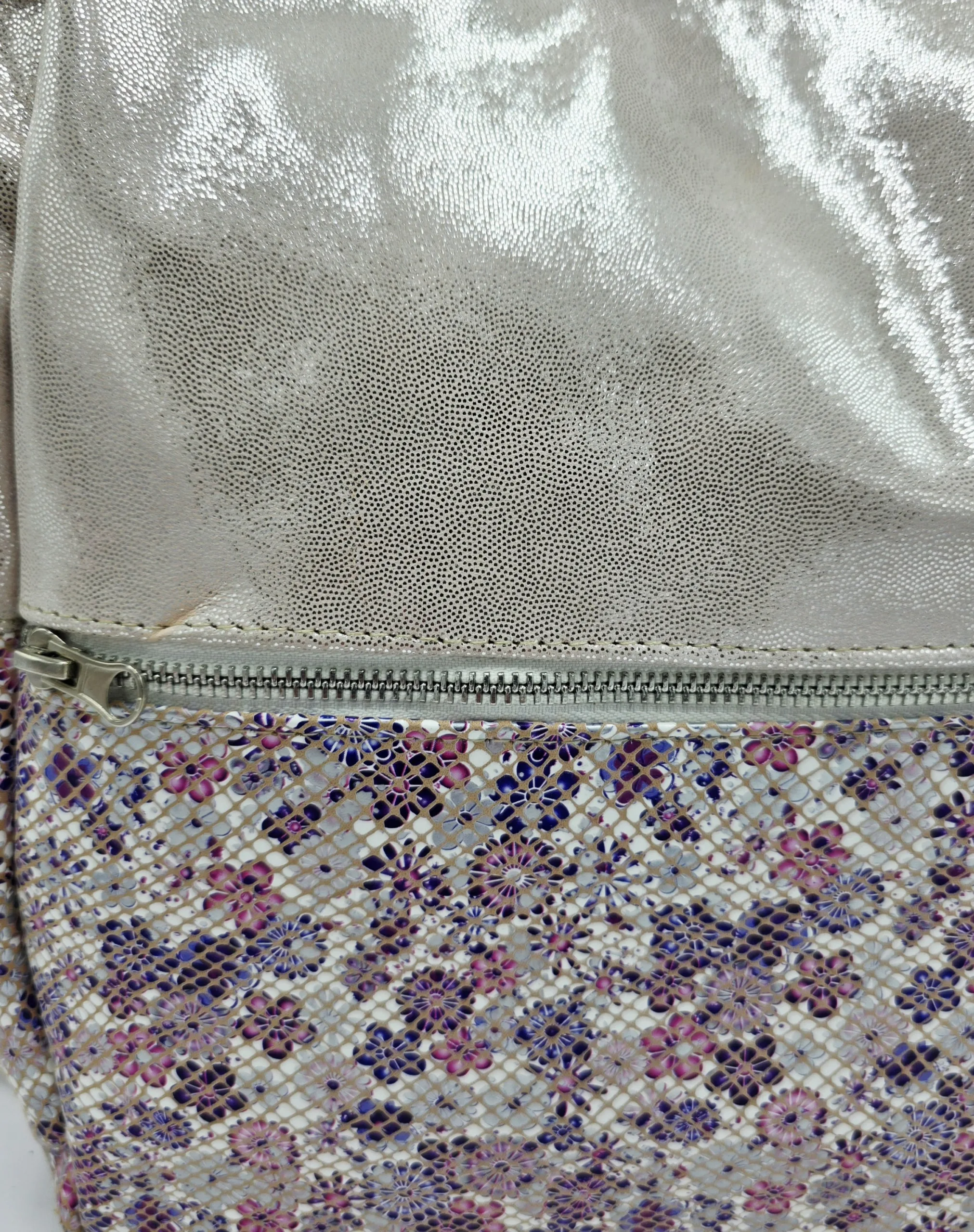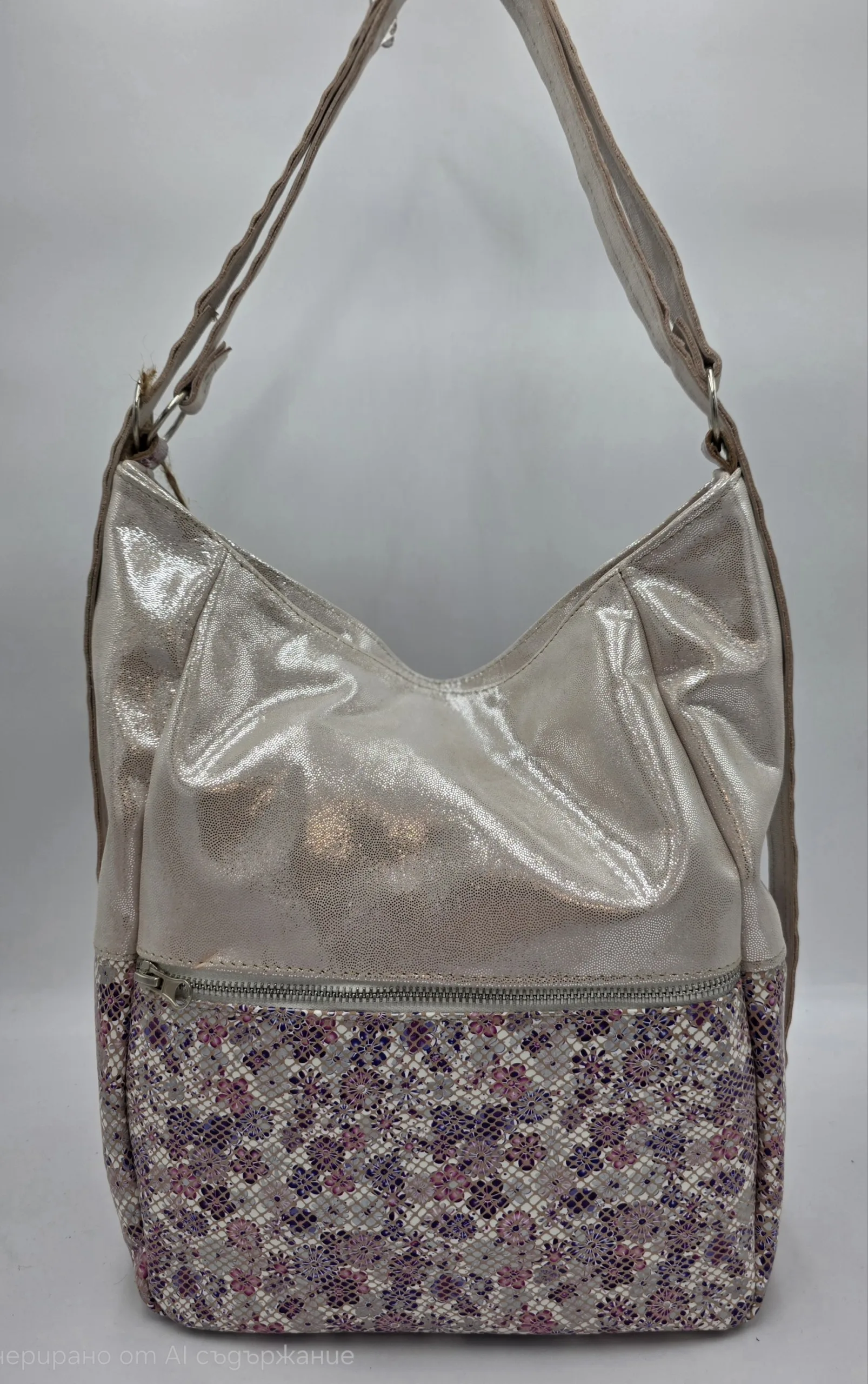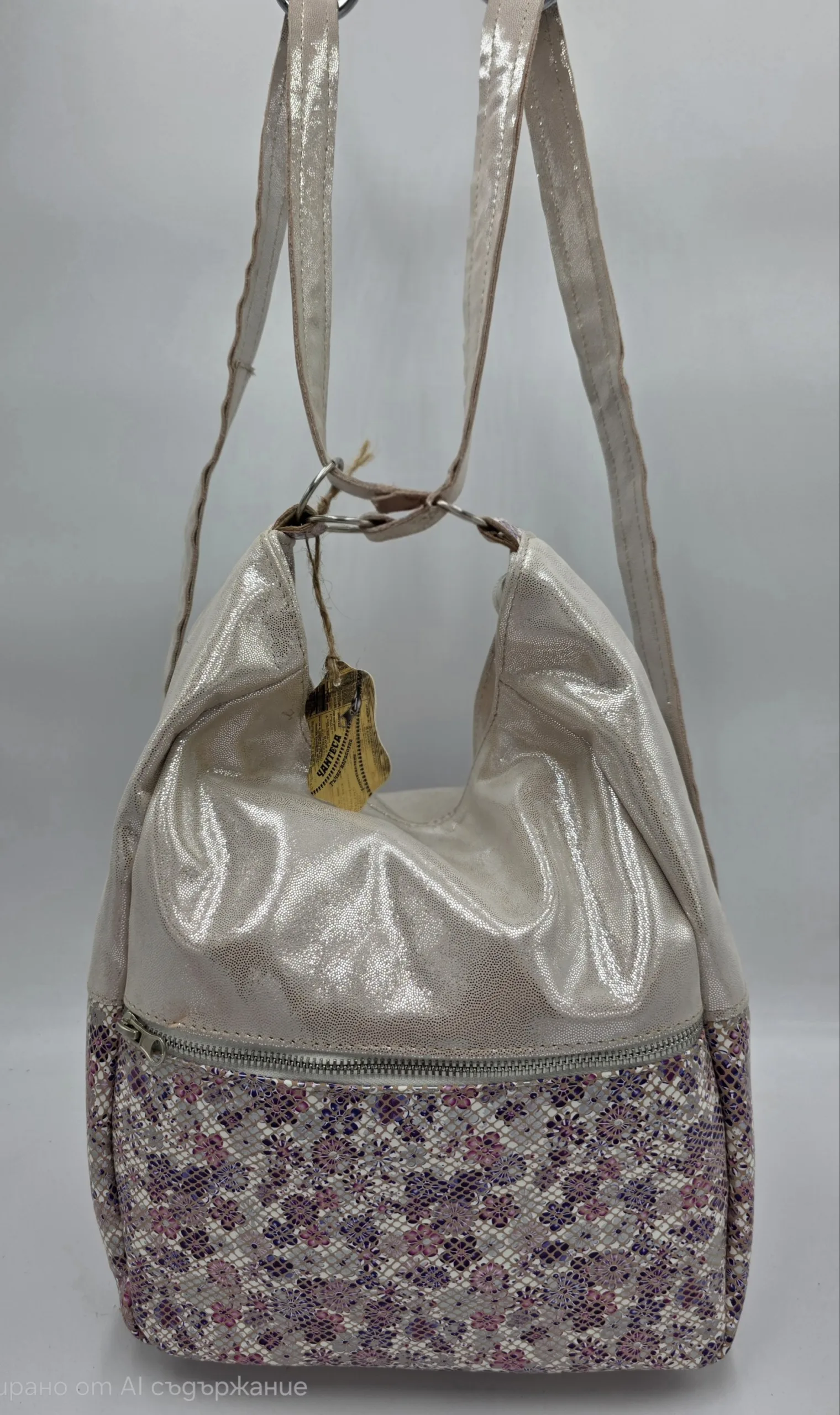 Чанта раница от естествена кожа сребро+розово 140.00лв. (71.58€)