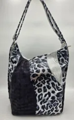 Чанта раница от естествена кожа в тъмно лилаво +леопардов принт