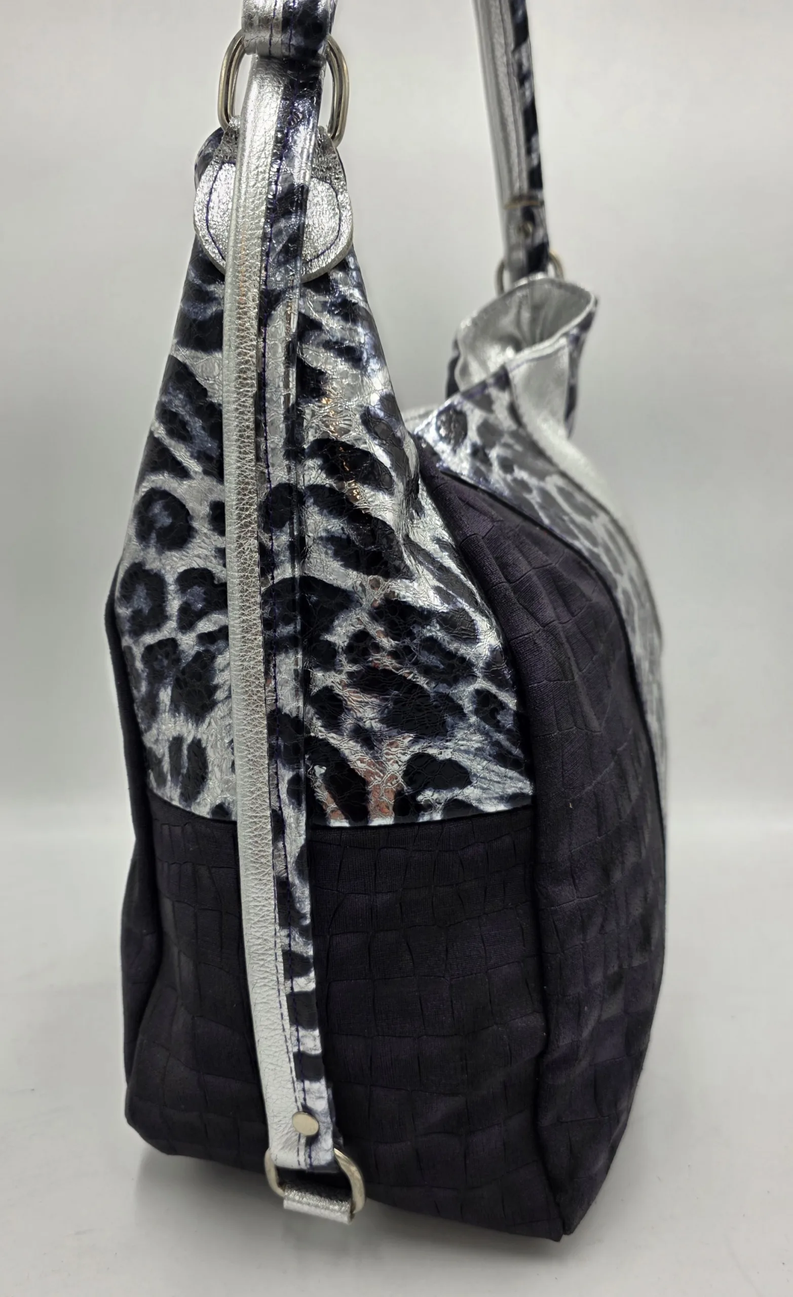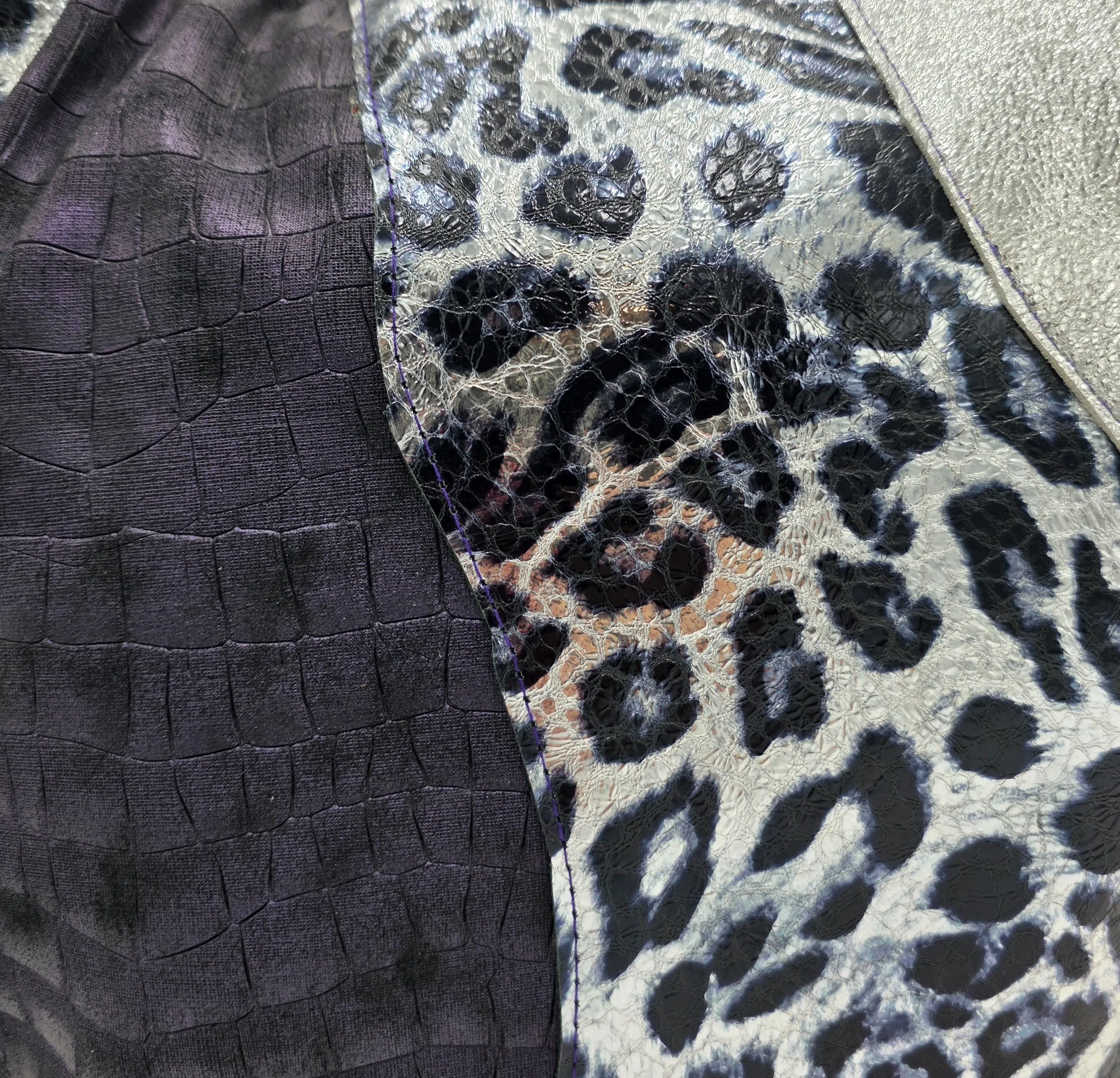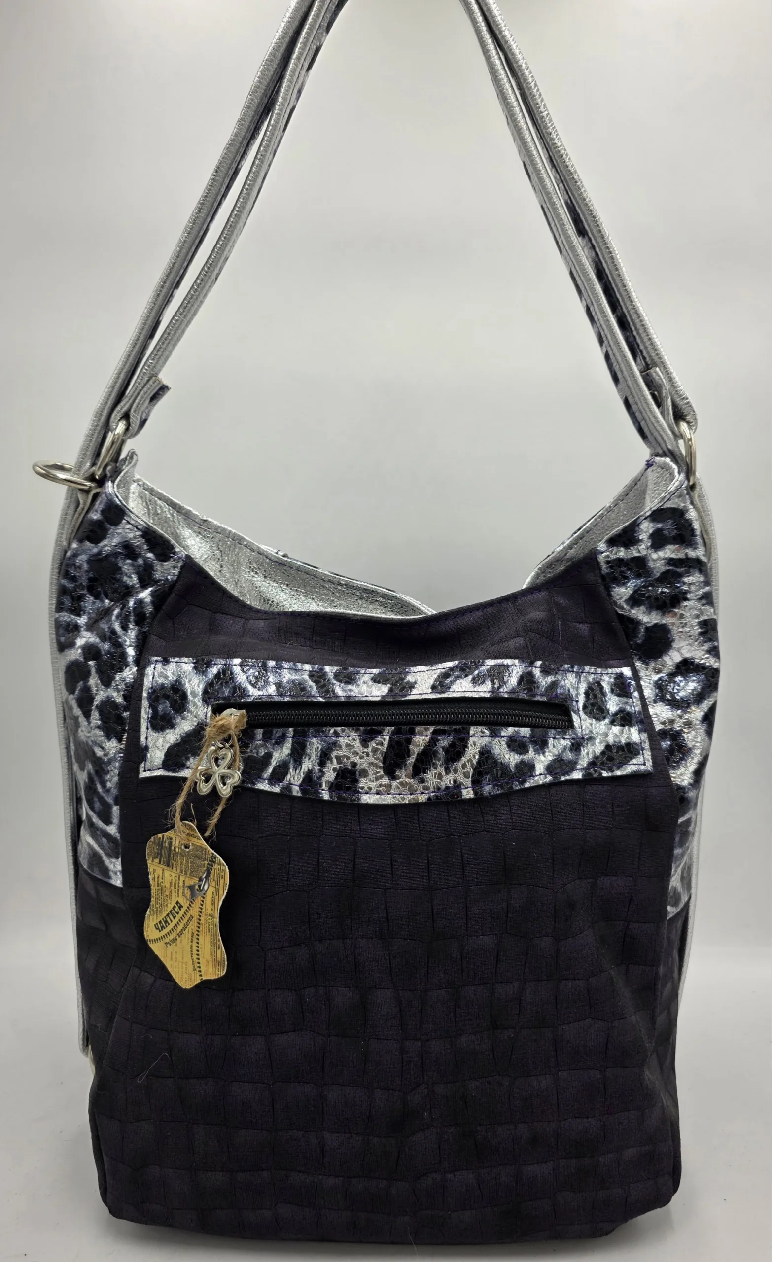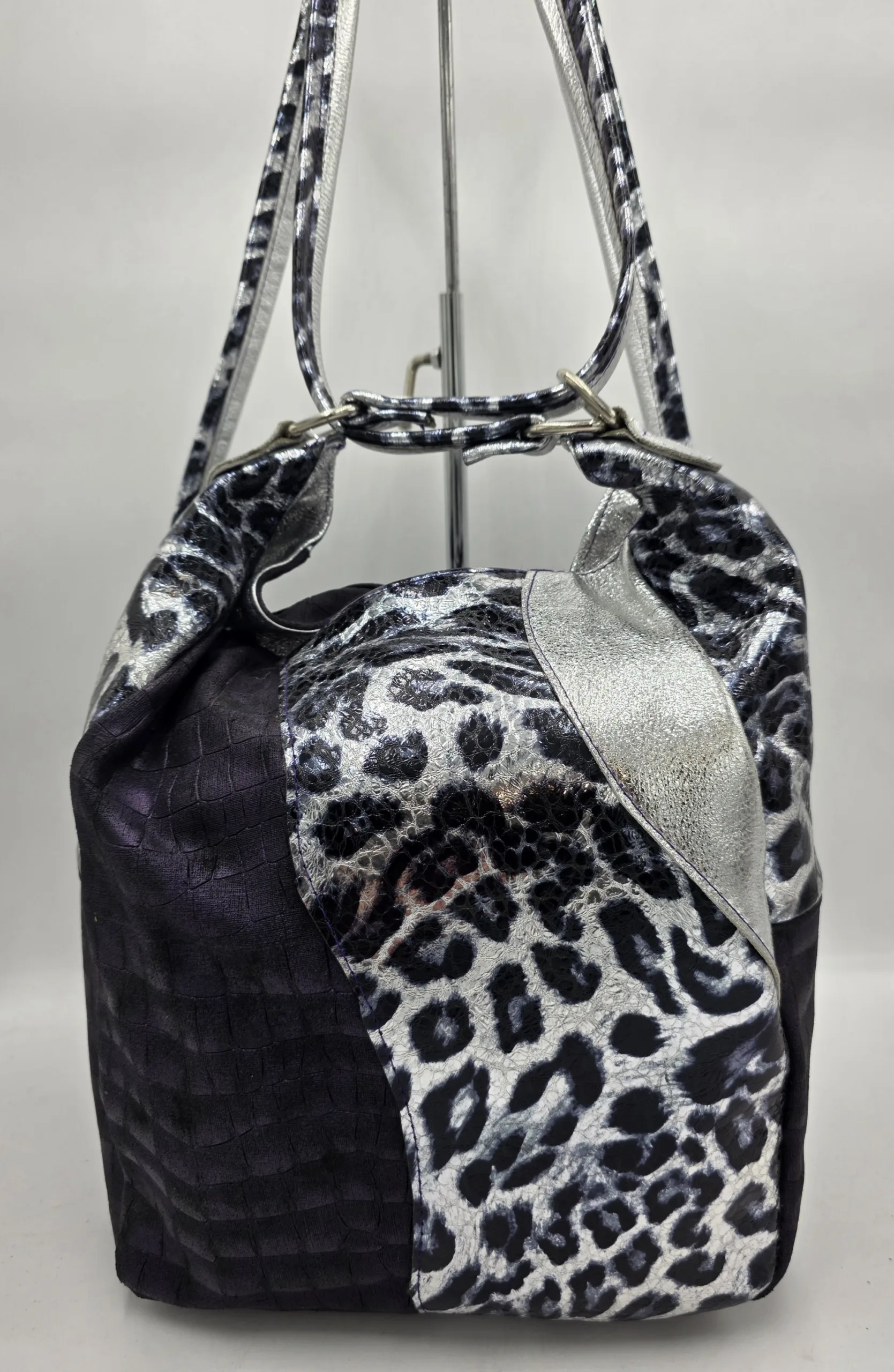 Чанта раница от естествена кожа в тъмно лилаво +леопардов принт