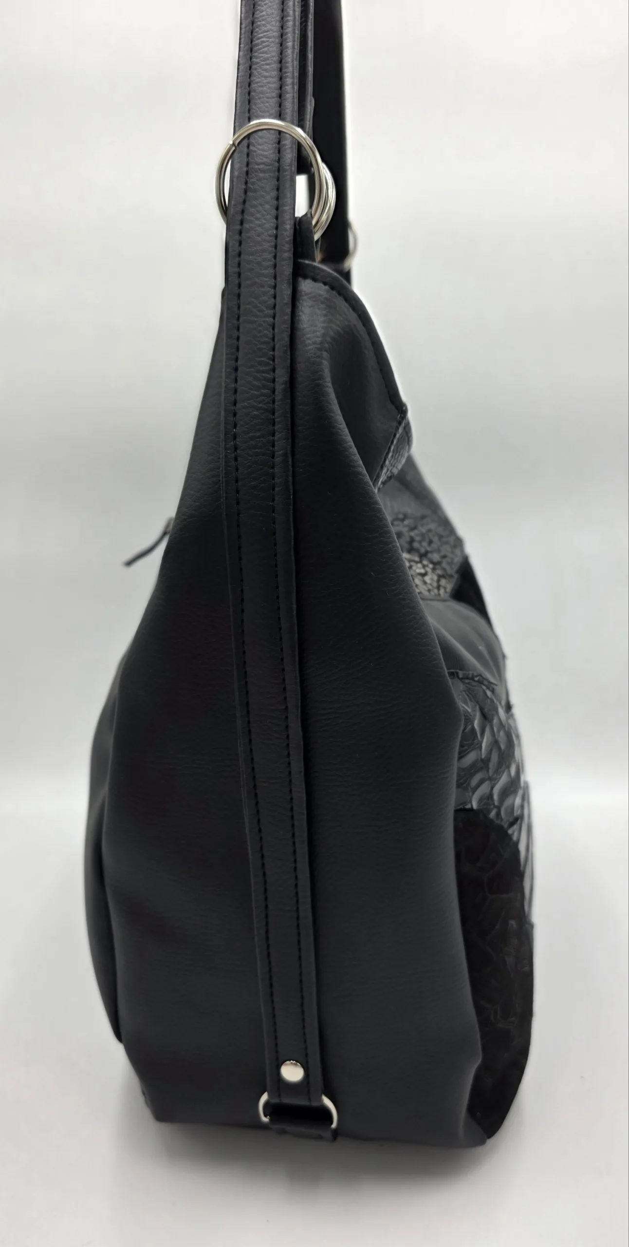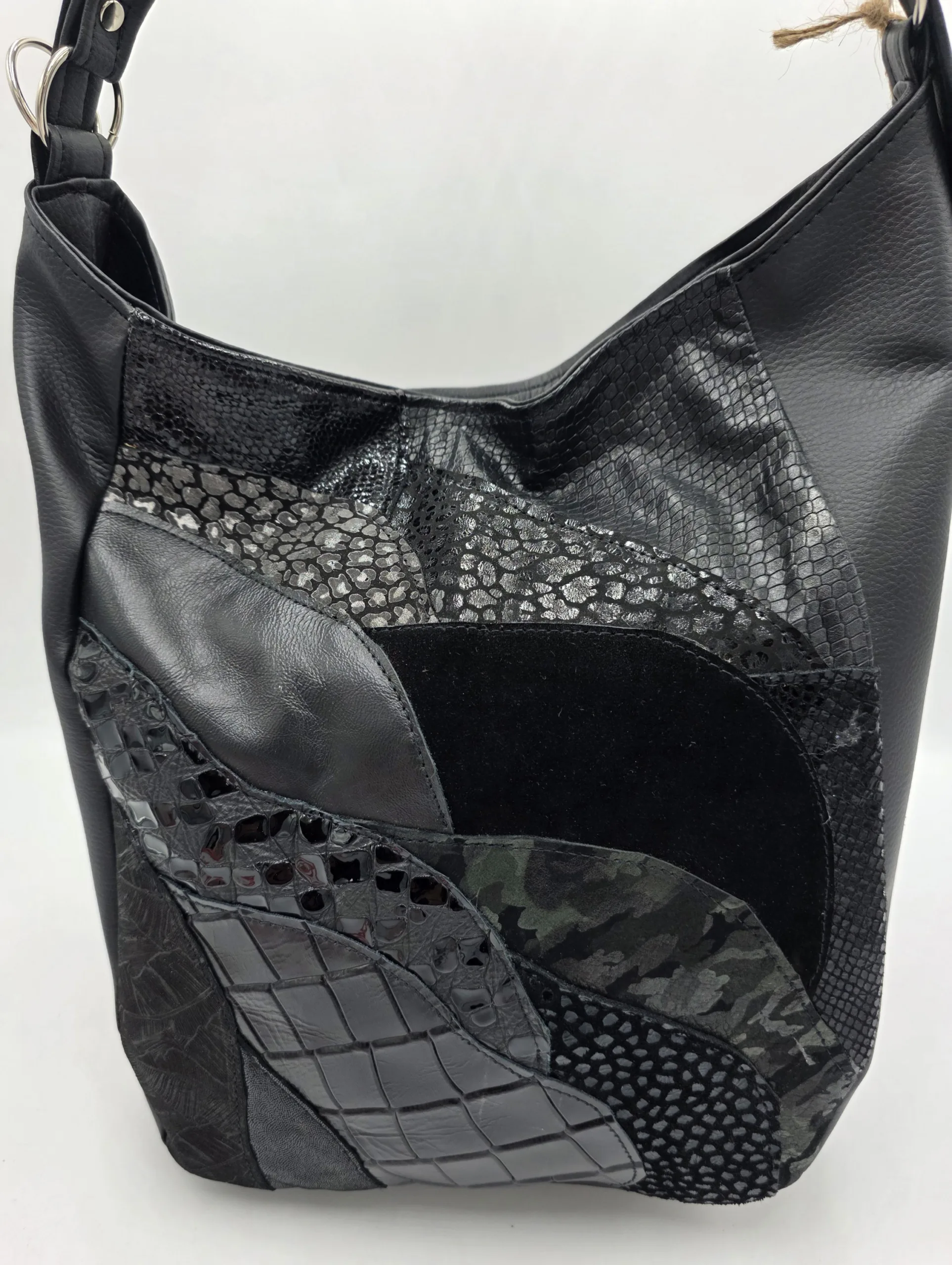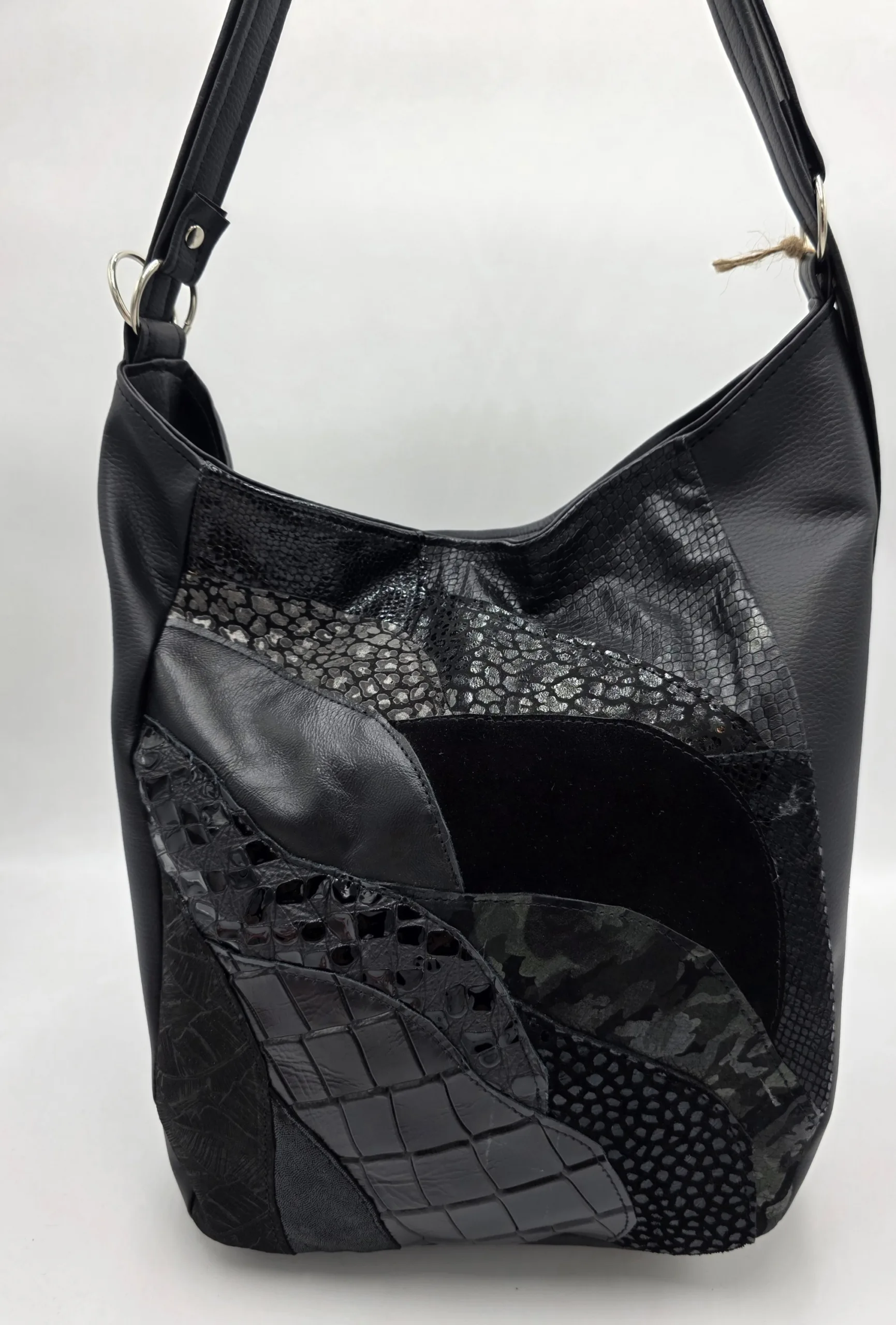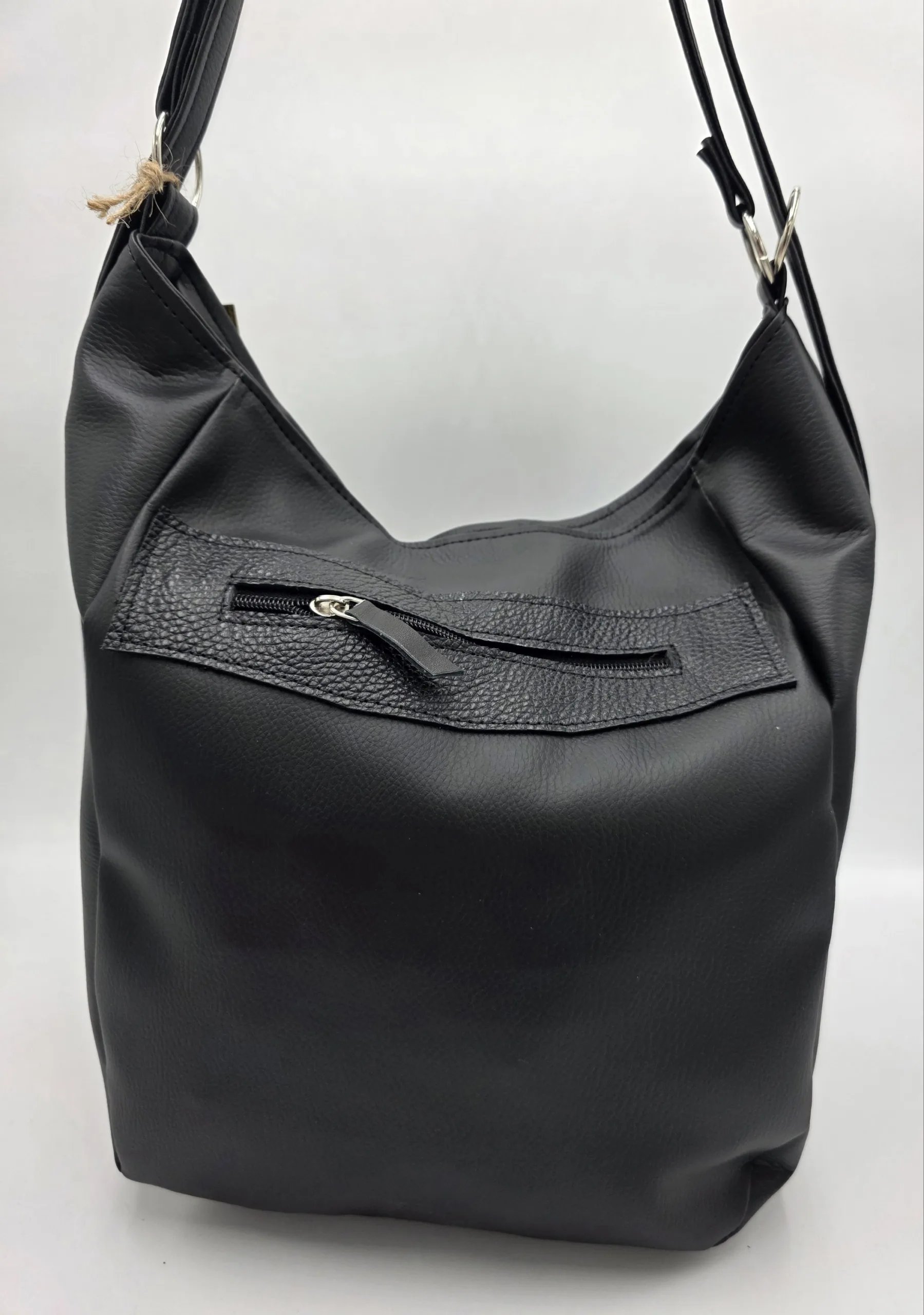 Чанта от еко кожа с нестандартна форма с две вързани регулиращи дръжки 120см максимална дължина, закопчава се с цип и