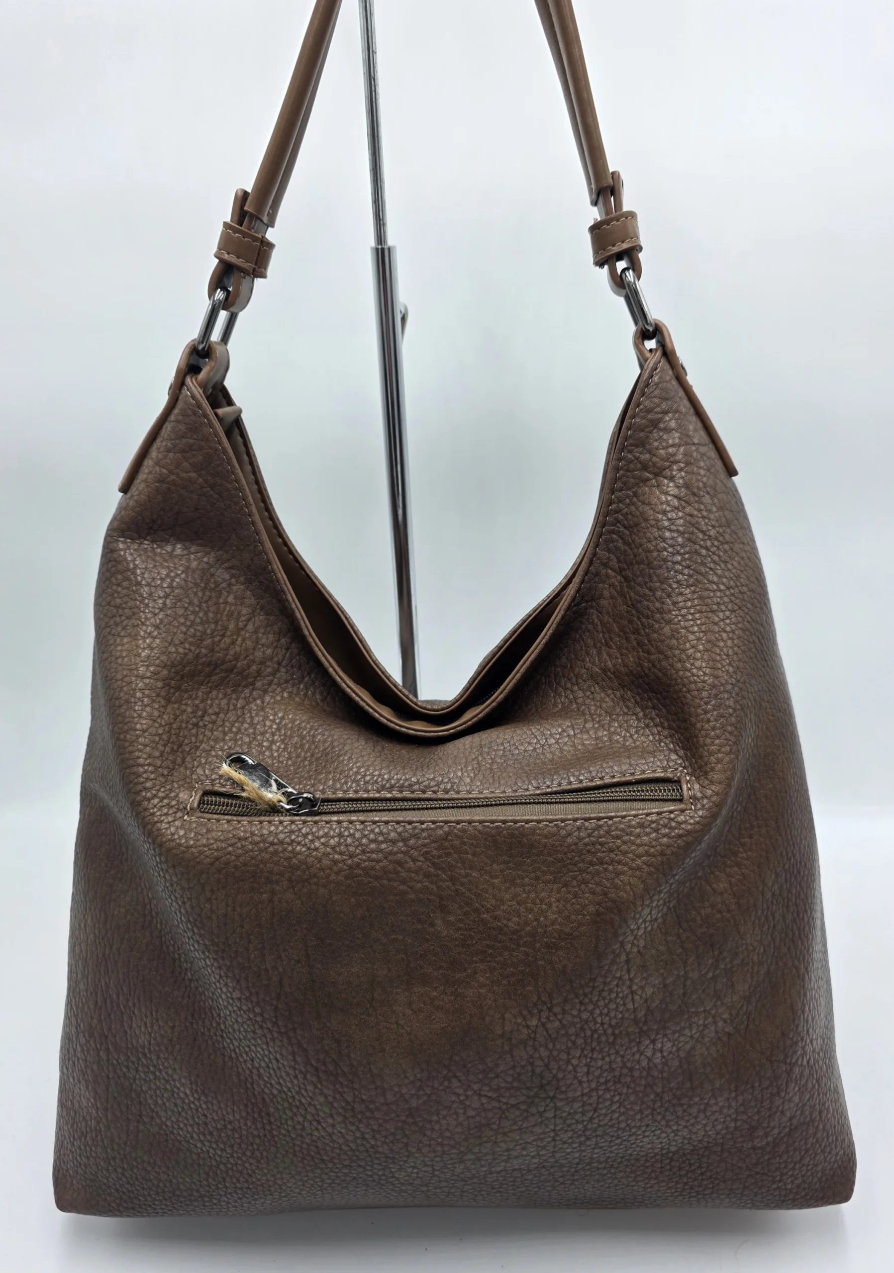 Уникална чанта от еко кожа тип торба с допълнително портмоне от естествена кожа,външен заден джоб с цип, супер удобни две