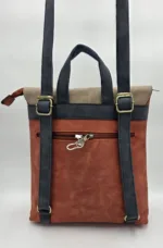 Раница от еко набук с капак,цип под капака ,външен заден джоб с цип,вътрешен джоб с цип и допълнителни джобове за