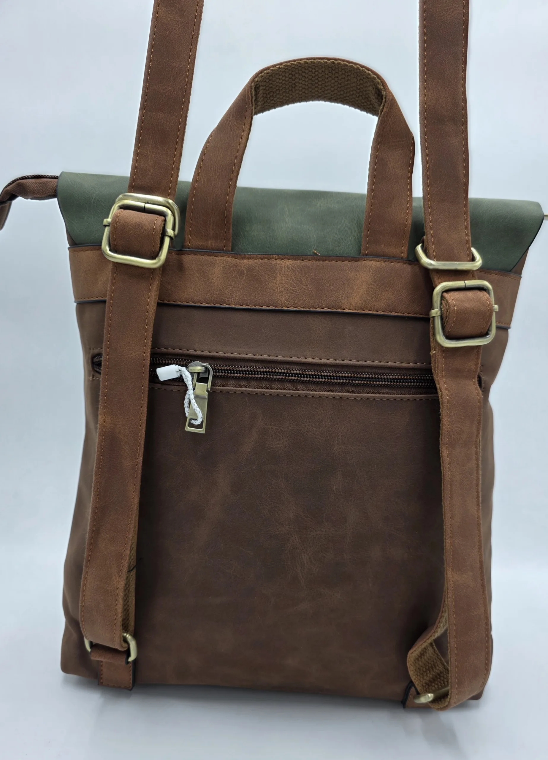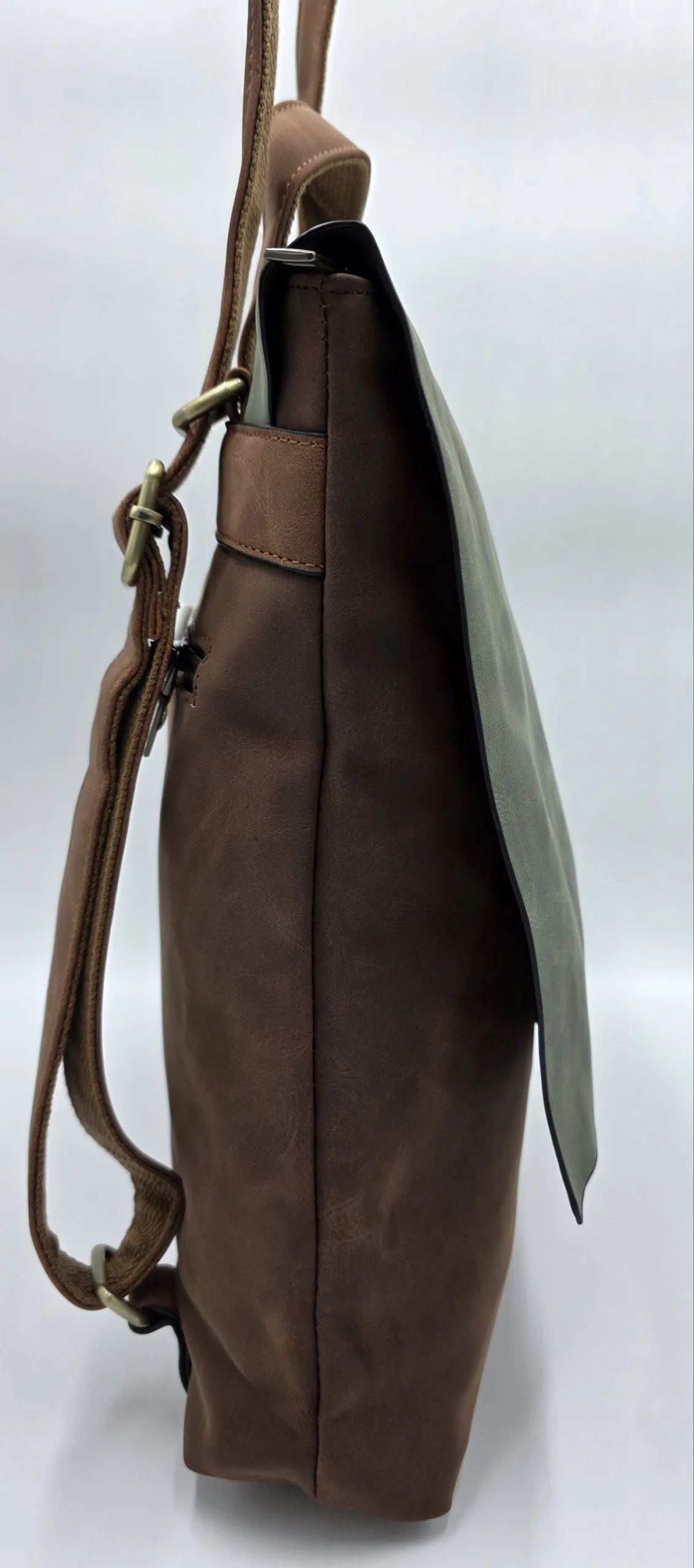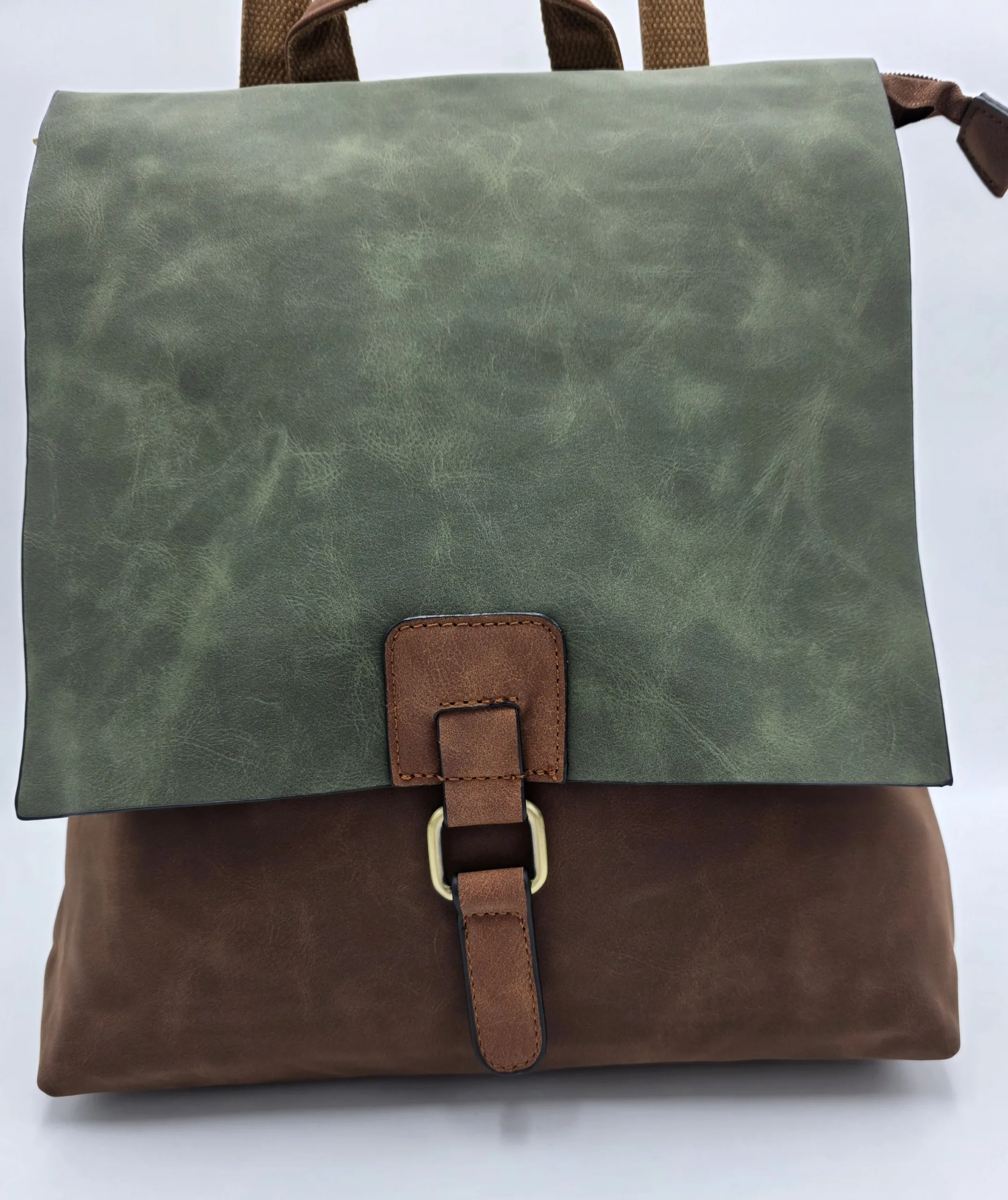 Начало Чанти от Еко Кожа Раница Раница от еко набук в кафяво и зелено