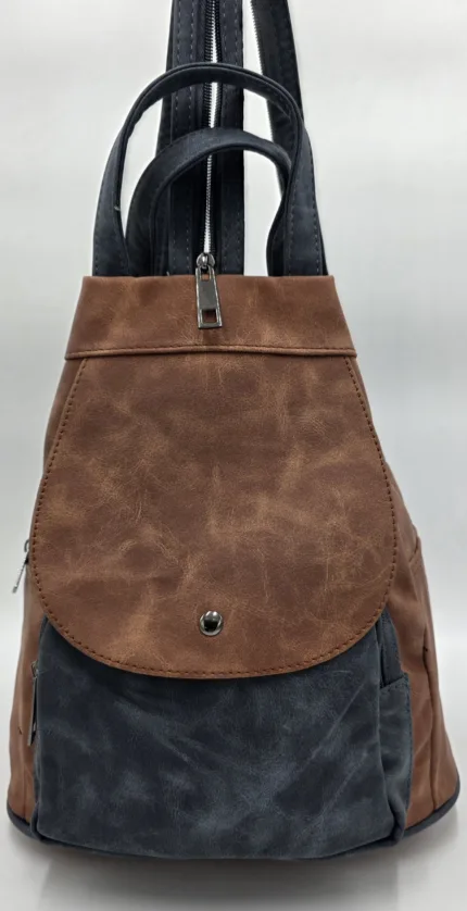 Раница от еко набук с капак,цип под капака ,външен заден джоб с цип,вътрешен джоб с цип и допълнителни джобове за