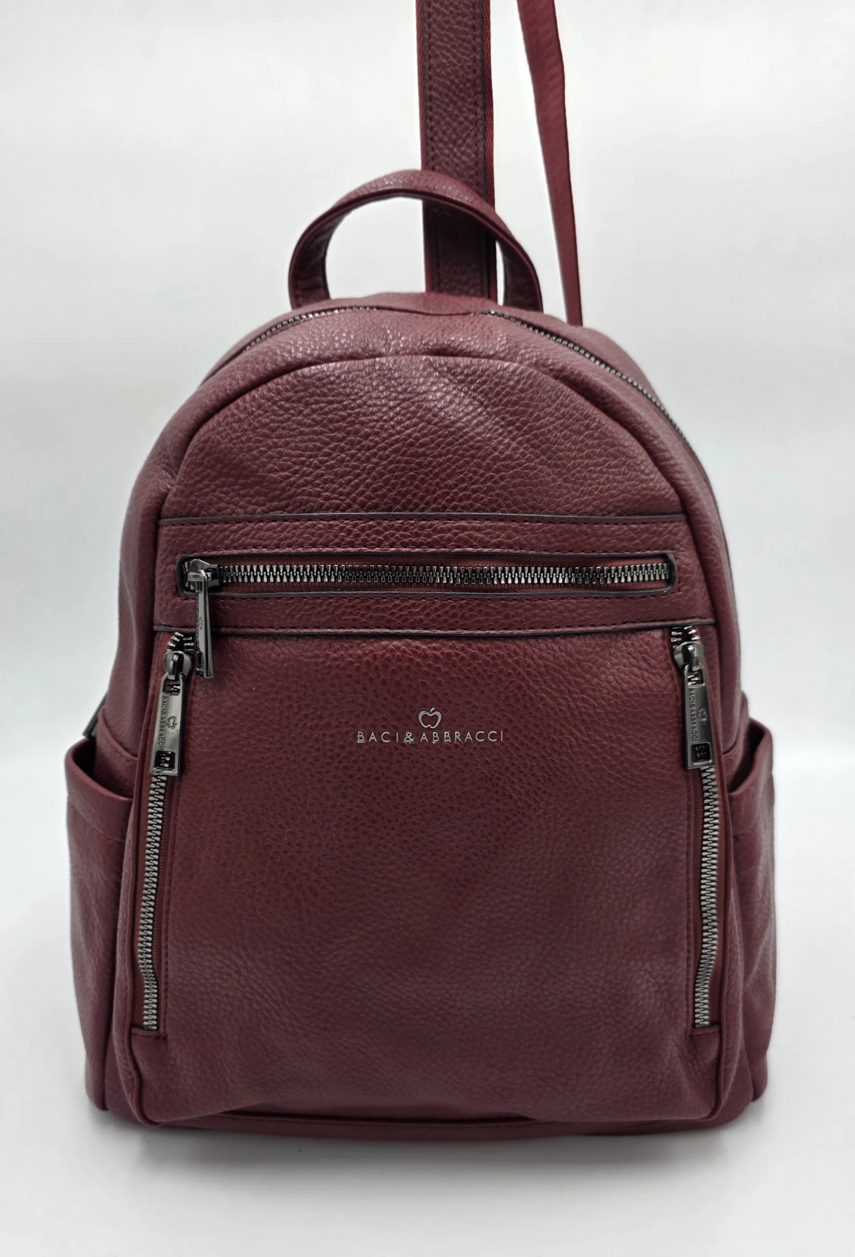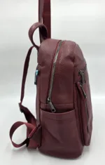 Раница от еко кожа с три предни джоба с цип, два странични, заден външен с цип, вътрешен джоб с цип и допълнителни джобове за телефон, удобни текстилни презрамки, височина 33см, ширина 29см,дъно 30см/13см