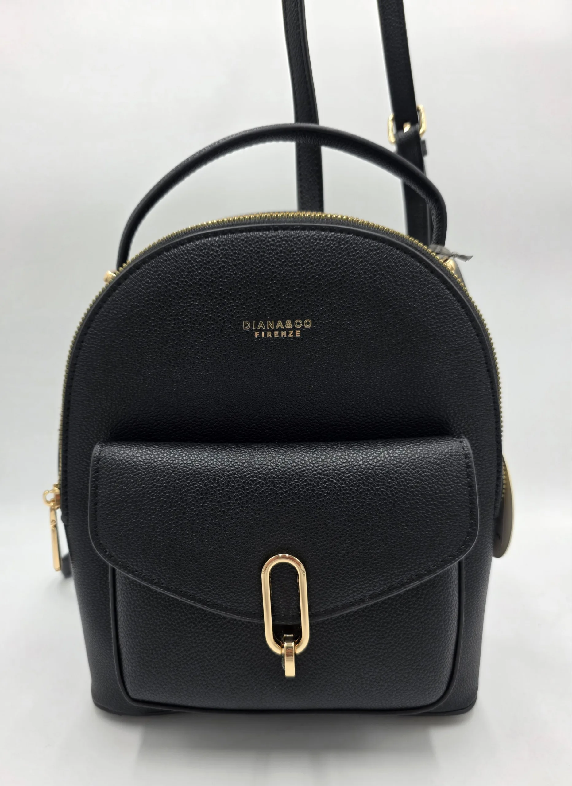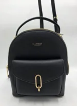 Раница от еко кожа, с преден джоб с метално закопчаване, къса дръжка 25см, ширина 24см, височина 26см, дъно 22см/10см