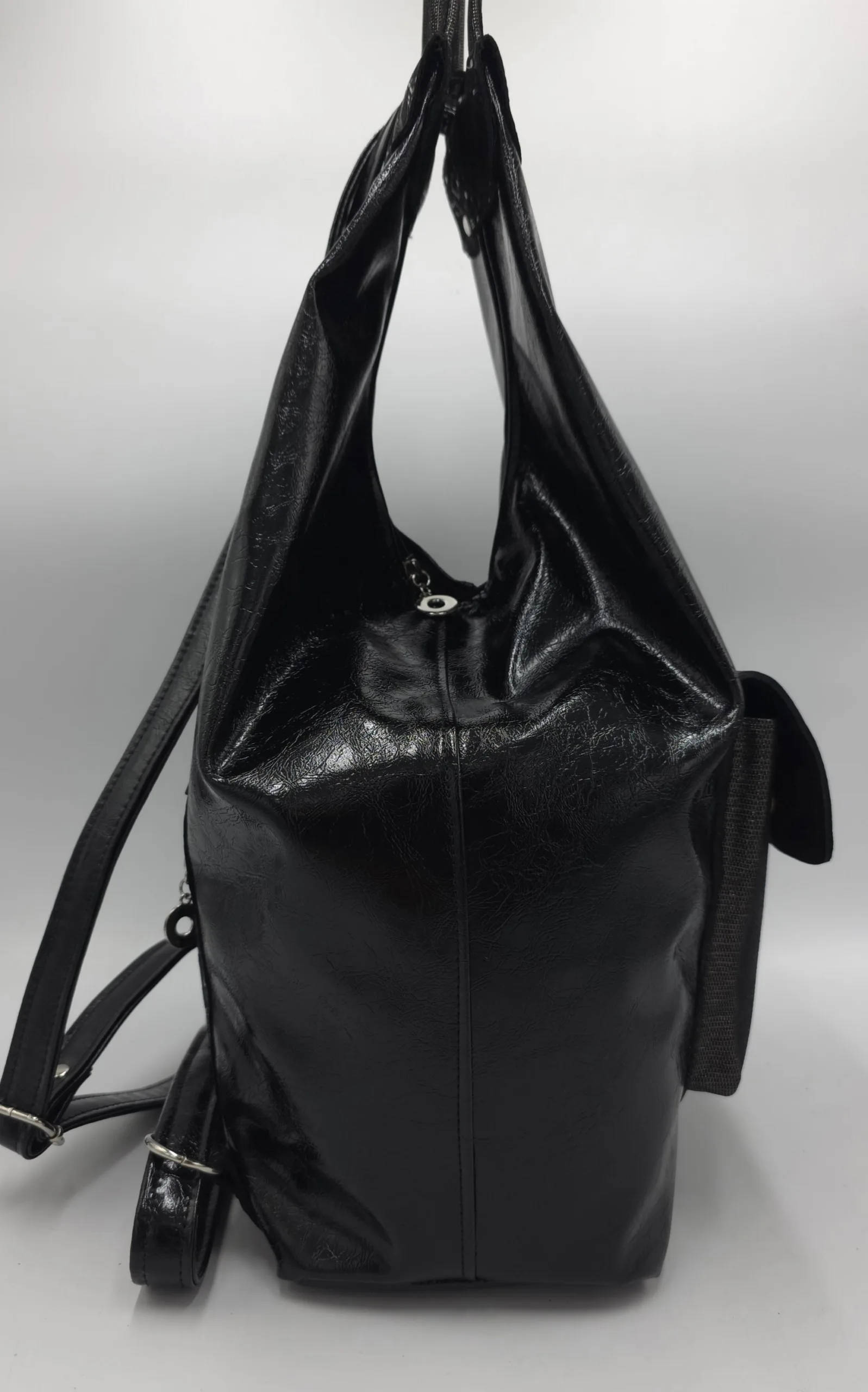 Ръчно изработена раница от еко кожа кожа с преден външен джоб с капак, заден външен джоб с цип, закопчаване с цип, вътрешен джоб с цип и допълнителен джоб за телефон, височина 50см,ширина 40см,дъно 27см/16см.