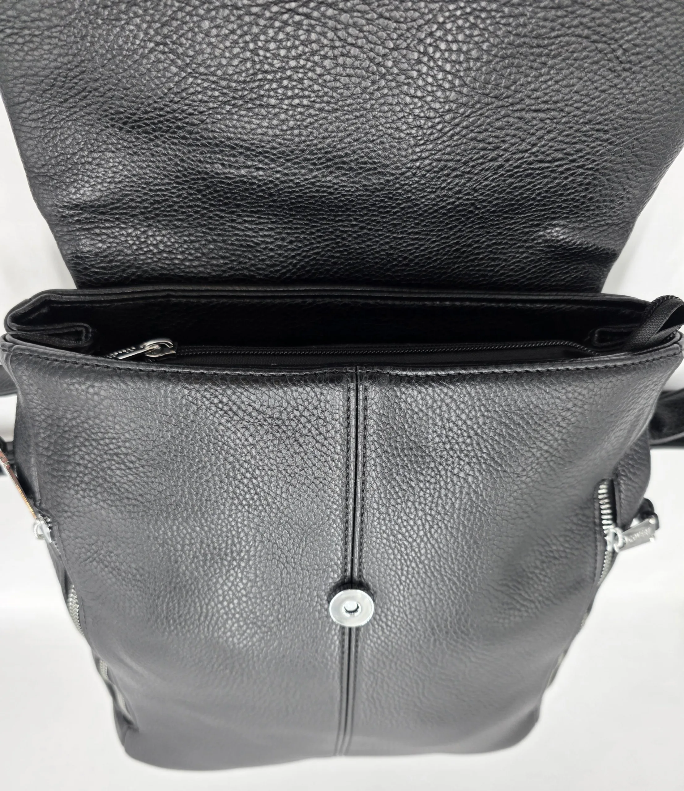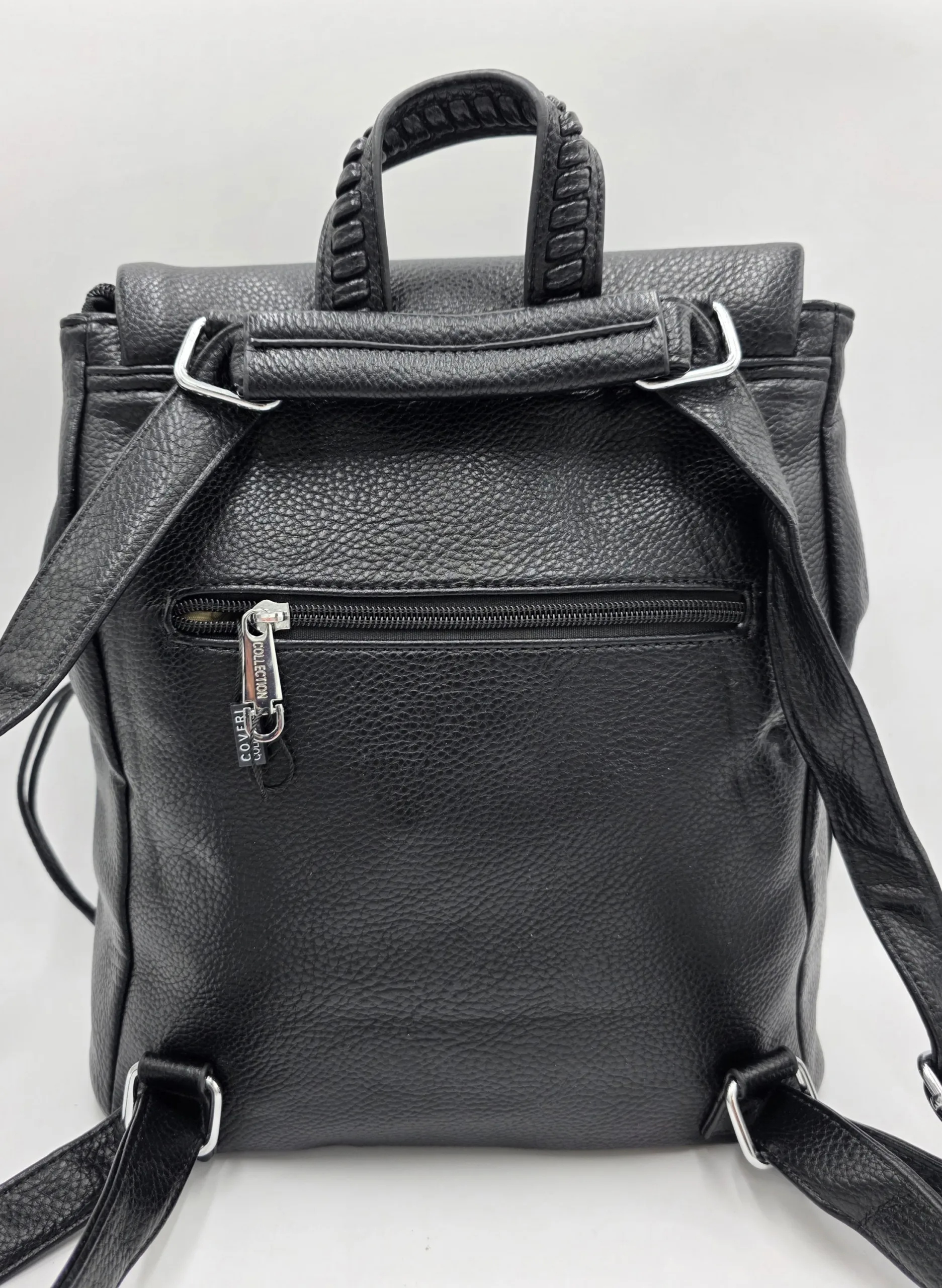 Чанта раница от еко кожа с елементи от естествена кожа в черно