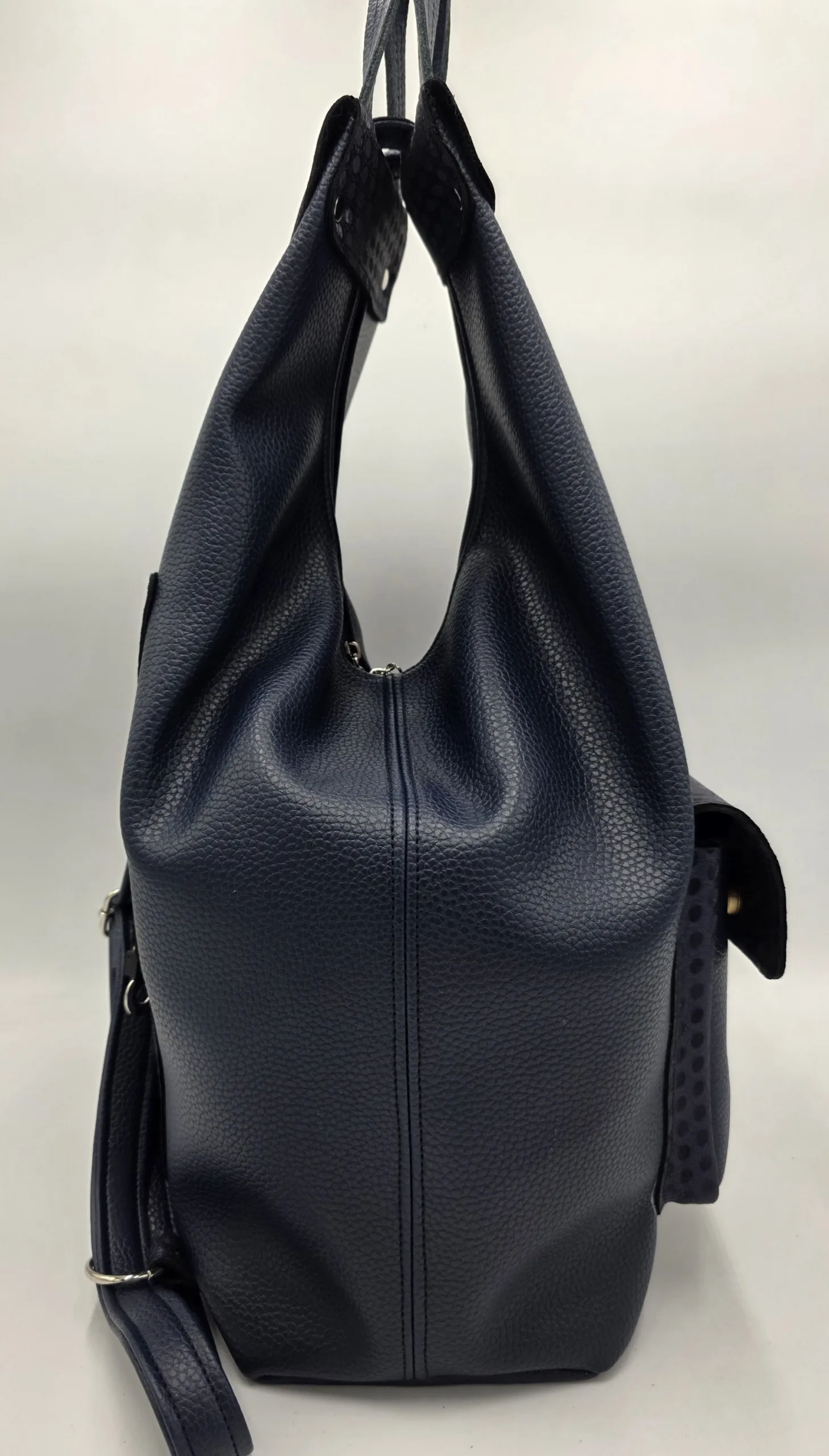 Чанта от еко кожа с нестандартна форма с две вързани регулиращи дръжки 120см максимална дължина, закопчава се с цип и