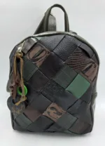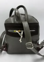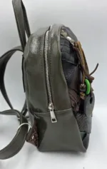 Дизайнерска раница от еко кожа, ръчно изработена, предница от естествена кожа, заден външен джоб, закопчаване с цип, вътрешен джоб с цип и допълнителен джоб за телефон ,височина 26см, ширина 25см, дъно 23см/11см.