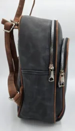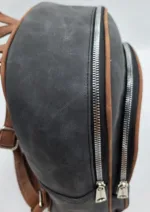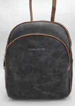 Раница от еко набук с две отделни прегради затварящи се с цип, заден външен джоб с цип, вътре със джоб с цип и допълнителни джобове за телефон. Ширина 28см, височина 31см, дъно 24см/11см.